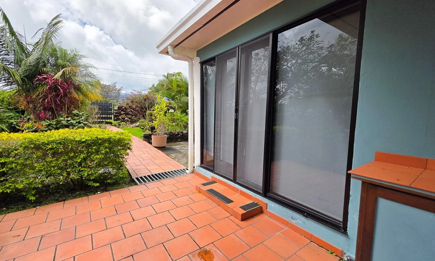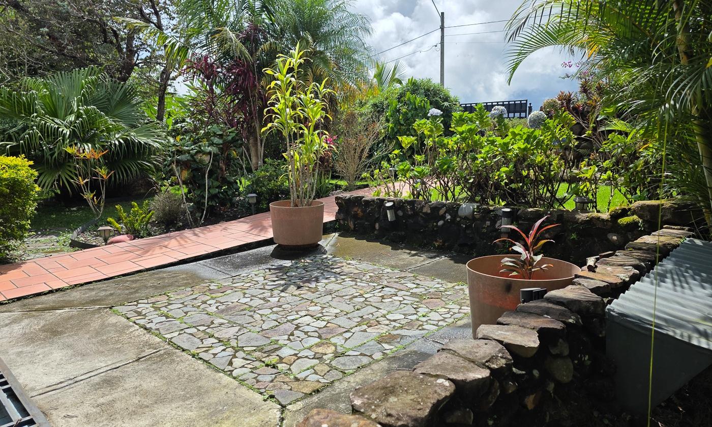 Al entrar desde un patio cubierto, se accede a la sala de estar, comedor y cocina, que se abren a un hermoso solárium. Una puerta que atraviesa la cocina invita a un hermoso solárium, que invita a relajarse un rato más con un café. La cocina fue cuidadosamente diseñada con un acceso al solárium y una barra frente a la sala de estar. Al final del pasillo encontrará un dormitorio y un baño, y luego el dormitorio principal con baño en suite. En el exterior, el jardín maduro es un cuento de hadas viviente: exuberante, colorido y rebosante de vida. Las mariposas bailan entre las flores, los colibríes tararean sus suaves canciones y los árboles frutales se extienden perezosamente hacia el cielo. Justo enfrente de un tranquilo parque, el cañón se despliega como un cuento de hadas a la puerta de su casa. Más allá del parque, el majestuoso Volcán Barú se alza a lo lejos, realzando la vista del jardín.