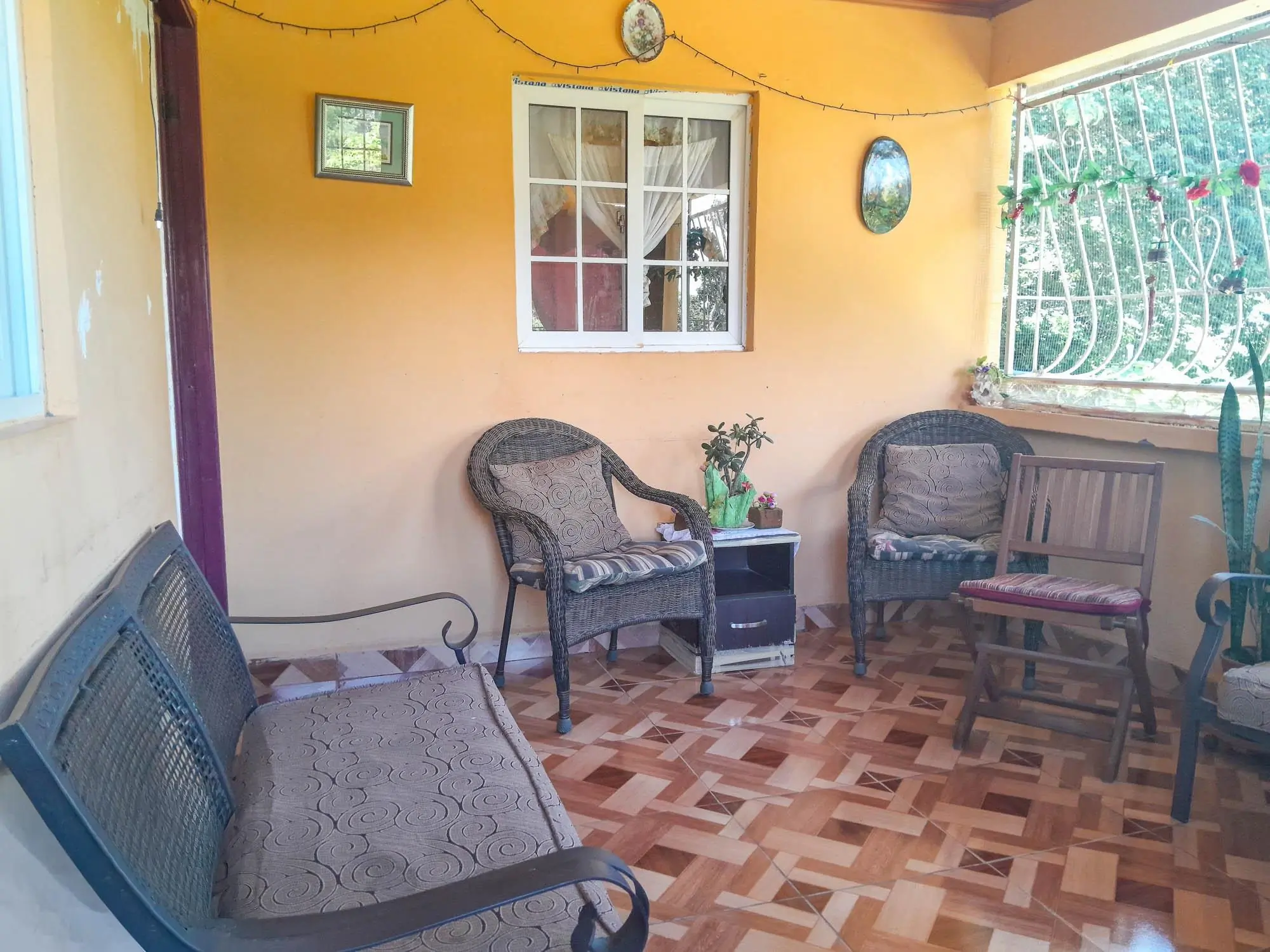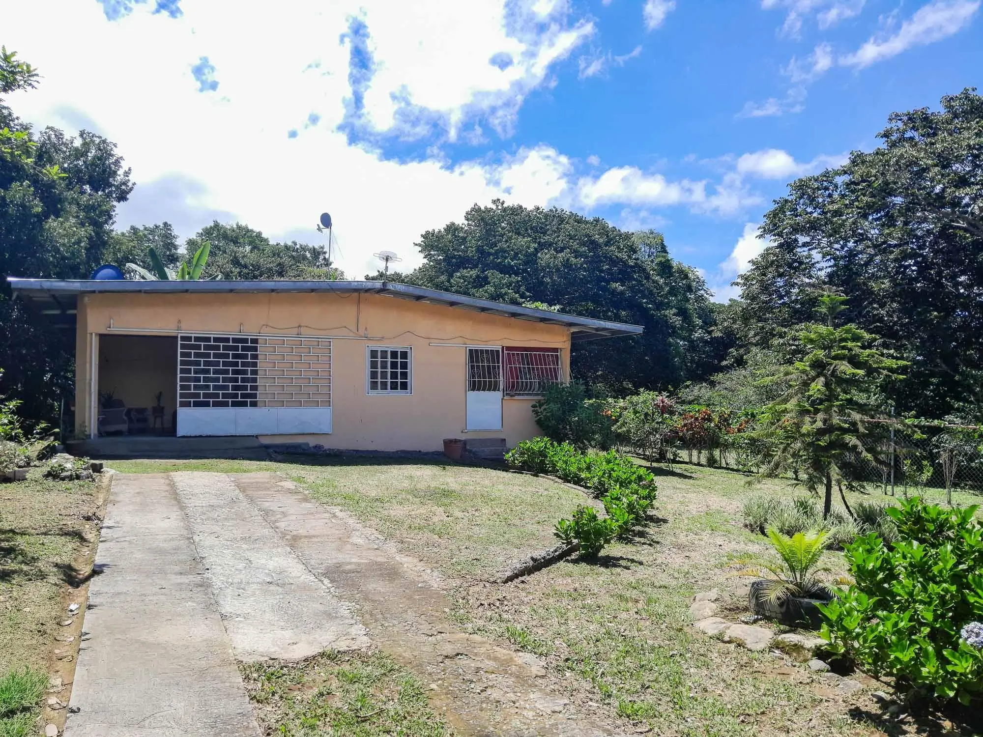 Ubicada en Palmira, Boquete, esta propiedad se encuentra a unos 23 minutos del centro y de la oficina de Casa Solution, ofreciendo un acceso conveniente a la vez que mantiene un entorno privado y natural. Situada en más de un acre de terreno escriturado, cuenta con una topografía aprovechable con un área plana alrededor de la casa que se inclina suavemente hacia la parte trasera, facilitando el uso diario y el drenaje natural. La elevación es similar a la del centro de Boquete, lo que proporciona temperaturas primaverales constantes durante todo el año, junto con vegetación y vistas a la montaña. Acerca de la casa La casa se encuentra cerca del centro del terreno, creando privacidad de la carretera a la vez que mantiene un fácil acceso. La entrada es a través de una puerta de alambre metálico, con un árbol de mango maduro en el frente. Un área techada puede funcionar como estacionamiento o porche. En el interior, la distribución incluye una sala de estar principal, un comedor independiente y una cocina conectada. La casa ofrece tres dormitorios y dos baños completos, ideal para vivir a tiempo completo, para uso ocasional o para alquilar. Una terraza trasera cerrada proporciona un espacio exterior protegido con vistas a la vegetación circundante. Espacio exterior y terreno El terreno incluye árboles establecidos y frutales, junto con plantas ornamentales. Con más de una hectárea, hay espacio para expandirse o cultivar. La combinación de terreno plano y pendiente suave es una ventaja clave en Boquete. Acerca de Palmira, Boquete: Palmira ofrece parcelas más grandes, vistas despejadas y un ambiente más tranquilo, sin alejarse demasiado del pueblo. Es conocida por fincas cafetaleras como Hacienda La Esmeralda, un clima constante y paisajes que en algunas zonas se extienden hasta el Pacífico.