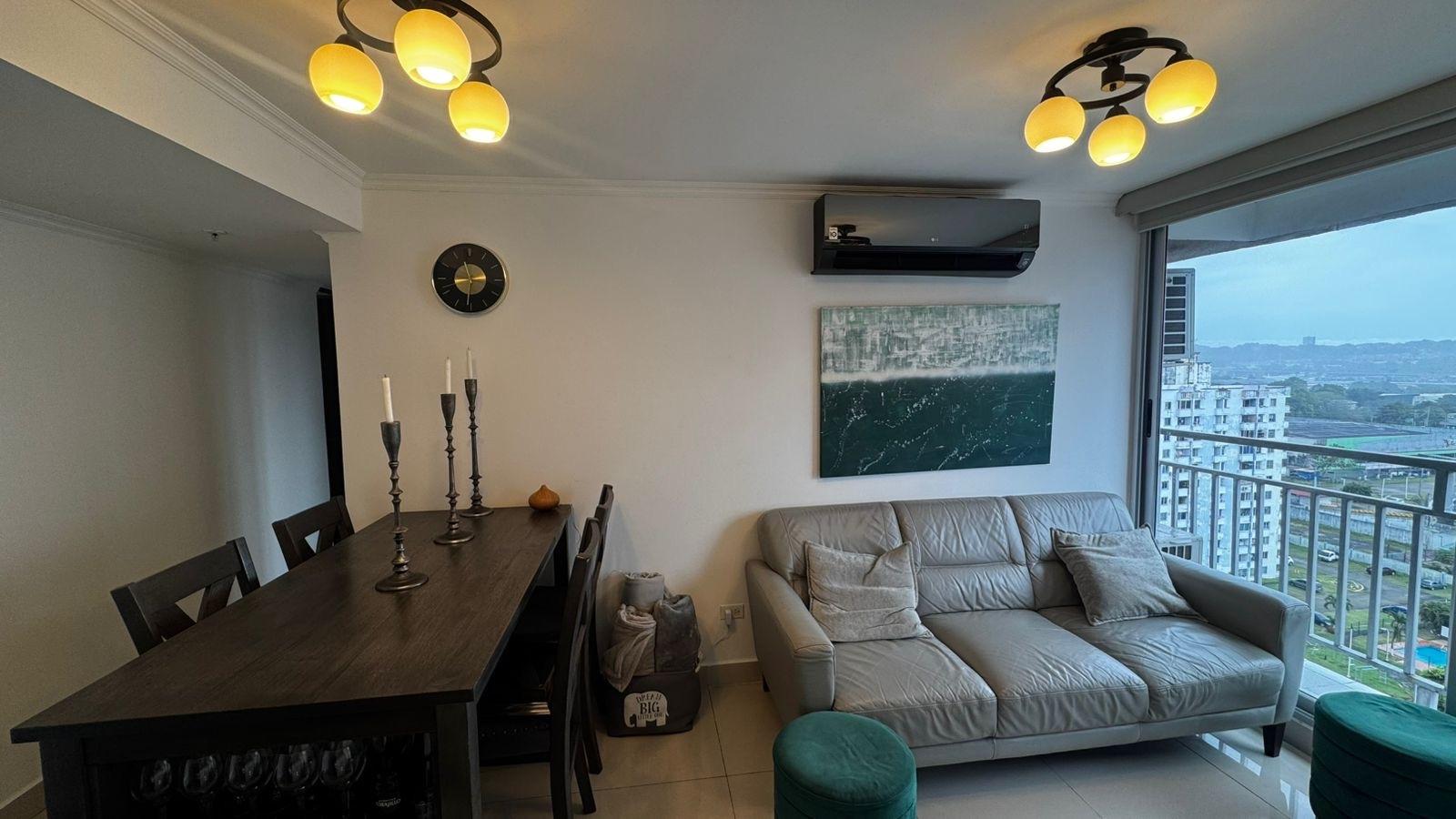 Vive con comodidad, estilo y excelente conexión en PH Los Pueblos Towers, un complejo residencial privado que destaca por su diseño moderno, ubicación privilegiada. Este apartamento se alquila totalmente amoblado por $850, ideal para quienes buscan mudarse sin complicaciones y disfrutar de un espacio listo para ocupar. Distribución del Apartamento 2 recámaras 2 baños completos Sala y comedor Cocina Área de lavandería independiente Balcón con vistas panorámicas a la ciudad Amenidades del PH Piscina y jacuzzi Gimnasio totalmente equipado Rooftop con vistas impresionantes Salón de eventos y áreas multiuso Espacio de coworking Área de BBQ Cancha deportiva multiusos Estacionamientos para bicicletas y motos Ubicación Estratégica A pocos pasos de la Línea 2 del Metro y del Metro Bus Acceso cercano a supermercados, farmacias, centros comerciales y más Zona tranquila, ideal para descansar sin alejarte de lo esencial
