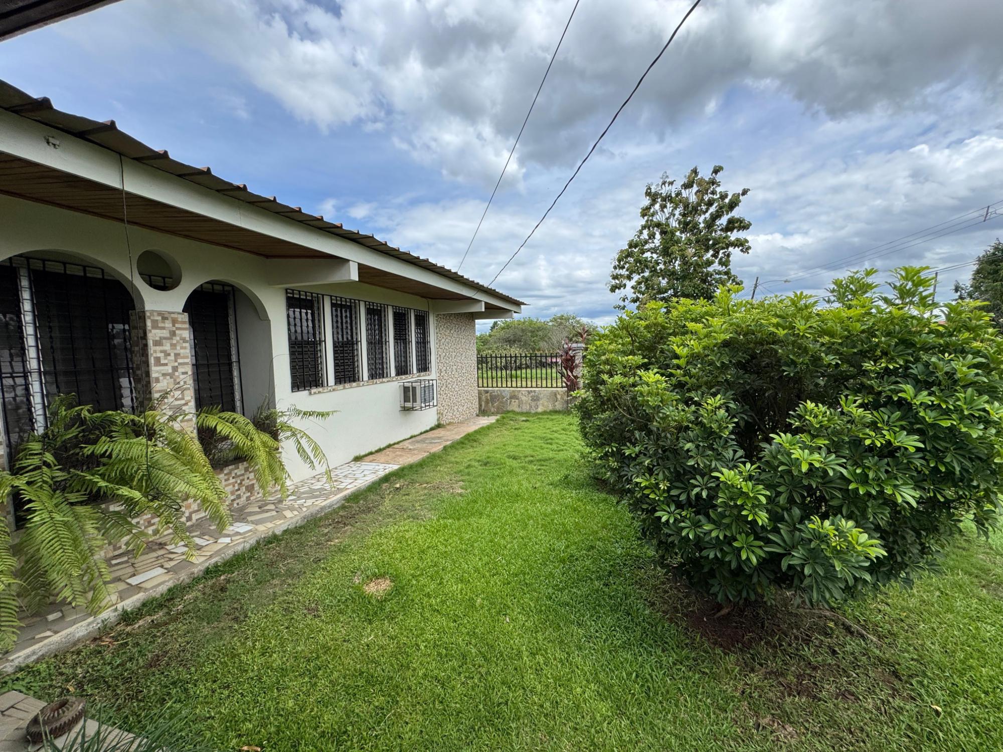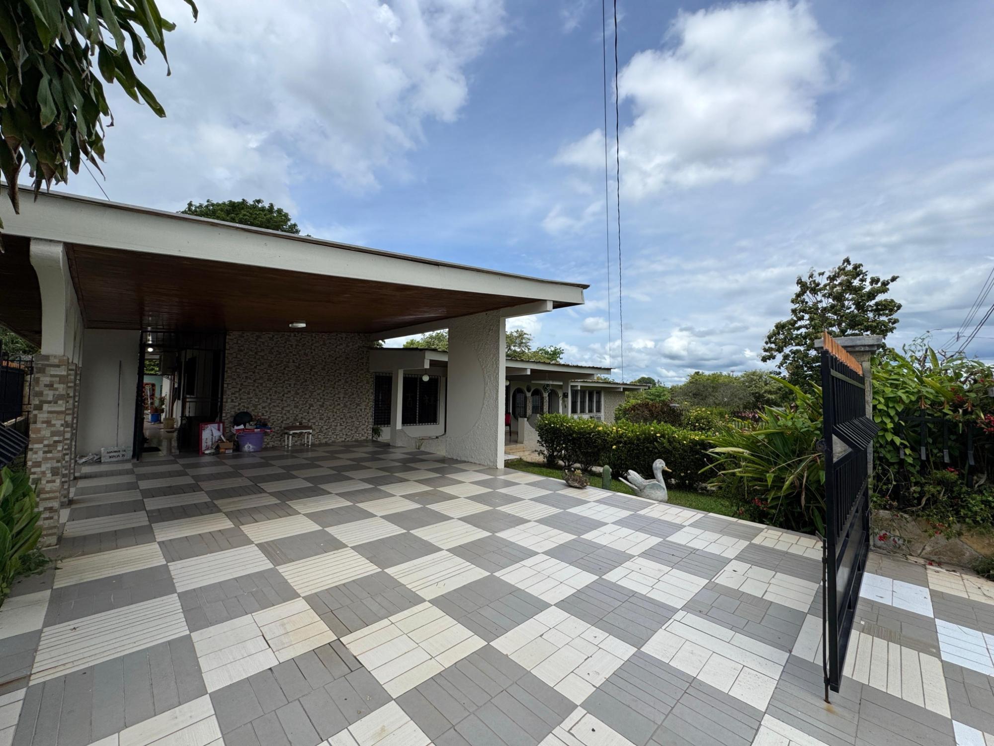 Esta propiedad se ubica en una calle residencial de Santiago de Veraguas, sobre un terreno plano de 1050 m² con amplios espacios al aire libre. La casa tiene una superficie construida de 212,40 m², con 93,78 m² de espacios semiabiertos y 107,09 m² de superficie pavimentada. Características de la propiedad: Dormitorios y baños: La casa ofrece 4 dormitorios y 4 baños. El dormitorio principal incluye un armario de teca a medida (instalado en 2023) y baño en suite. Sala de estar y comedor: La espaciosa sala de estar y comedor de planta abierta da directamente a una terraza cubierta, ideal tanto para el día a día como para el entretenimiento. Cuarto de servicio: La propiedad incluye un cuarto de servicio independiente con baño propio, lo que ofrece flexibilidad para acomodar más espacio o almacenar cosas. Cocina: La cocina fue remodelada en 2020, con electrodomésticos modernos y una distribución funcional. Estacionamiento y espacio exterior: Un portal cubierto ofrece espacio para estacionar dos vehículos. La propiedad también incluye árboles frutales y forestales, ofreciendo un espacio verde privado.