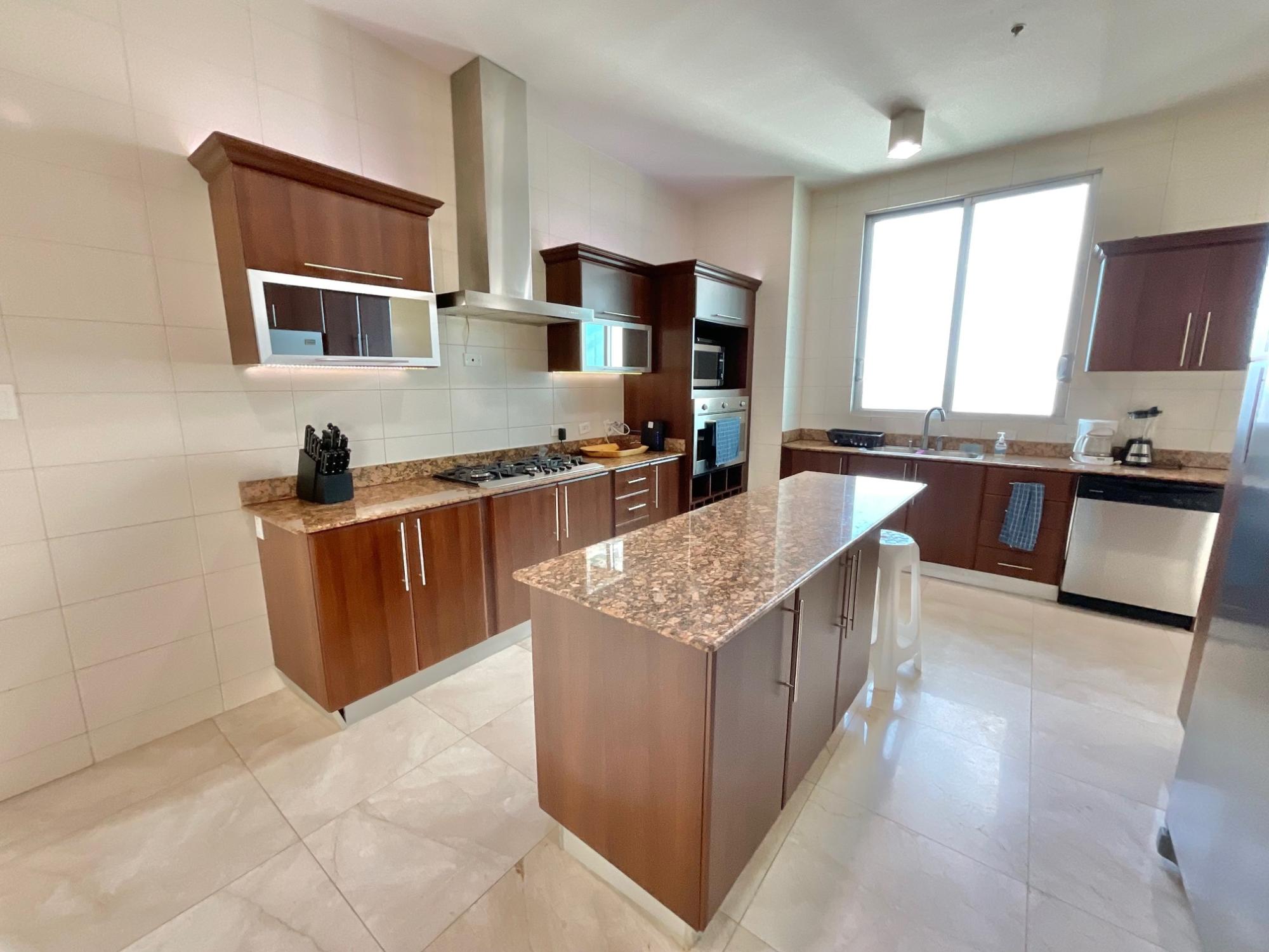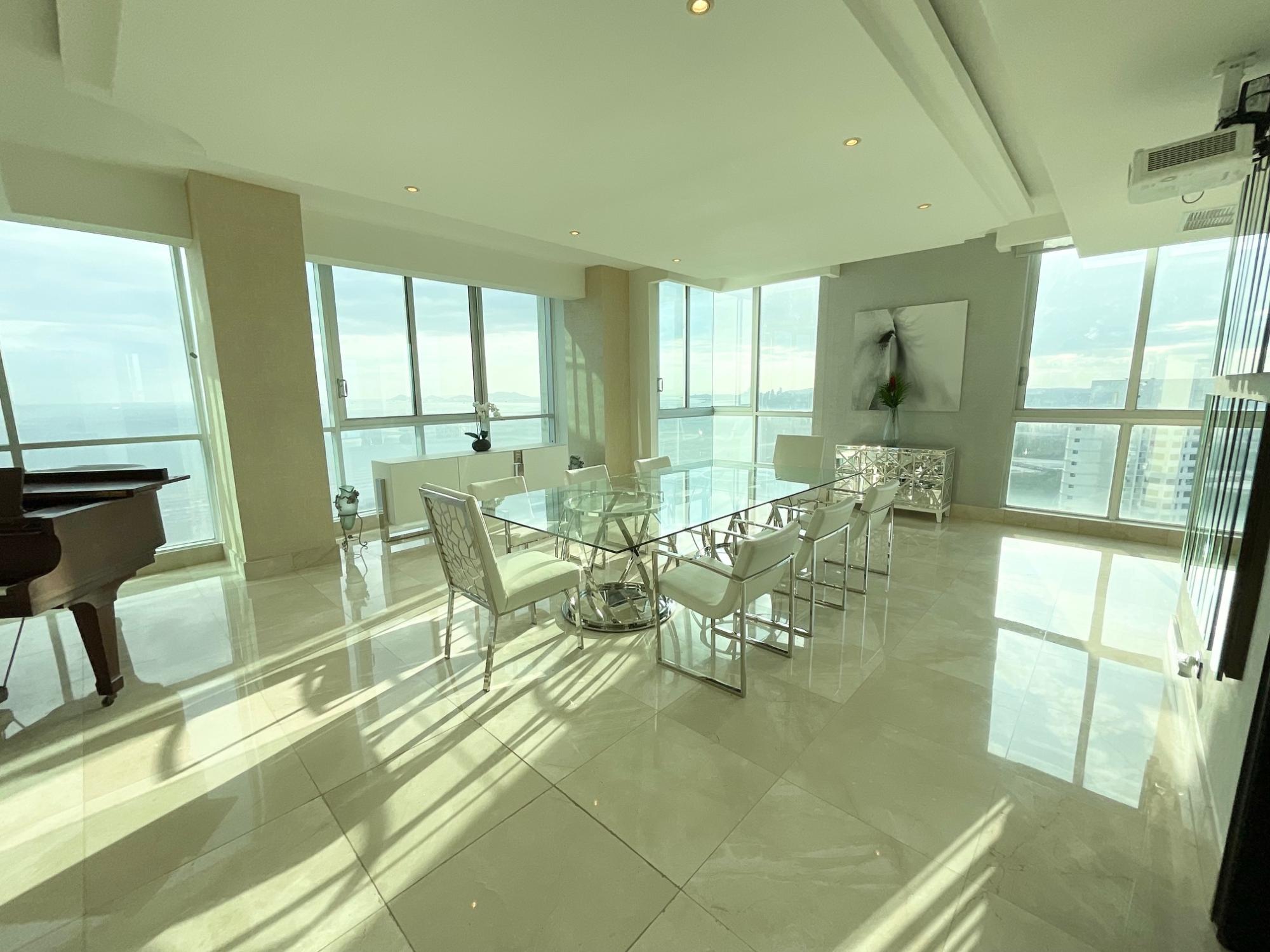 En alquiler espectacular apartamento full amoblado en el exclusivo P.H. Ocean Two, Costa del Este, con 410 m² distribuidos en 4 recámaras, 4.5 baños, amplia sala y comedor, den, desayunador, cocina equipada, lavandería, C/B/S y 3 estacionamientos. Ofrece aire central en las áreas sociales y la recámara principal, además de aires inverter en las secundarias. Este icónico edificio brinda amenidades de primer nivel como piscina, jacuzzi, sauna, gimnasio, cine, canchas deportivas, área de BBQ, salón de fiestas y mucho más, ideales para un estilo de vida de lujo y confort en una ubicación privilegiada de la ciudad.
