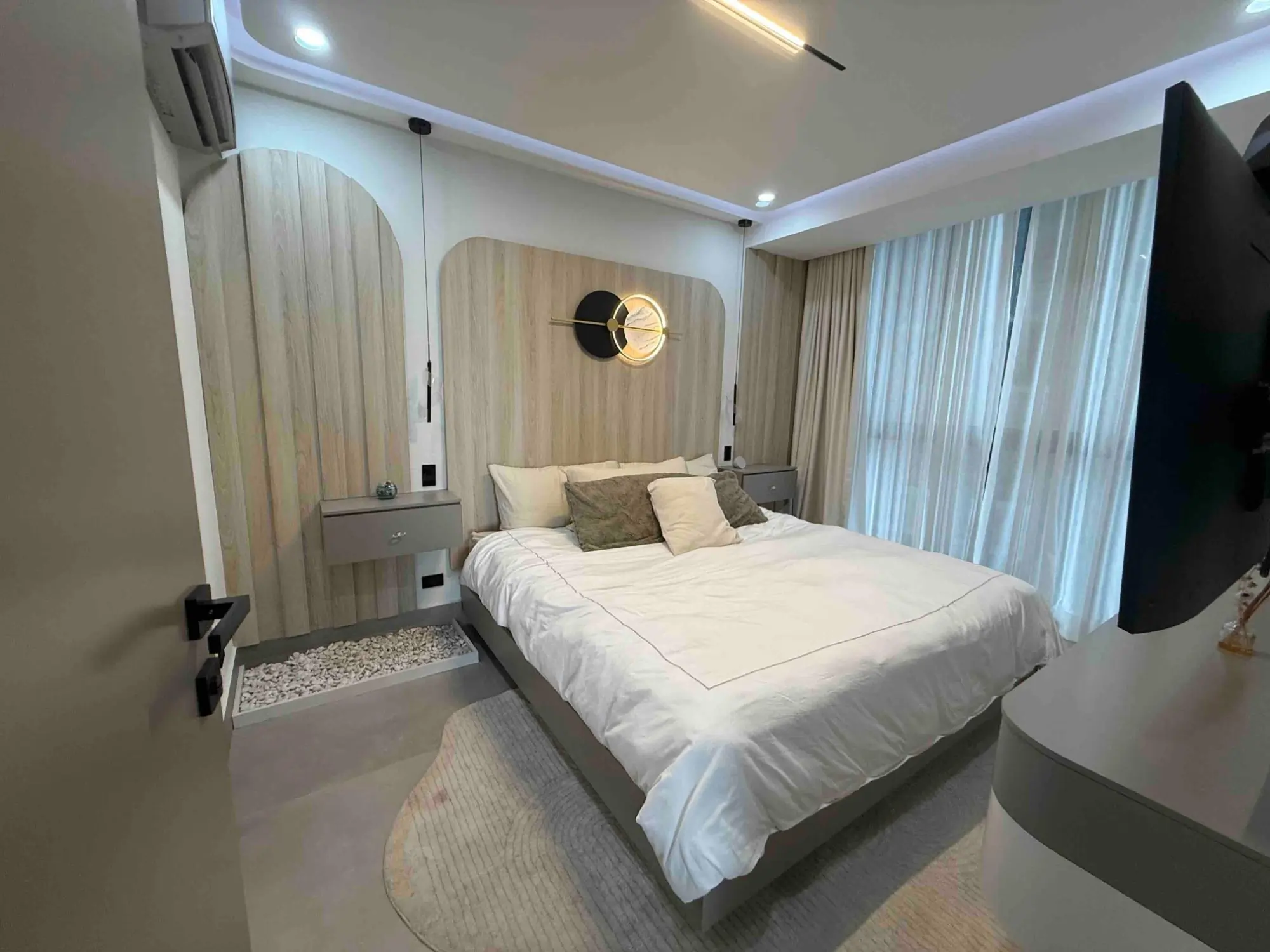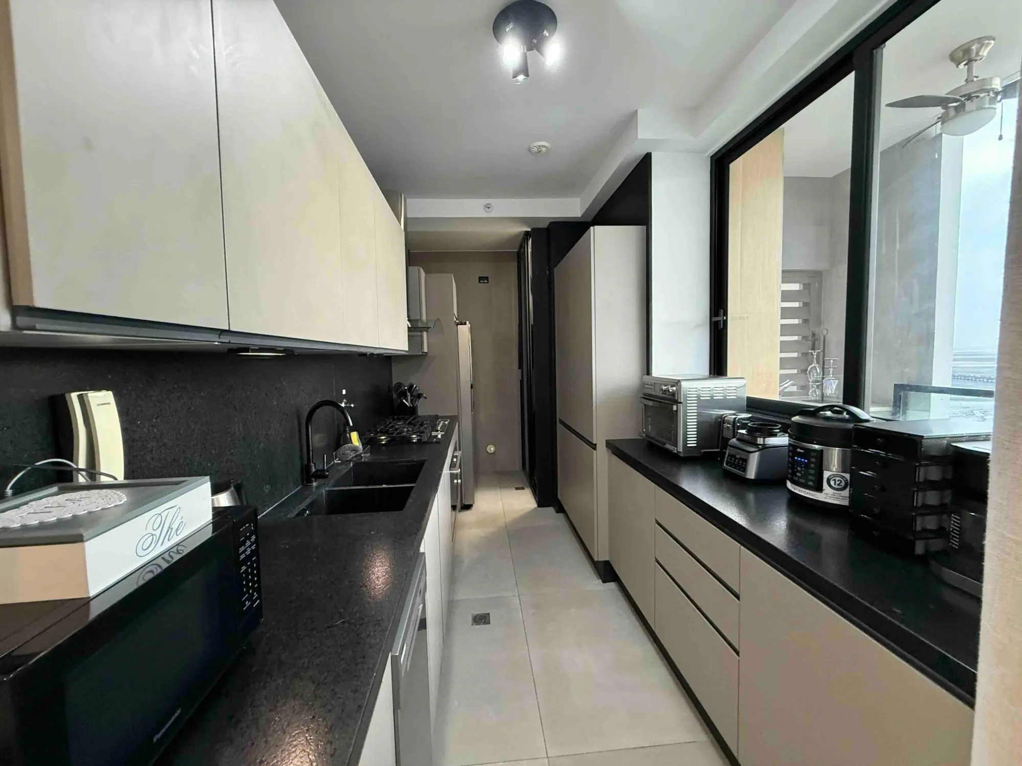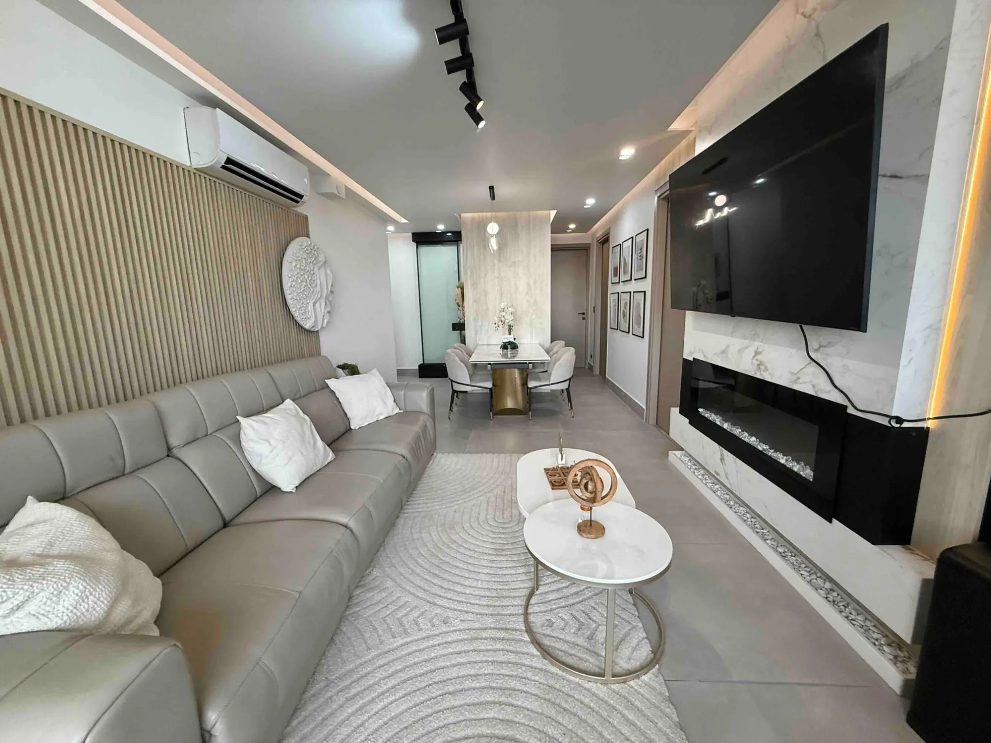 Este apartamento cuenta con 3 recamaras, 2 baños, cocina, sala – comedor, balcon con vista al mar, 2 estacionamientos, y un deposito. El edificio fue construido hace 3 años, y cuenta con numerosas amenidades como piscina exterior, gimnasio, pista de correr, cancha de tenis, spa, sala de cine, cuarto de juegos, salon de billar, area social cerrada y de coworking.