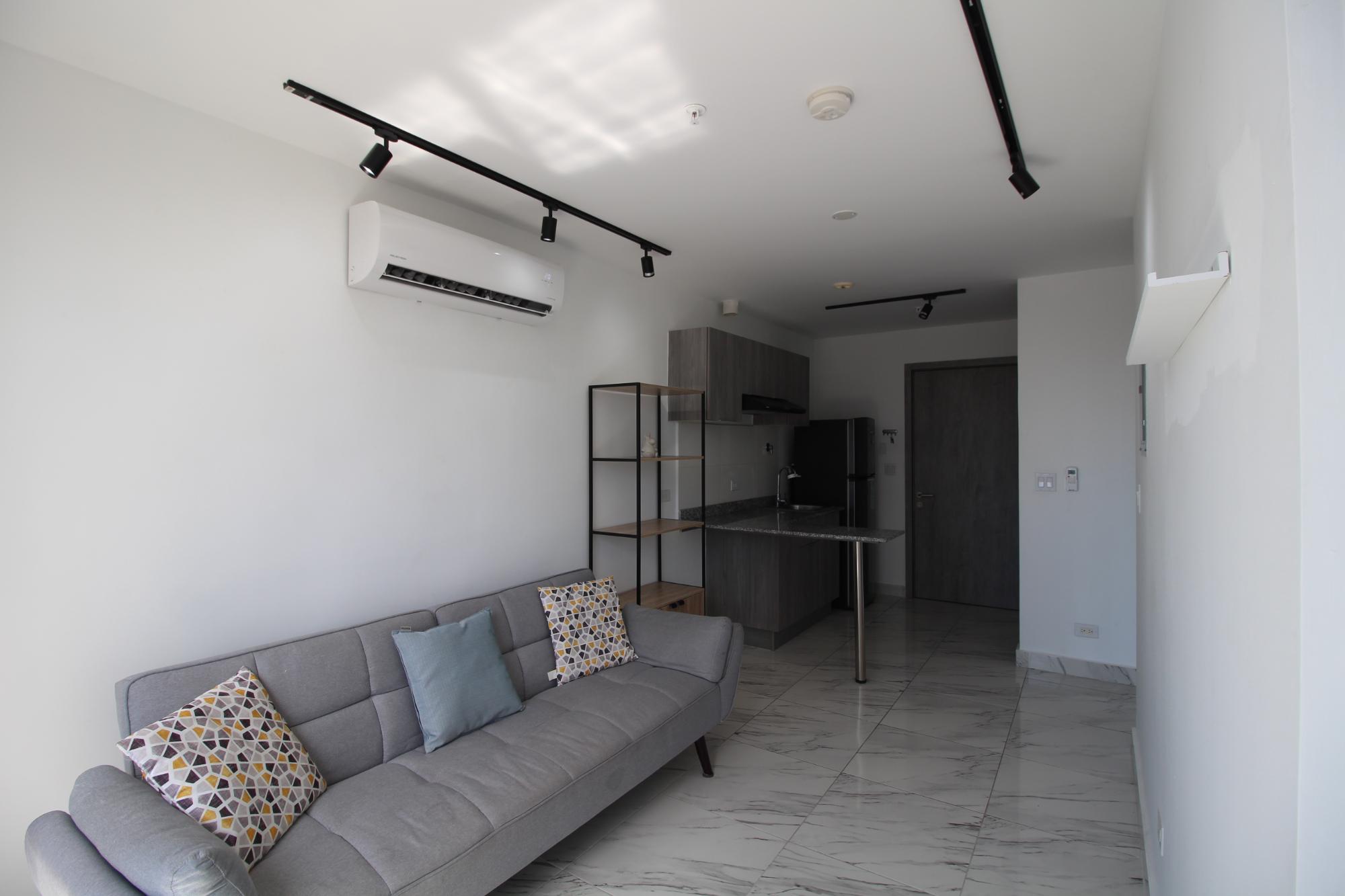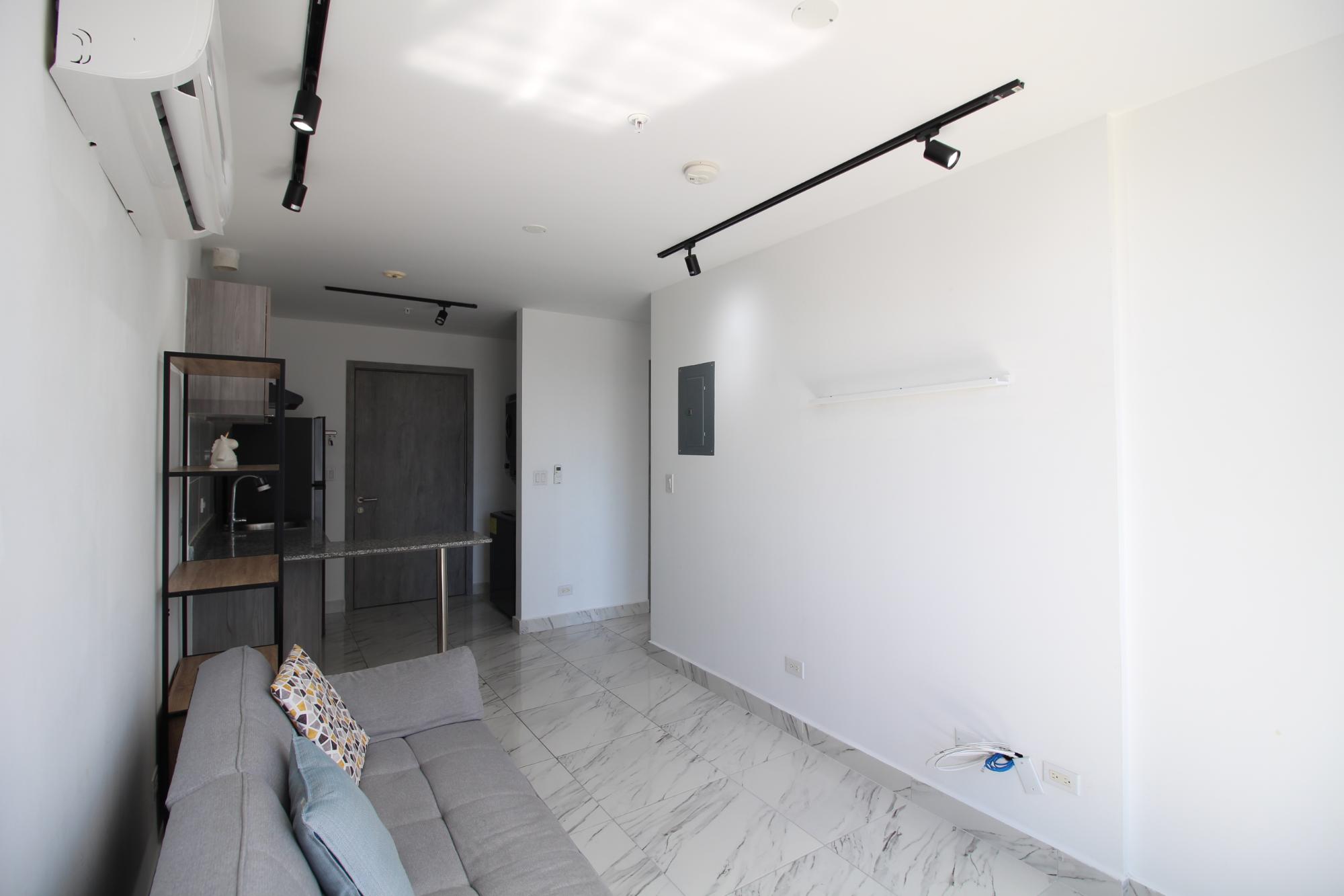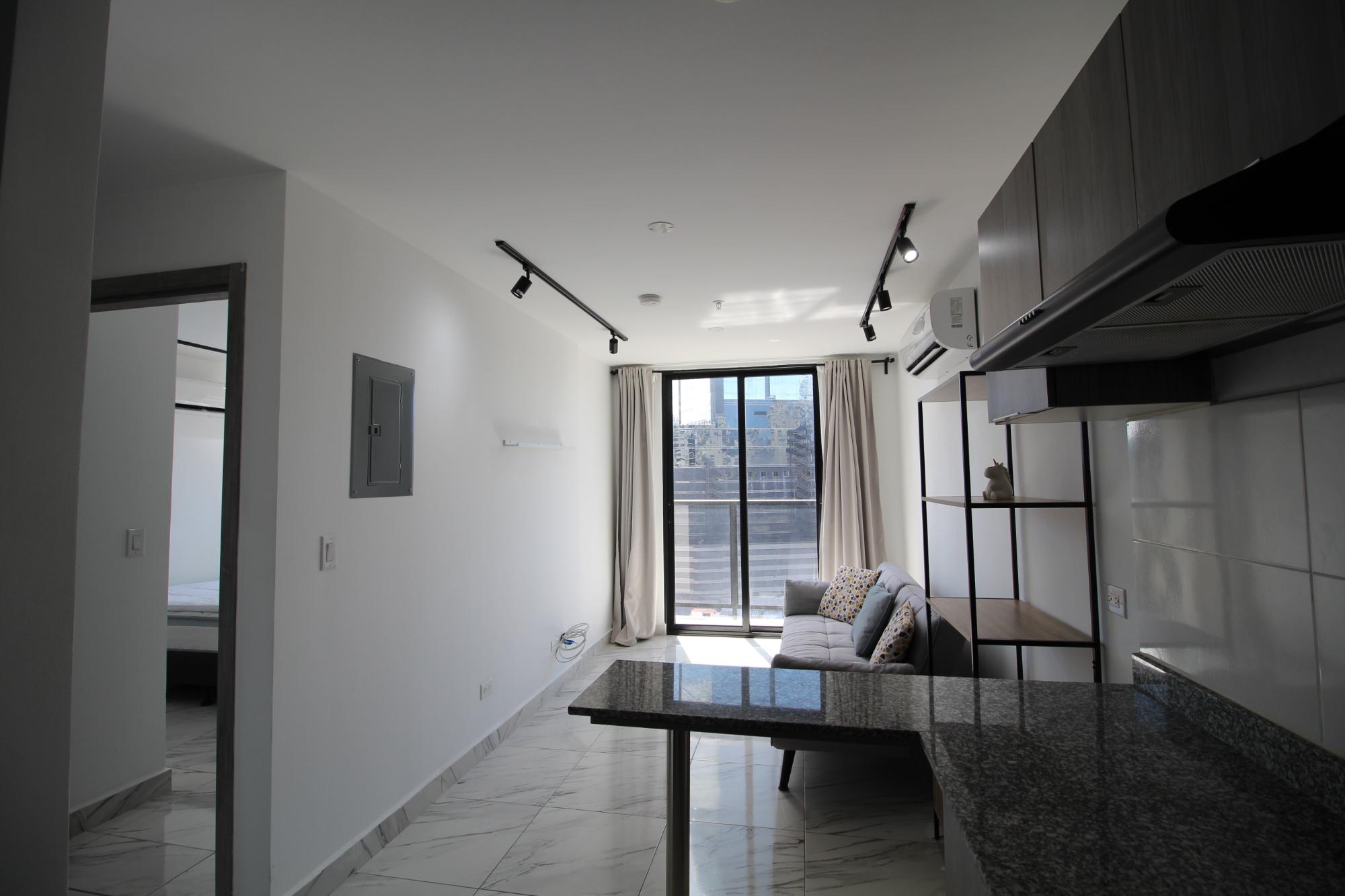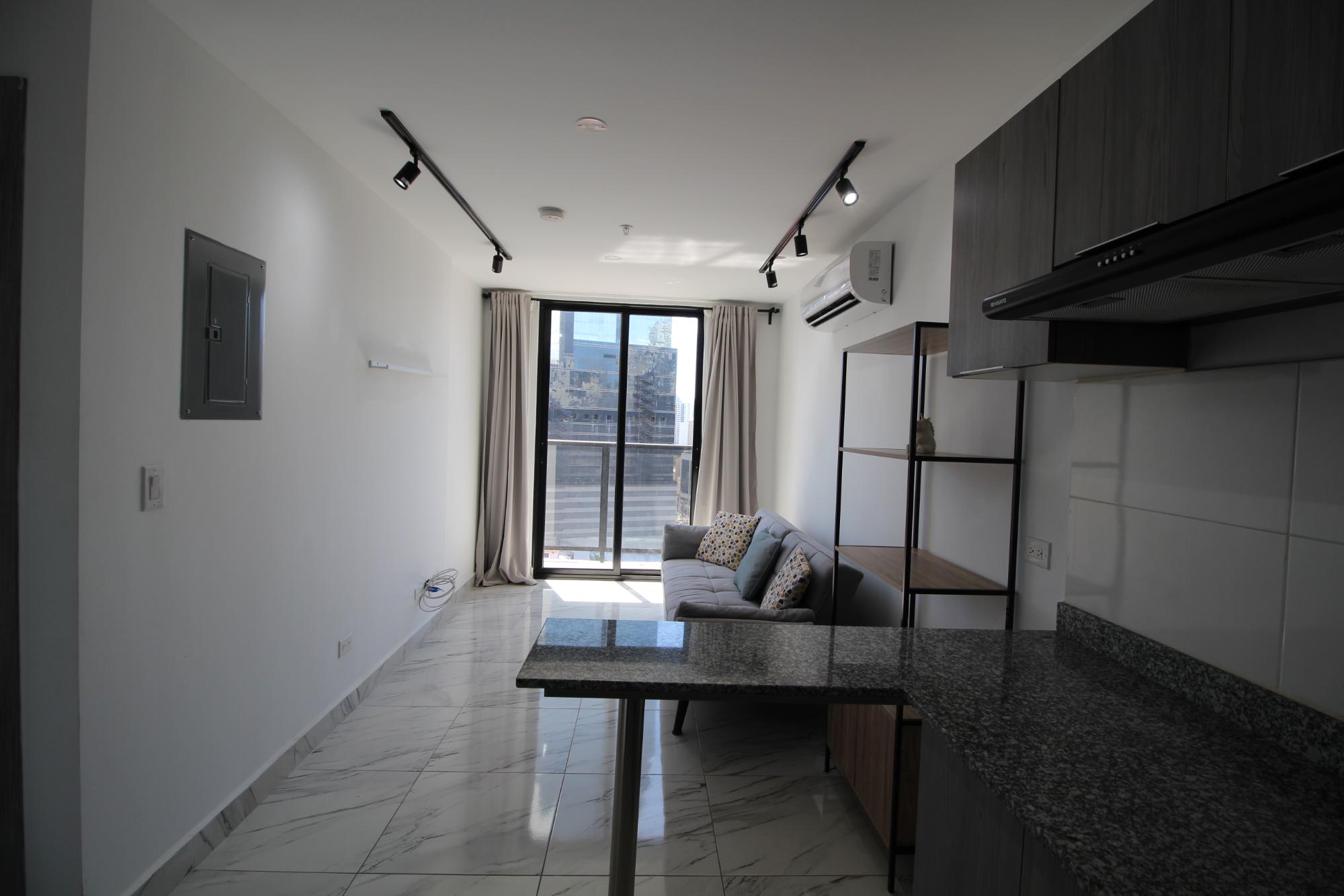 Moderno apartamento en PH The Gray – Calle 50 Apartamento de 43 m² con diseño funcional y excelente entrada de luz natural. Al ingresar, se accede a un living comedor con salida al balcón y una vista abierta hacia la ciudad. La cocina es abierta, estilo americana, con lavadero integrado. Dispone de una recámara con baño privado y un baño de visitas adicional. Los acabados son modernos y de buen gusto, con pisos de porcelanato tipo mármol que aportan elegancia al ambiente. El edificio ofrece amenidades de primer nivel: piscina, solárium, área de BBQ, gimnasio, juegos para niños, coworking y un exclusivo sky lounge en el piso 27 con vistas espectaculares de la ciudad. Cuenta además con seguridad 24/7, conserjería, planta eléctrica, cuatro ascensores y estacionamiento. Se entrega con línea blanca incluida. PH The Gray está estratégicamente ubicado sobre Calle 50, a pasos del Parque Urracá, la Cinta Costera, estaciones del metro, restaurantes, bancos, farmacias y todo lo necesario para una vida cómoda y conectada. Ideal para jóvenes profesionales, parejas o inversores que valoran la comodidad y la cercanía a todo.