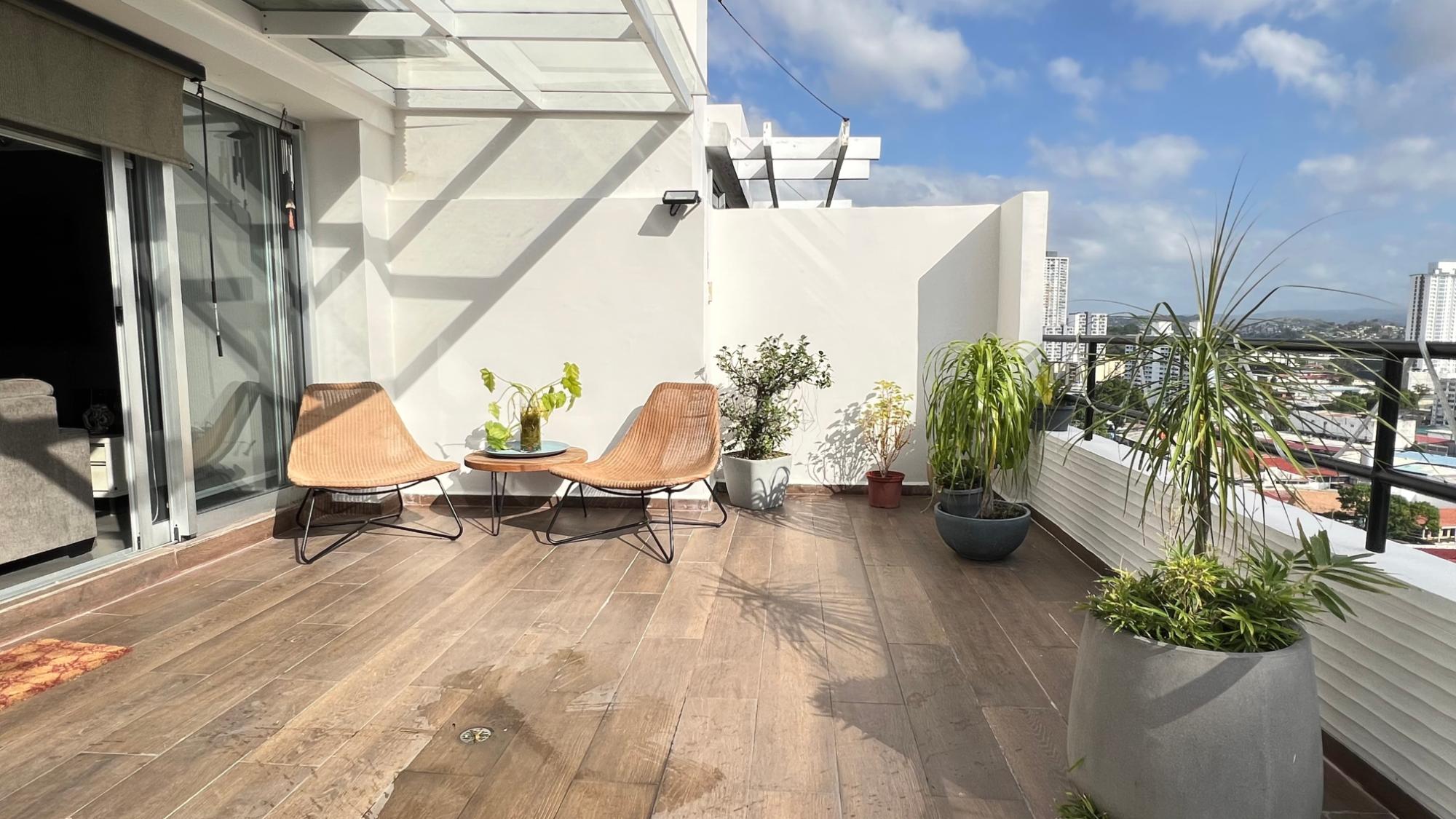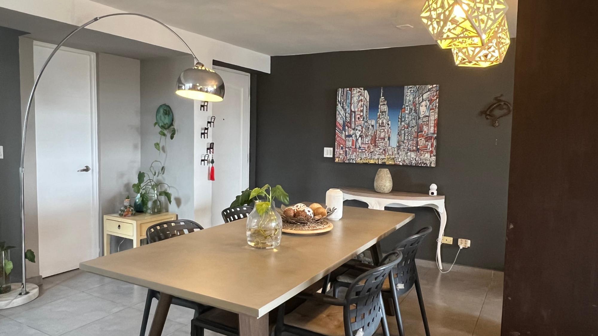 Disfrute el Amanecer todos los dias desde la terraza de este apartamento. Encantador apartamento de 194 M2 disponible para la venta en la prestigiosa zona de San Francisco, Altos del Golf, ubicado en la hermosa ciudad de Panamá. Esta propiedad cuenta con 3 amplias y luminosas recamaras y 4 baños completos, perfectamente distribuido. Sin duda, una excelente oportunidad para adquirir un espacio acogedor y cómodo para ti y tu familia. Altos del Golf En el Centro de la ciudad de Panamá, se encuentra un barrio residencial considerado como una de las mejores zonas de Panamá, con casas de lujo con amplios jardines y una línea de edificios de categoría, colindantes con el Parque Omar. Cerca de Avenidas como Vía Porras, Vía España, Cincuentenario y con fácil acceso al corredor Sur o Puente Centenario con dirección al interior del país. Pertenece al corregimiento de San Francisco, que cuenta con restaurantes, mall, supermercados, bancos, escuelas, etc. Parque Omar: Antiguo campo de golf cubierto de grama, con arboles y arbustos dispersos, posee 55 hectáreas de área verde, donde se refugian aves de jardín, silvestres migratorias. Su rica flora refresca y oxigena senderos donde miles de personas disfrutan diariamente, de sus diferentes áreas deportivas, áreas de niños o simplemente caminar o correr por 3,5km que bordean el parque. Su entrada es gratuita. Se realizan eventos culturales ya que cuenta con un anfiteatro y una biblioteca. El edificio cuenta con: Una puerta directa al Parque Omar. Piscina Gym Area de BBQ Juego de niños Solarium Seguridad 24 Horas. Salida directa dentro del parque Omar Tanque de Reserva de agua Planta electrica Parking de visita WiFi en area social APARTAMENTO PLANTA BAJA Sala – Comedor Cocina con despensa Lavanderia Den (se puede convertir en cuarto de empleada) Amplia Terraza Baño completo PLANTA ALTA 3 Recamaras 3 baños Balcon Deposito 2 estacionamientos amplios Linea Blanca completa Aires Acondicionado Cortinas Hermosa Vista al Parque y al mar No pierdas la oportunidad de adquirir este maravilloso apartamento en San Francisco, Panamá, y disfrutar de todas sus comodidades y ventajas. ¡Contáctanos ahora para más información y para visitar esta propiedad de ensueño!
