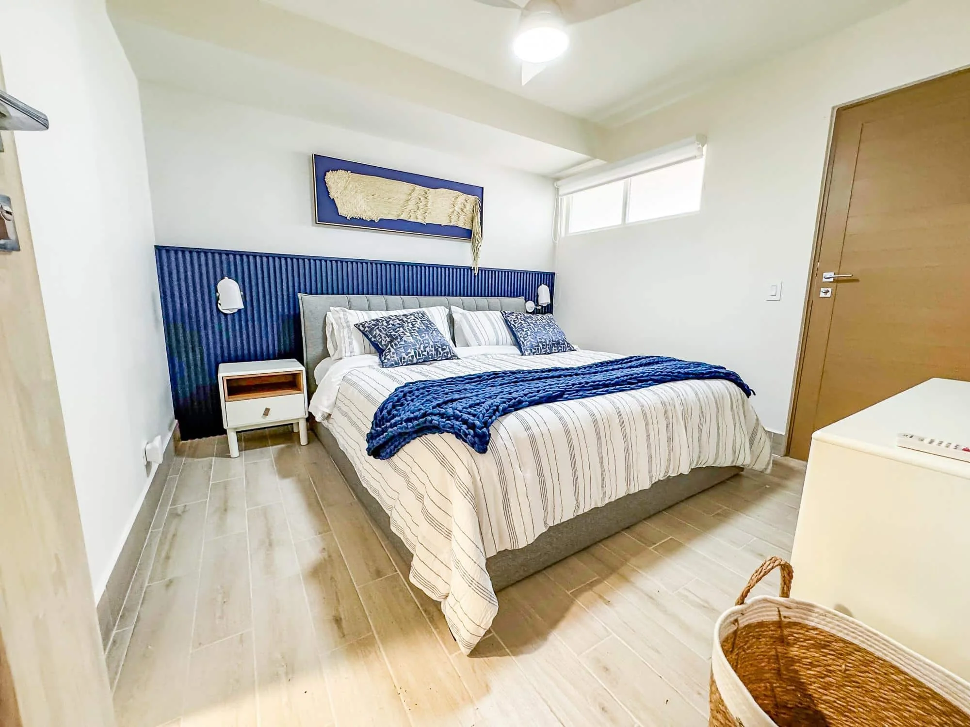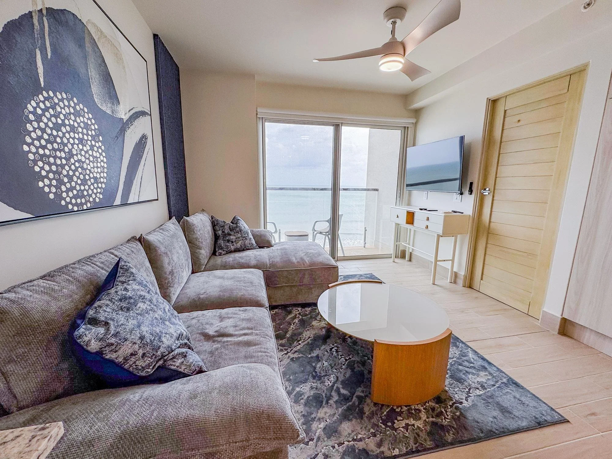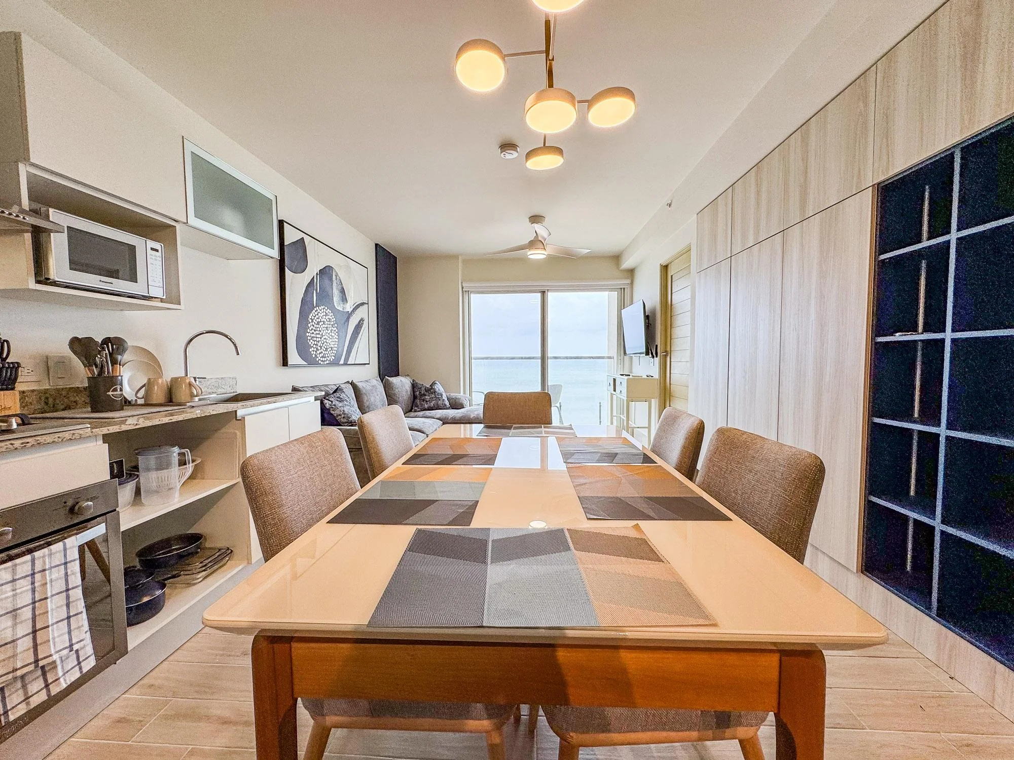 Este apartamento de 2 dormitorios y 2 baños en Playa Caracol, Punta Chame, ofrece vistas directas al mar y forma parte de un complejo de nueva construcción. La propiedad está completamente amueblada y lista para ocupación inmediata o alquiler. Detalles de la propiedad: Distribución: 2 dormitorios, 2 baños (con sistema de cierre hermético). Vistas al mar: Disfrute de vistas directas al mar desde la sala, el comedor, la cocina, el balcón y el dormitorio principal. Totalmente amueblado: El apartamento incluye todo el mobiliario necesario: sofá de sala, mesa de comedor con 6 sillas, 2 camas, mesitas de noche, ropa de cama, toallas, electrodomésticos y utensilios de cocina. Listo para entrar a vivir: Todo listo para entrar a vivir o alquilar.