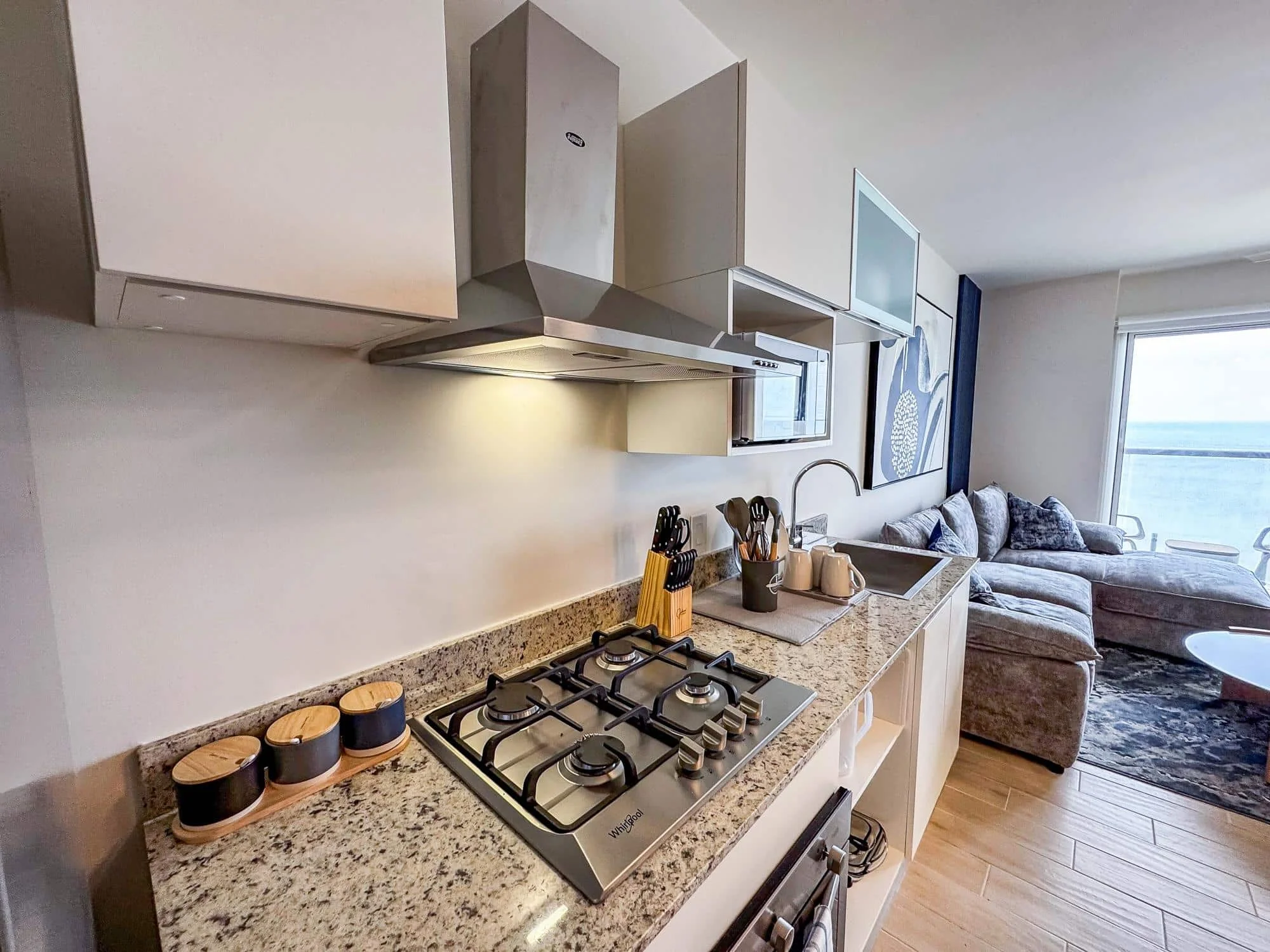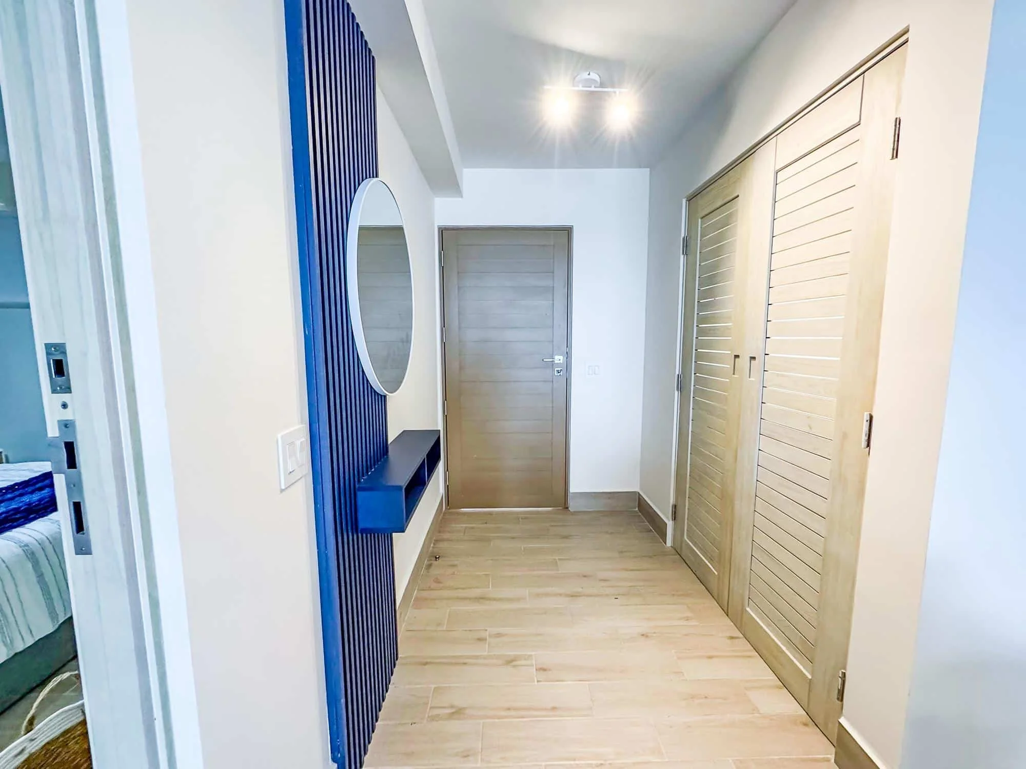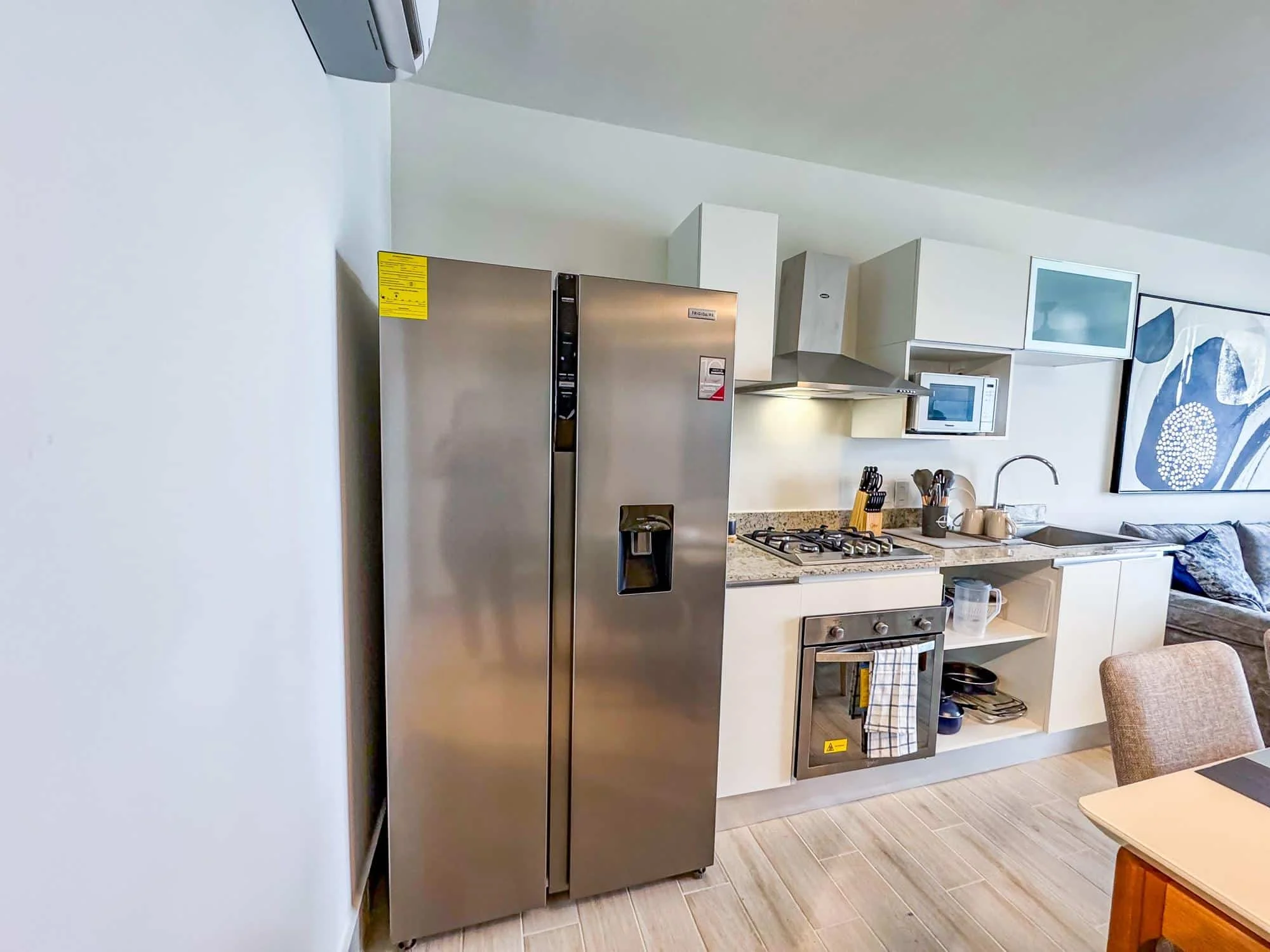 Este apartamento de 2 dormitorios y 2 baños en Playa Caracol, Punta Chame, ofrece vistas directas al mar y forma parte de un complejo de nueva construcción. La propiedad está completamente amueblada y lista para ocupación inmediata o alquiler. Detalles de la propiedad: Distribución: 2 dormitorios, 2 baños (con sistema de cierre hermético). Vistas al mar: Disfrute de vistas directas al mar desde la sala, el comedor, la cocina, el balcón y el dormitorio principal. Totalmente amueblado: El apartamento incluye todo el mobiliario necesario: sofá de sala, mesa de comedor con 6 sillas, 2 camas, mesitas de noche, ropa de cama, toallas, electrodomésticos y utensilios de cocina. Listo para entrar a vivir: Todo listo para entrar a vivir o alquilar.