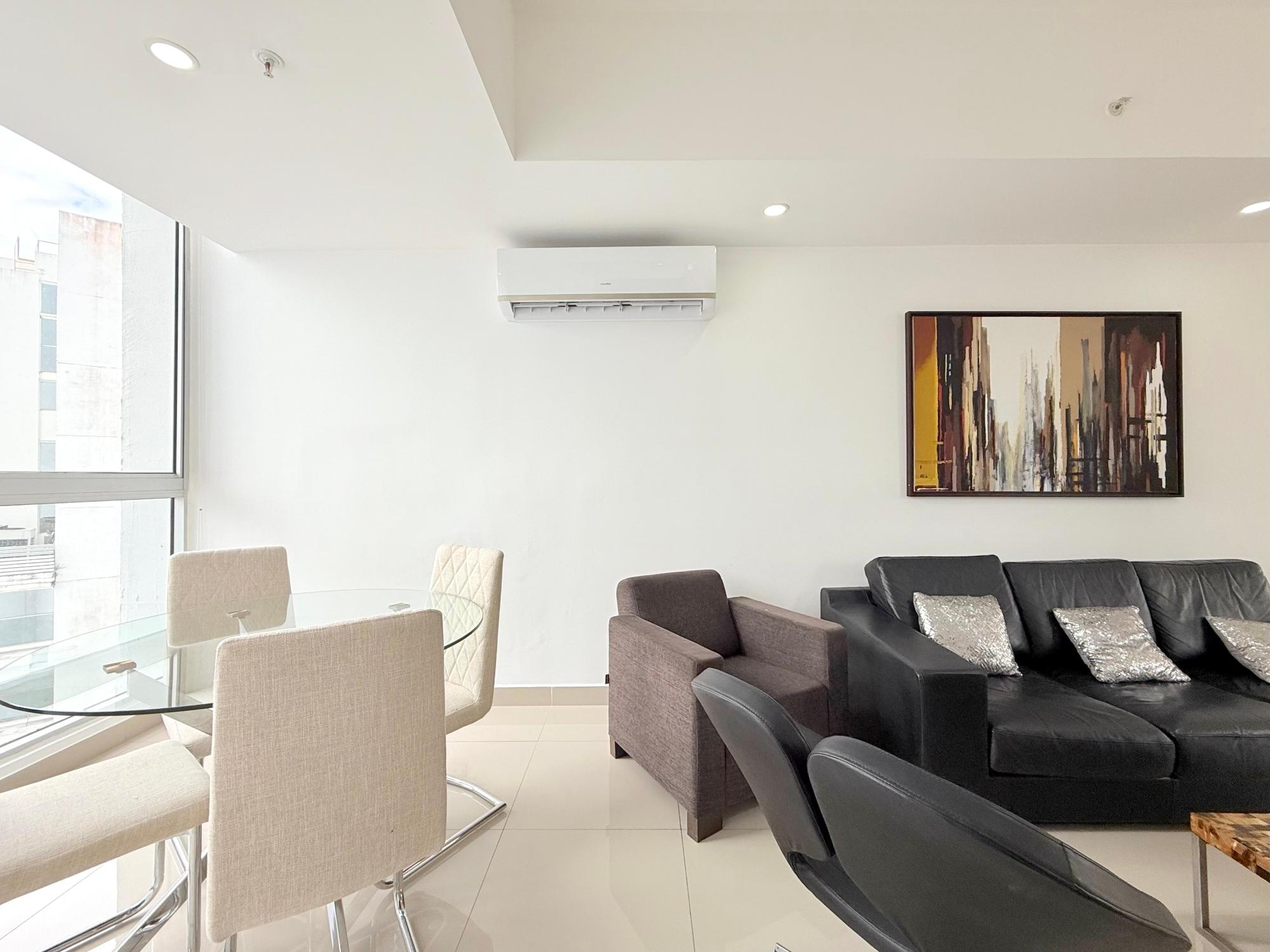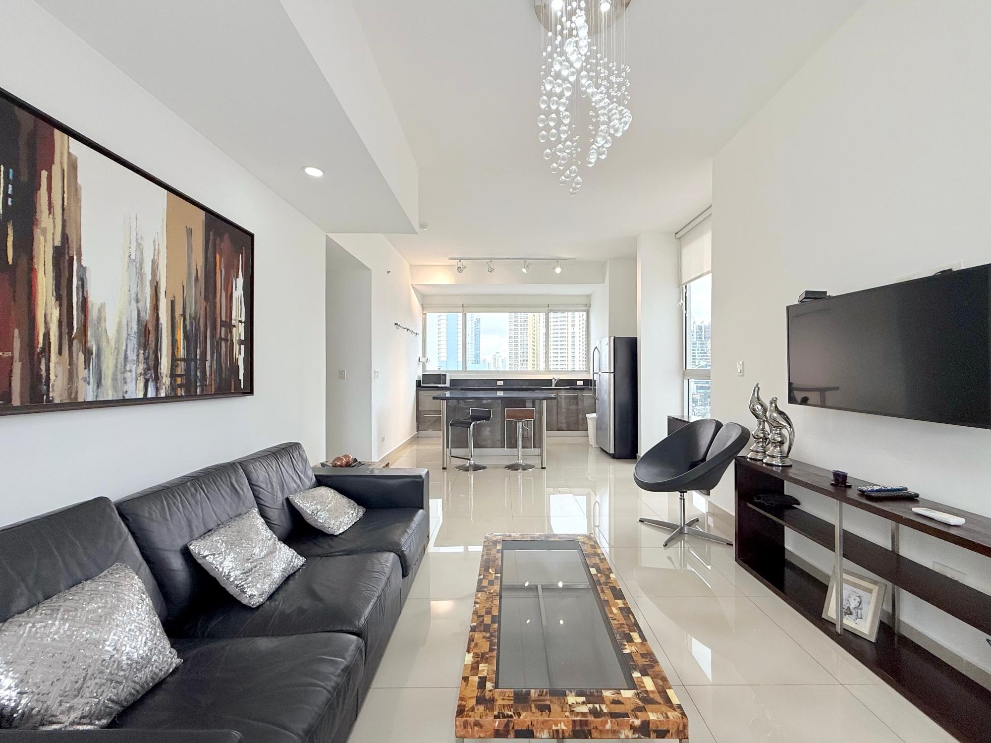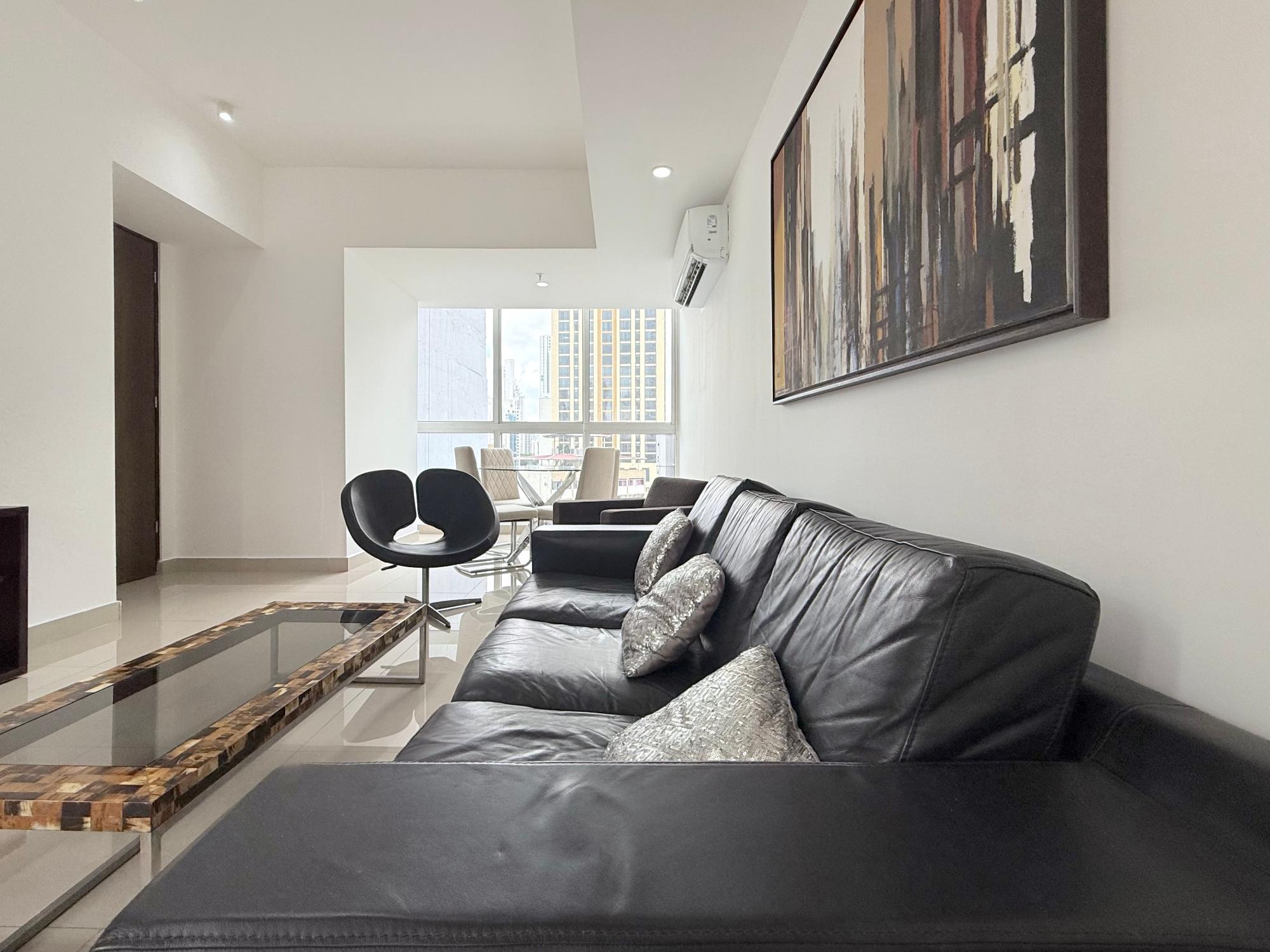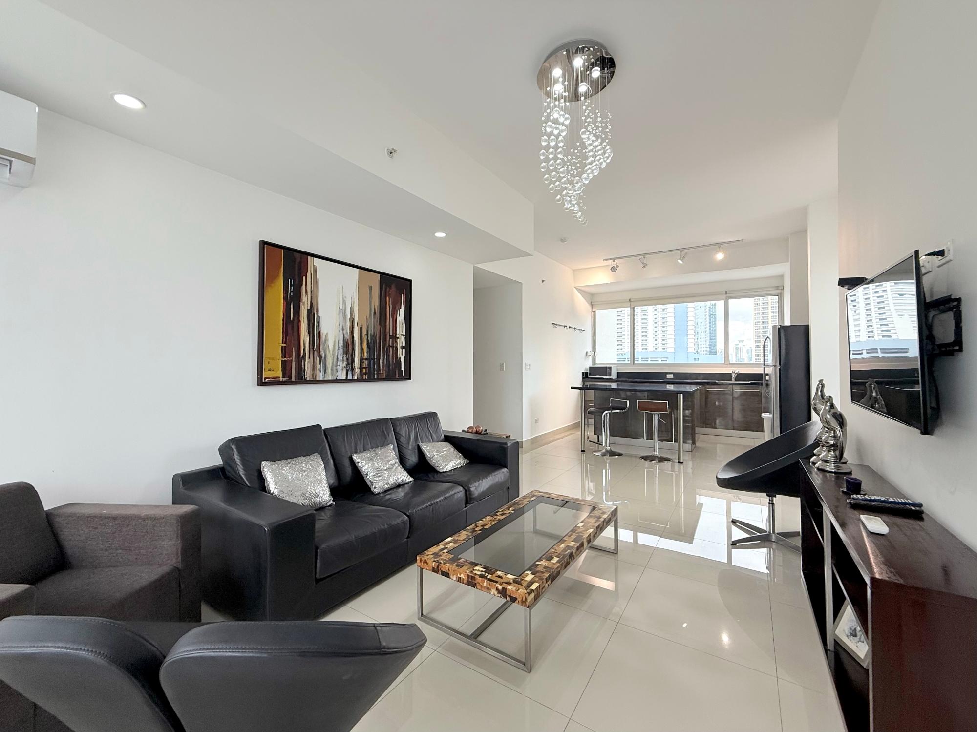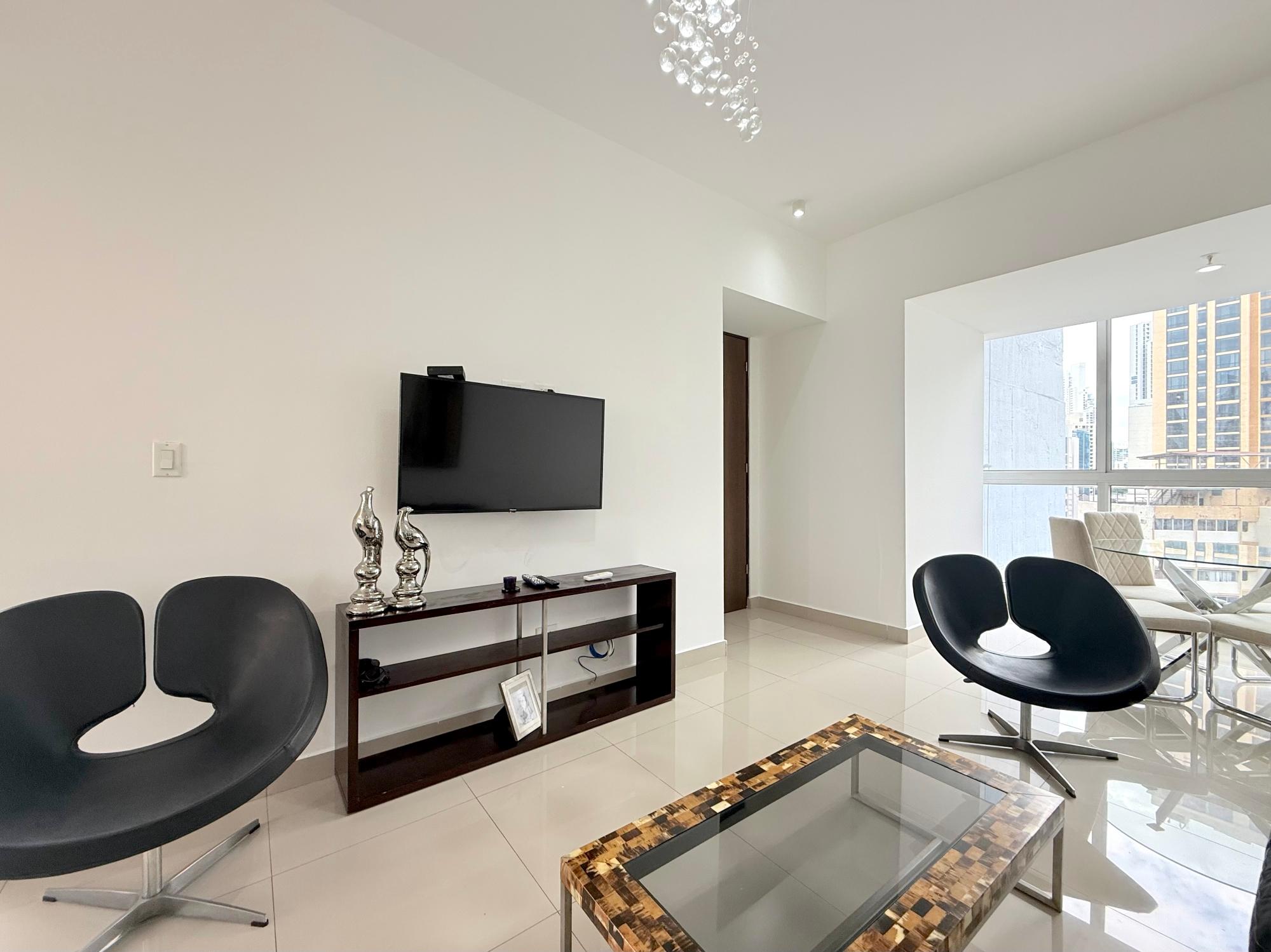 Nuestro apartamento en el edificio Denovo está localizado en el distrito financiero de la ciudad capital. En este imponente edificio, son 42 pisos con 100 apartamentos, un magnífico vestíbulo panorámico, un área social con piscina, bar & lounge, estacionamiento techado, seguridad 24 horas y un restaurante internacional “Rausch“ el más exclusivo restaurant & lounge bar en su categoría, propiedad del internacionalmente aclamado chef Jorge Rausch, exhibiendo la fabulosa comida francesa combinando una íntima atmósfera con un innovador diseño y el más cálido y eficiente servicio. El edificio Denovo está localizado en una privilegiada y estratégica área, en el centro del distrito financiero, cerca de Via España, cerca de la Iglesia El Santuario y el Centro Comercial Multicentro. Entre los puntos cercanos de interés esta el Centro Comercial Multiplaza Pacific. Y Aún,permite a nuestros huéspedes, disfrutar de la magnífica y tranquila vista desde la tranquilidad de sus espaciosas suites, los más singulares de la ciudad. Los apartamentos en el edificio Denovo está diseñado siguiendo los conceptos más contemporáneos en los cuales diferentes materiales y objetos (como cuero y madera) están combinados para crear una atmósfera sobria y aún inquieta. Apartamentos de 2 habitación y 2 baño para alquilar, miden 111 metros cuadrados. Los apartamentos tienen cocinas completamente equipadas. Los apartamentos estan localizados en la Ciudad de Panama, Panama 200 metros desde Via España 4.2 kilometros del aeropuerto de a ciudad de Panamá, Marcos A. Gelabert Intl. Airport (PAC) 400 metros del Crown Casino 400 metros del Veneto Casino 500 metros del Fiesta Casino Los apartamentos estan lujosamente equipados. Una cocina completamente equipada con todo lo que necesita Lavandería con lavadora y secadora Sala con un lujoso sofá de cuero, televisión con pantalla LCD, television por cable Internet de alta velocidad Vestidor con closet,Tabla con tabla de planchar Aire acondicionado en cada habitación Estacionamientos techados y cuidados 24 horas