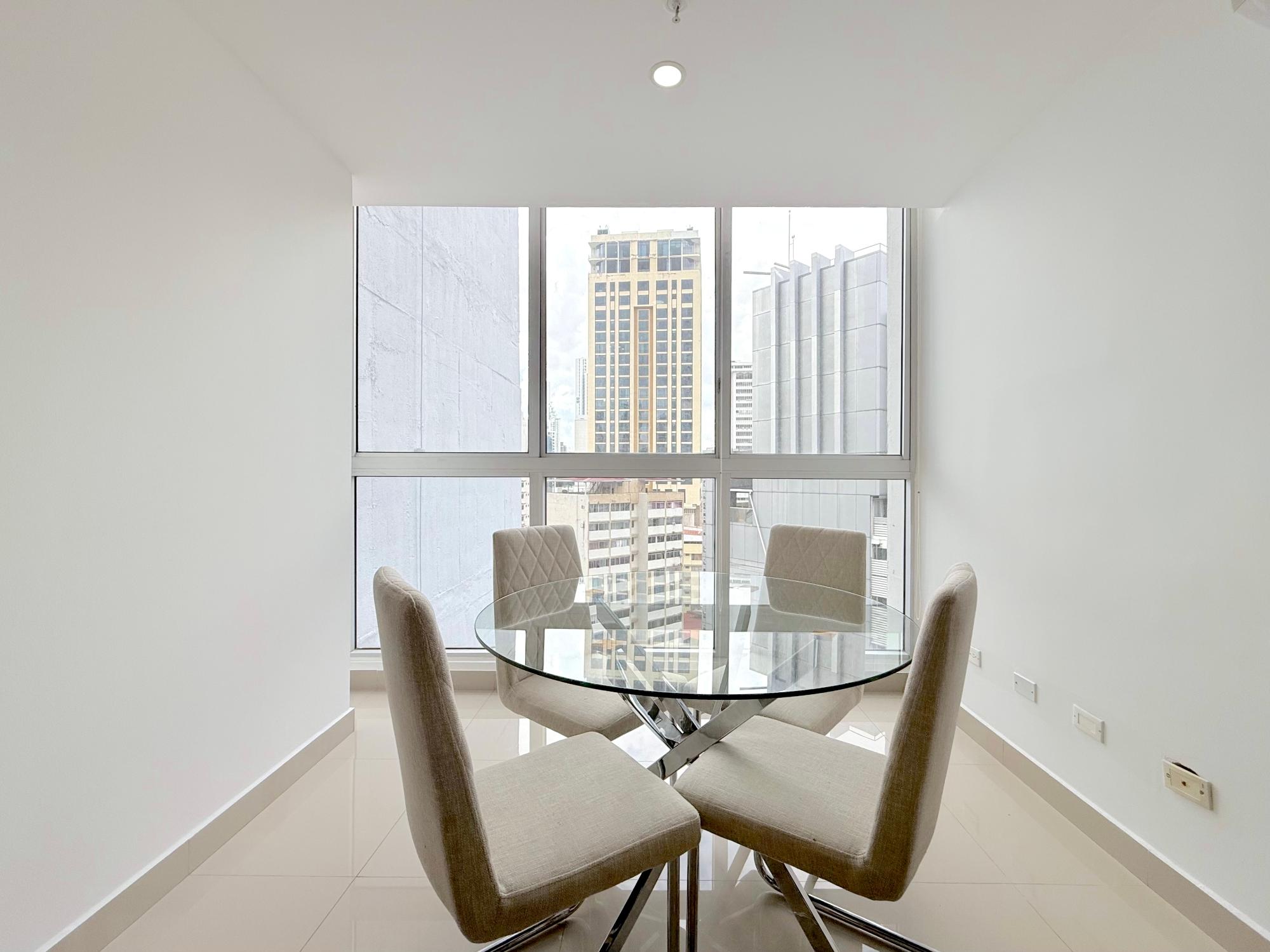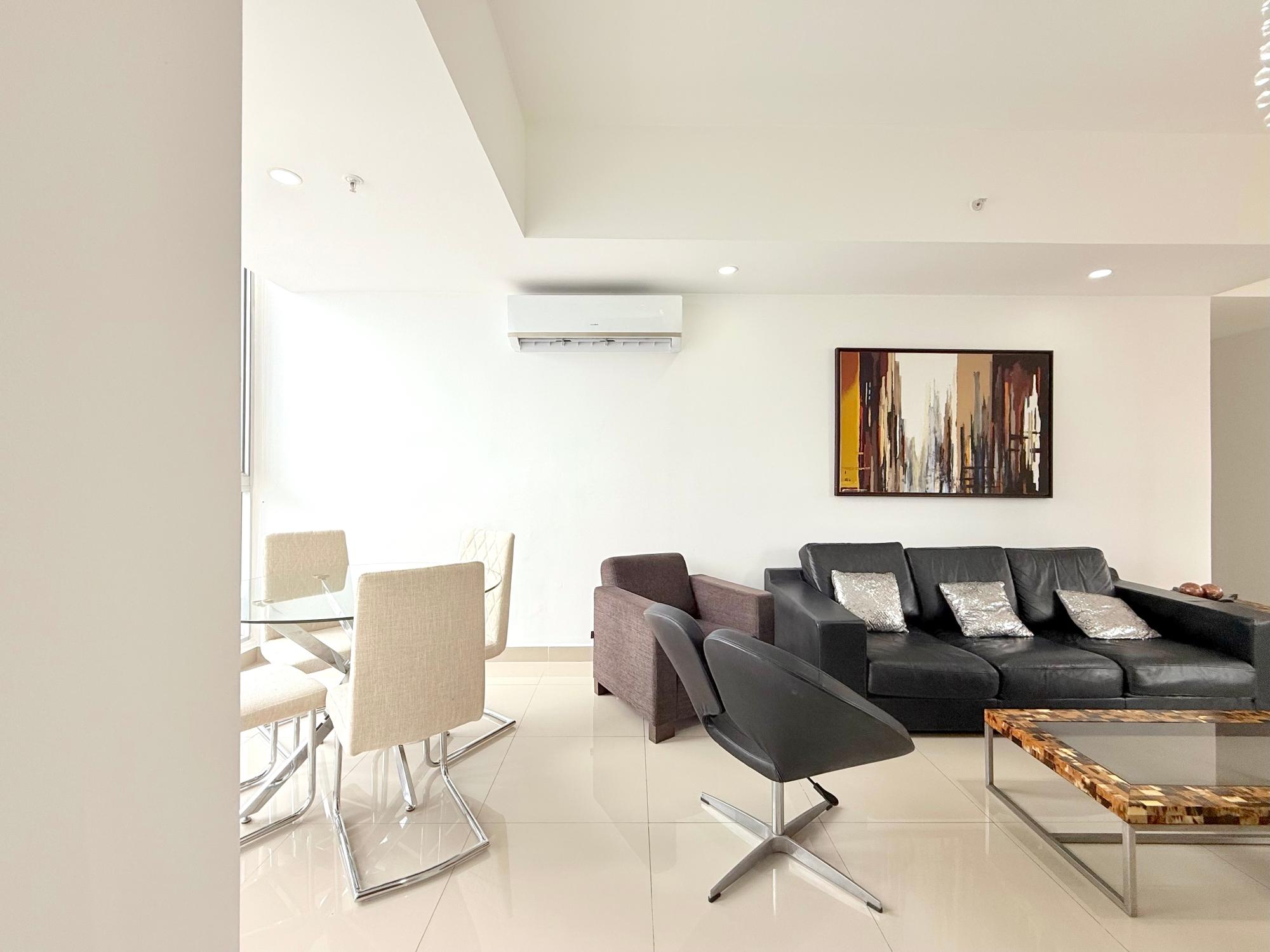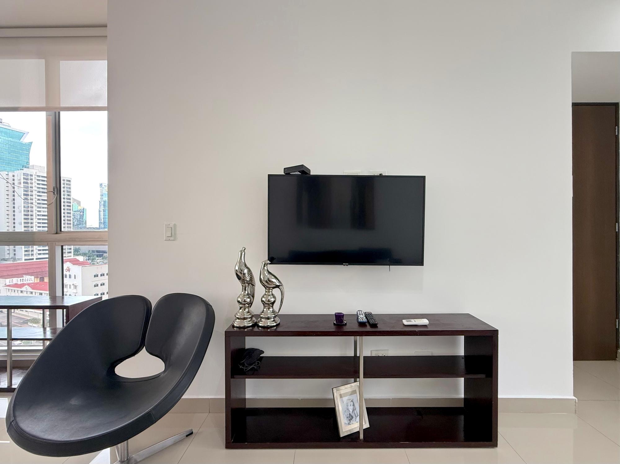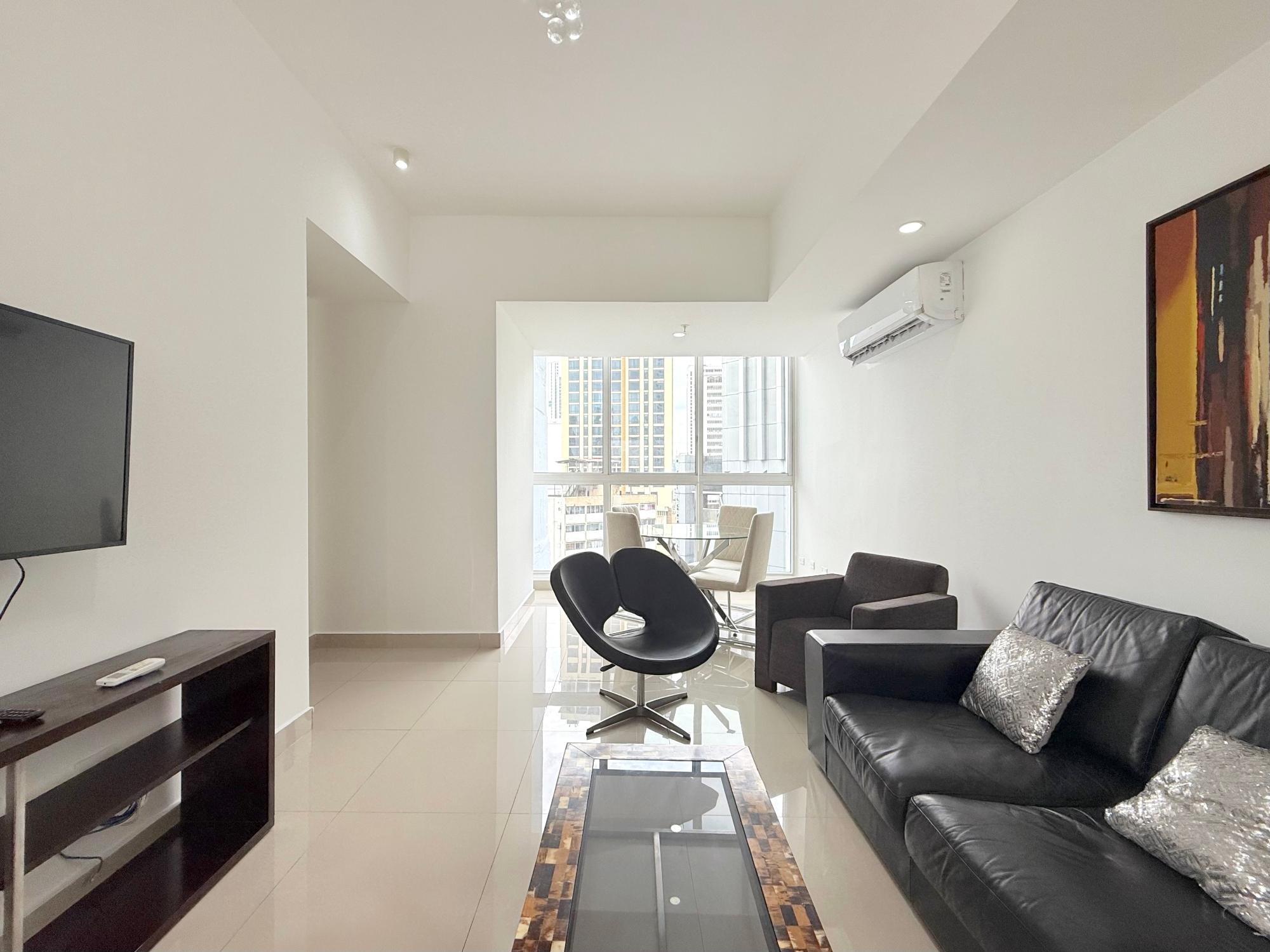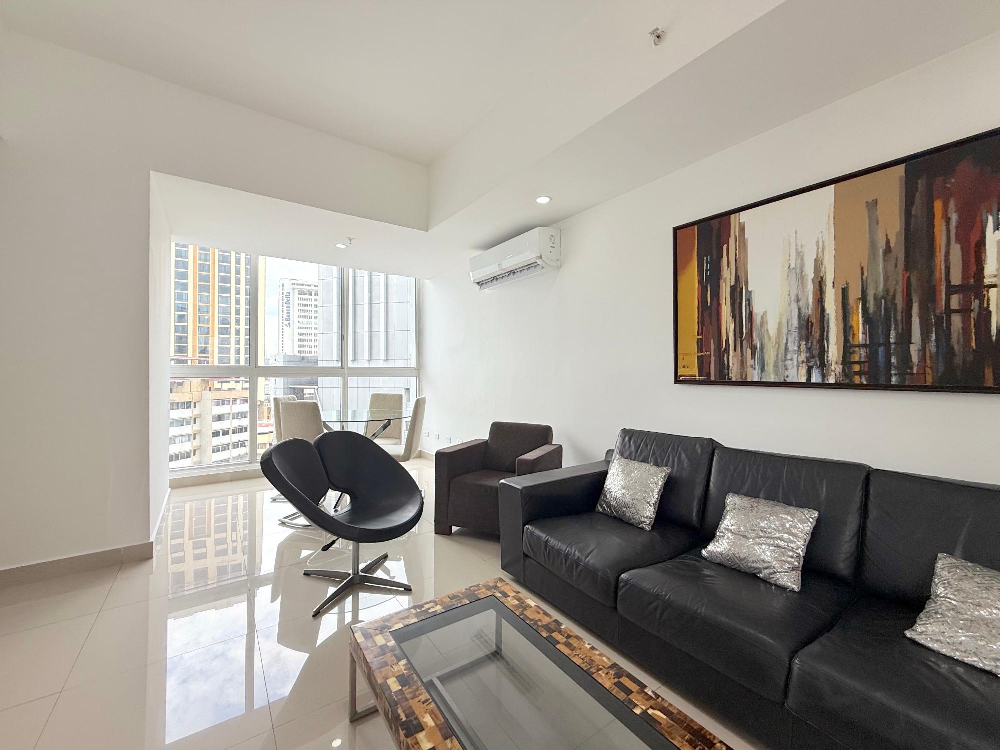 Nuestro apartamento en el edificio Denovo está localizado en el distrito financiero de la ciudad capital. En este imponente edificio, son 42 pisos con 100 apartamentos, un magnífico vestíbulo panorámico, un área social con piscina, bar & lounge, estacionamiento techado, seguridad 24 horas y un restaurante internacional “Rausch“ el más exclusivo restaurant & lounge bar en su categoría, propiedad del internacionalmente aclamado chef Jorge Rausch, exhibiendo la fabulosa comida francesa combinando una íntima atmósfera con un innovador diseño y el más cálido y eficiente servicio. El edificio Denovo está localizado en una privilegiada y estratégica área, en el centro del distrito financiero, cerca de Via España, cerca de la Iglesia El Santuario y el Centro Comercial Multicentro. Entre los puntos cercanos de interés esta el Centro Comercial Multiplaza Pacific. Y Aún,permite a nuestros huéspedes, disfrutar de la magnífica y tranquila vista desde la tranquilidad de sus espaciosas suites, los más singulares de la ciudad. Los apartamentos en el edificio Denovo está diseñado siguiendo los conceptos más contemporáneos en los cuales diferentes materiales y objetos (como cuero y madera) están combinados para crear una atmósfera sobria y aún inquieta. Apartamentos de 2 habitación y 2 baño para alquilar, miden 111 metros cuadrados. Los apartamentos tienen cocinas completamente equipadas. Los apartamentos estan localizados en la Ciudad de Panama, Panama 200 metros desde Via España 4.2 kilometros del aeropuerto de a ciudad de Panamá, Marcos A. Gelabert Intl. Airport (PAC) 400 metros del Crown Casino 400 metros del Veneto Casino 500 metros del Fiesta Casino Los apartamentos estan lujosamente equipados. Una cocina completamente equipada con todo lo que necesita Lavandería con lavadora y secadora Sala con un lujoso sofá de cuero, televisión con pantalla LCD, television por cable Internet de alta velocidad Vestidor con closet,Tabla con tabla de planchar Aire acondicionado en cada habitación Estacionamientos techados y cuidados 24 horas