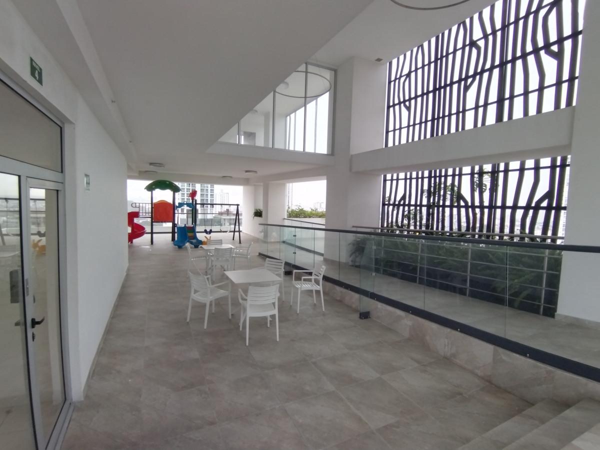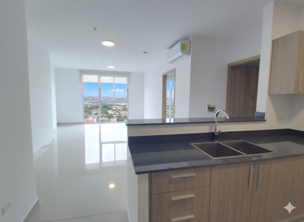 Apartamento nuevo ubicado en el punto más alto de Hato Pintado en el centro de la ciudad en una calle sin salida, a pocos metros de lla 12 de Octubre, la estación del Metro y un sin número de comercios como la Arrocha, Smart Fit, Supermercado El Rey y Do It Center. El proyecto cuenta con estacionamientos de visita, un lujoso lobby, gimnasio, salón de fiestas, área de juego de niños, parque para mascotas y una hermosa piscina con vista a la ciudad. El apartamento cuenta con una cocina abierta, sala/comedor, techos altos, lavandería, dos recamaras, dos baños completos, lámparas, cortinas enrollables, línea blanca, aires acondicionados inverter Panasonic, un estacionamiento (Nivel E300 No 4) y un depósito (Nivel E300 – No. 307). Está listo para ocupar inmediatamente con su luz instalada.