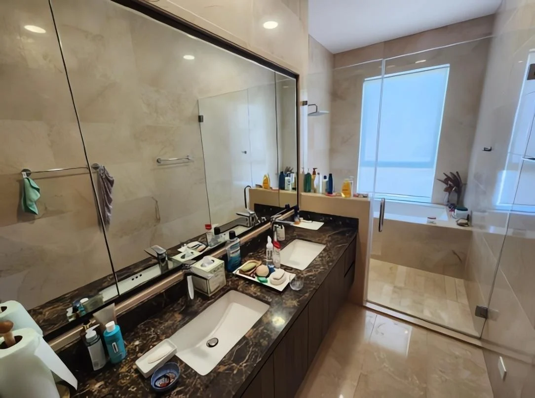 Banco vende apartamento de 358 m² en el exclusivo PH Aria, Costa del Este, distribuido en 4 recámaras (cada una con baño privado, dos de ellas con walk-in closet), 4 baños completos, medio baño de visitas, sala, comedor, sala familiar con balcón, den, desayunador, cocina con sobres de cuarzo, lavandería, cuarto y baño de empleada. Incluye 3 estacionamientos privados y un depósito. mas linea blanca y aires acondicionados El apartamento cuenta con acabados de lujo como pisos de mármol y porcelanato, baños con sobres de mármol y tina jacuzzi en el principal. El edificio ofrece completas áreas sociales con piscina, gimnasio, salón de juegos, cancha de squash, salón de fiestas, baño turco, seguridad 24/7, planta eléctrica y estacionamientos de visitas. Precio de venta: B/.950,000.00. Para más información contáctanos