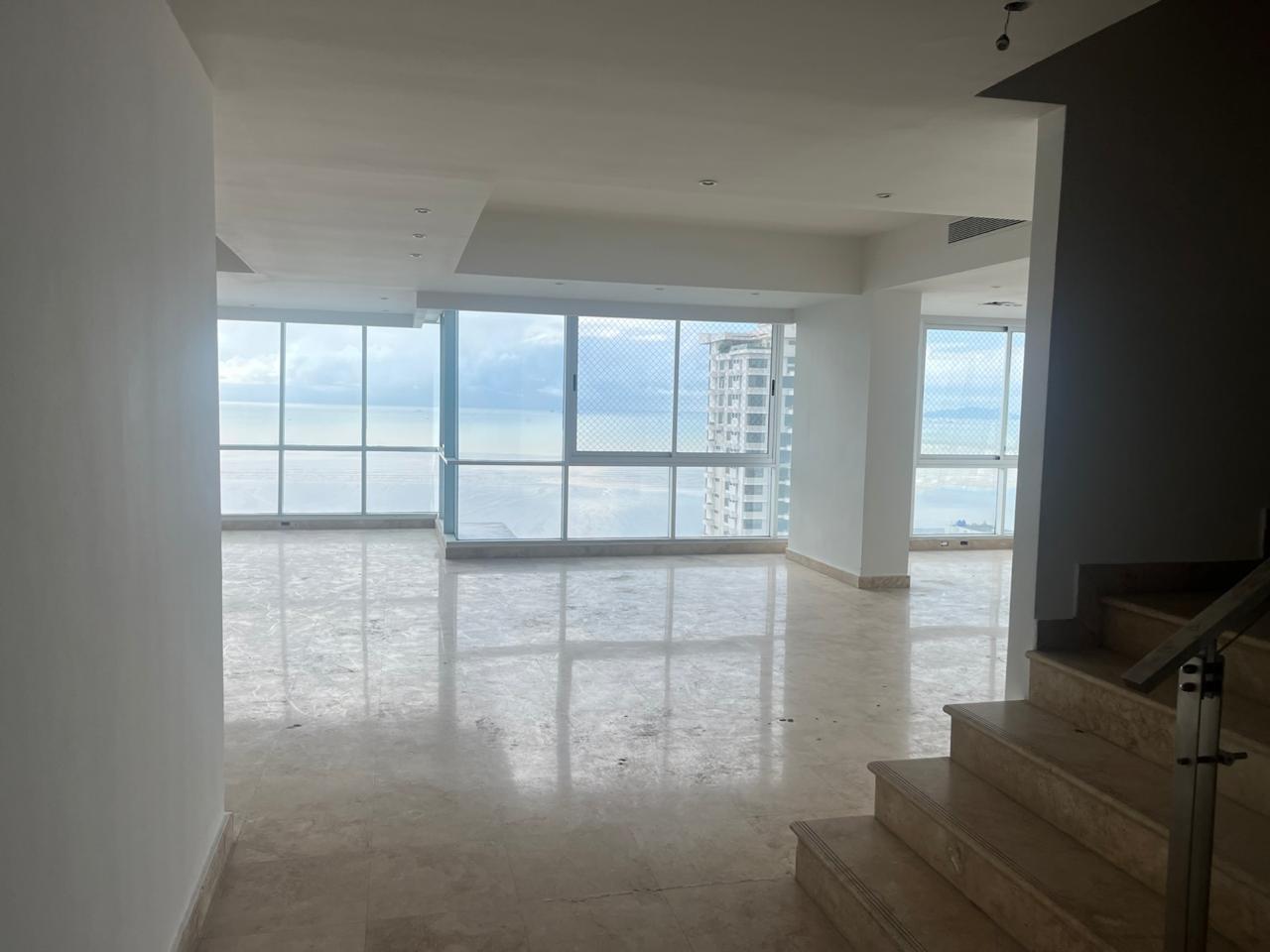 Banco vende Penthouse en Ph Titanium Penthouse de 397 mt2, 2 niveles, 4 habitaciones, 5 baños, sala, comedor cocina, cuarto y baño de empleada, 2 puestos de estacionamiento. Elevador para residentes, elevador servicio, circuito cerrado, piscina adulto, parque, cancha deportiva, estacionamientos para visitas, cerramiento, seguridad contra incendio, garita, planta, control de entrada. Precio de venta: $679,250 Para mayor información contáctenos en Grupo Gestiones Real Estate