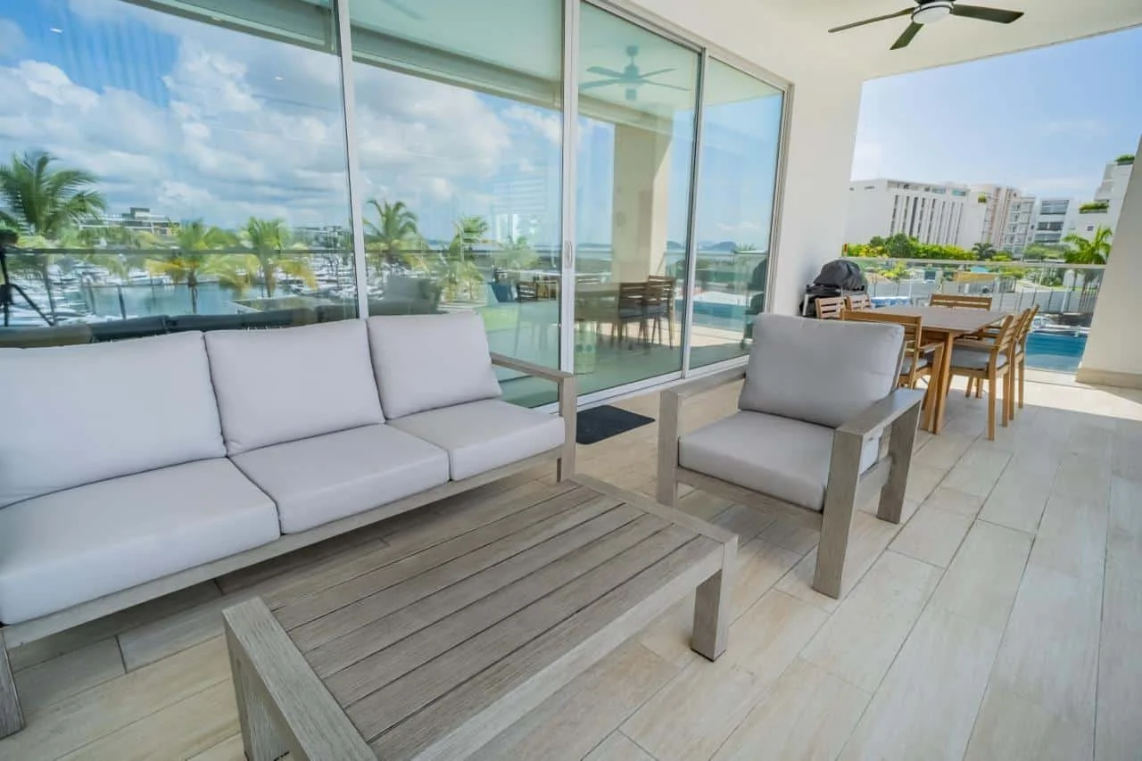 Ubicado en las exclusivas islas de Ocean Reef, Beach Club Residencias ofrece este excepcional apartamento de 3 recamaras que ofrece la fusión perfecta entre la serenidad costera y el lujo moderno. Con una superficie de 229,27 m², esta residencia meticulosamente diseñada brinda una experiencia de vida superior en la comunidad privada más prestigiosa de Panamá. El apartamento cuenta con 3 amplios dormitorios, cada uno con su propio baño, area de servicio completa y baño de visitas. Su sofisticado interior exhibe acabados de alta calidad, un elegante diseño contemporáneo y amplios ventanales que inundan el espacio de luz natural. Las impresionantes vistas al océano, la marina privada y a la ciudad desde el amplio balcón privado crean un telón de fondo fascinante, transformando cada momento en una escapada idílica. Disfrute de la comodidad de 3 estacionamientos, además del acceso a servicios de primera clase que definen el estilo de Beach Club Residences. Diseñada con el concepto de «vida de playa en la ciudad», esta propiedad ofrece una escapada cautivadora que trasciende lo ordinario. Deléitese con la zona social de 80 metros, con dos piscinas y acceso directo a un muelle privado, además de acceso subterráneo a la marina y centro de actividades acuáticas, que evoca el encanto de South Beach en Miami. Aquí encontrará un bar de playa y una zona de barbacoa, el entorno perfecto para reuniones y celebraciones. Los amantes del fitness disfrutarán del gimnasio en la azotea, equipado con tecnología de vanguardia y vistas panorámicas de la ciudad y mar, creando recuerdos inolvidables con sus seres queridos. Beach Club Residences es, sin duda, un verdadero paraíso.