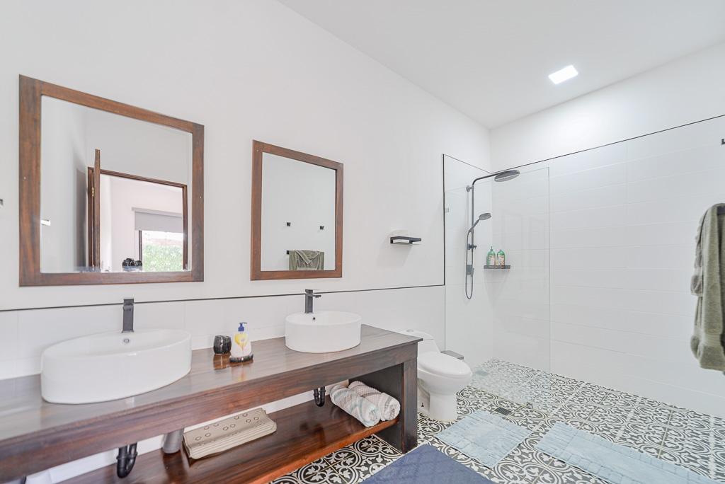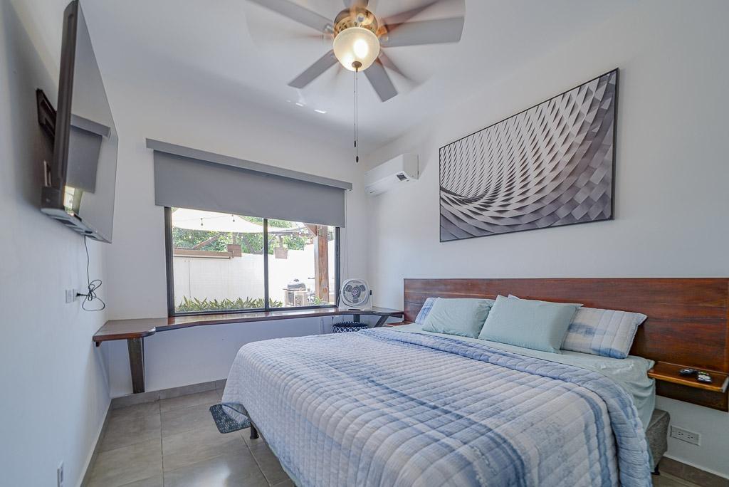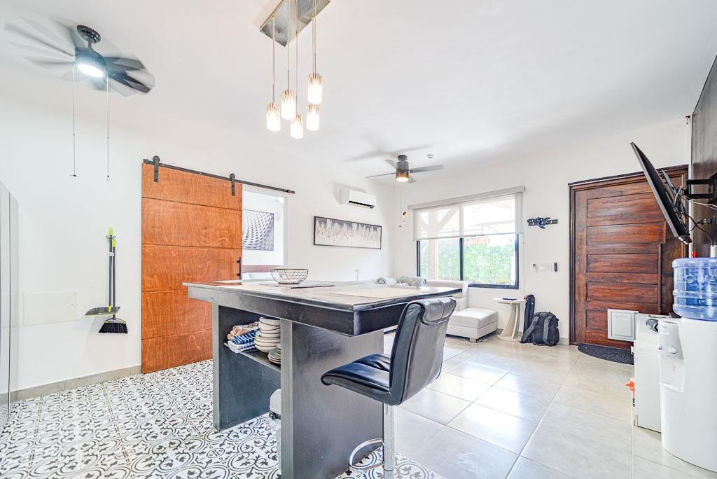 Esta casa adosada de 2 dormitorios y 2 baños, lista para entrar a vivir, en Pedasí, ofrece la combinación perfecta de comodidad, privacidad y potencial de alquiler, a solo minutos del centro y de la playa. Con elegantes acabados modernos, diseño abierto y un diseño inteligente, la propiedad es ideal como residencia permanente, casa de vacaciones o como Airbnb para generar ingresos. La sala de estar principal cuenta con una cocina abierta y un comedor con elegantes gabinetes negros, estantes flotantes y pisos de baldosas estampadas. El patio trasero es un verdadero punto culminante, con una terraza a la sombra, acogedoras zonas de estar, jardines tropicales y una piscina privada, perfecta para relajarse después de un día de playa. Ambos dormitorios están equipados con aire acondicionado, modernos ventiladores de techo y espacio de almacenamiento integrado. El dormitorio principal tiene vista al jardín y fácil acceso a la piscina. Las características adicionales incluyen lavadora/secadora, iluminación de bajo consumo y una plaza de aparcamiento. Esta casa está completamente cercada para mayor privacidad y seguridad, y se encuentra en una tranquila zona residencial, a poca distancia a pie o en bicicleta de los restaurantes, tiendas y supermercados de Pedasí. Lista para ocupar o alquilar de inmediato. Contáctenos para programar una visita.