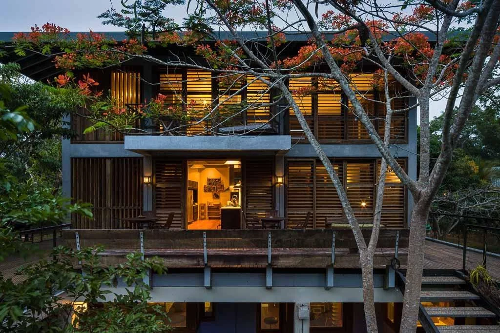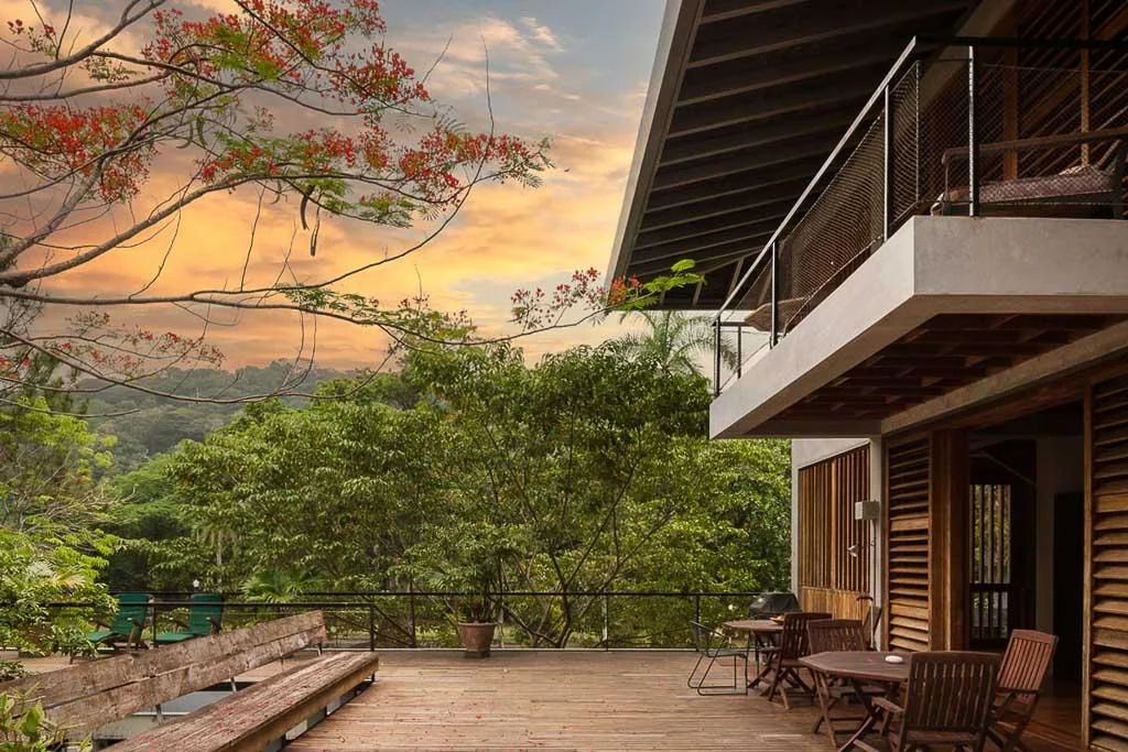 Experimente la belleza de la selva tropical panameña en esta casa única con piscina privada en Gamboa. Ubicada en el límite del Parque Nacional Soberanía, esta casa de tres pisos combina un diseño moderno con la naturaleza que la rodea. Gamboa es un pueblo seguro y tranquilo, y es el punto de entrada a Pipeline Road, uno de los mejores sitios de observación de aves del mundo. La casa está diseñada para una vida sostenible, con paredes de lamas de teca de plantación y amplios aleros que mejoran la ventilación y mantienen la casa naturalmente fresca. El segundo piso alberga la suite principal con balcón que ofrece vistas al Cerro Pelado y al Canal de Panamá a través de las copas de los árboles. El espacioso primer piso cuenta con una moderna cocina de concepto abierto, encimeras de mármol y un techo de 7,6 metros que conecta con una luminosa sala de estar y comedor. Dos amplias terrazas ofrecen una perfecta integración entre el interior y el exterior, una de ellas con vistas al patio y la piscina, con asientos empotrados, una barbacoa de gas y una caseta de ducha de estilo japonés. La planta baja cuenta con aire acondicionado y ofrece tres habitaciones individuales, un salón con tumbonas y mesa de billar, y un baño amplio. Ideal para relajarse después de un día explorando la selva tropical o haciendo kayak en el lago Gatún. Gamboa ofrece una escapada única y la oportunidad de disfrutar de la vida silvestre circundante. ¡Avistará monos, perezosos y otros habitantes de la selva! Esta casa es un refugio inolvidable para los amantes de la naturaleza y los aventureros.