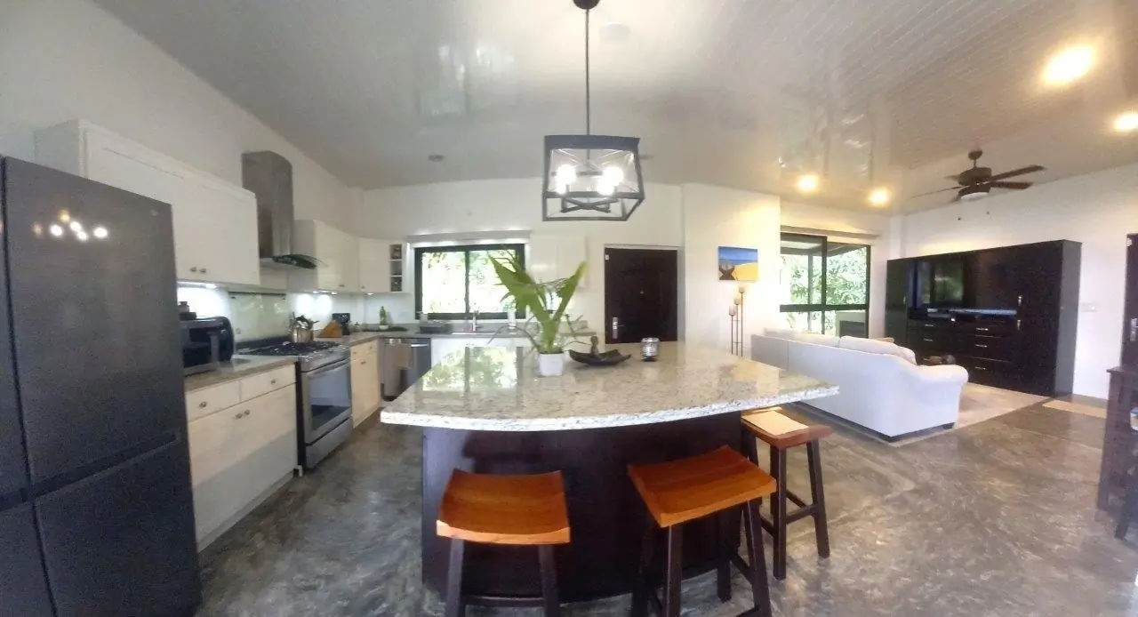 San Carlos View Villa está construida con altos estándares. Además, el precio de lista es varios miles por debajo del valor de reemplazo. Además, la vista es simplemente increíble, difícil de encontrar desde una casa que está lista para mudarse con la comodidad que ofrece esta villa. Le encantará el amanecer desde esta villa con vistas a San Carlos. Además, el diseño abierto lo hace muy acogedor. Te encantarán las maravillosas vistas desde su terraza, así como desde el área de la piscina y muchos otros lugares dentro de la propiedad. Muy importante, le encantará una terraza con vistas al bosque y al riachuelo, ideal para tomar el café de la mañana y desayunar escuchando el agua y las aves Separada de la casa y totalmente independiente, la propiedad incluye una casita de huéspedes de un dormitorio rodeada de hermosos árboles. Además, esta casa de huéspedes contará con una terraza espaciosa que está en planificación y pronto se añadirá. Otras características: – Finalizada en 2023 – Cama queen desplegable (Murphy Bed) vista al mar – Amplio depósito – Preciosos jardines – Tanque de almacenamiento de agua – Luces de piscina de diferentes colores – Cámaras de seguridad – Muebles de alta calidad – Totalmente cercada – Sendero natural dentro de la propiedad – Puertas del portón a control remoto – Sobres de granito en cocina y baño – Generador de energía – Sistema de riego por goteo -Fundación Antisísmica Acerca de La Laguna de San Carlos Esta hermosa villa se encuentra en la carretera a La Laguna de San Carlos, a solo 20 minutos en auto (14 kilómetros o 8,7 millas) de playa Coronado. A solo unos minutos más al norte, se encuentra La Laguna, una comunidad en la montaña llena de naturaleza. Además, la elevación es de poco más de 500 metros sobre el nivel del mar; El clima es fresco durante todo el año. Muy importante, hay internet por cable, lo que garantiza una buena conexión. La Laguna de San Carlos es para los amantes de la naturaleza que también disfrutan de la brisa fresca y la tranquilidad de las montañas. Además, la carretera de La Laguna conecta con El Valle de Antón. En Coronado, a poca distancia en auto, encontrará supermercados abiertos las 24 horas, clínicas, bancos, ferreterías, salones de belleza, veterinarios y tiendas de mascotas. Además, un campo de golf de 18 hoyos y un par de otros cerca. Además, una escuela internacional; otros dos en las inmediaciones. También, un hospital a tan solo 15 minutos en auto en San Carlos.