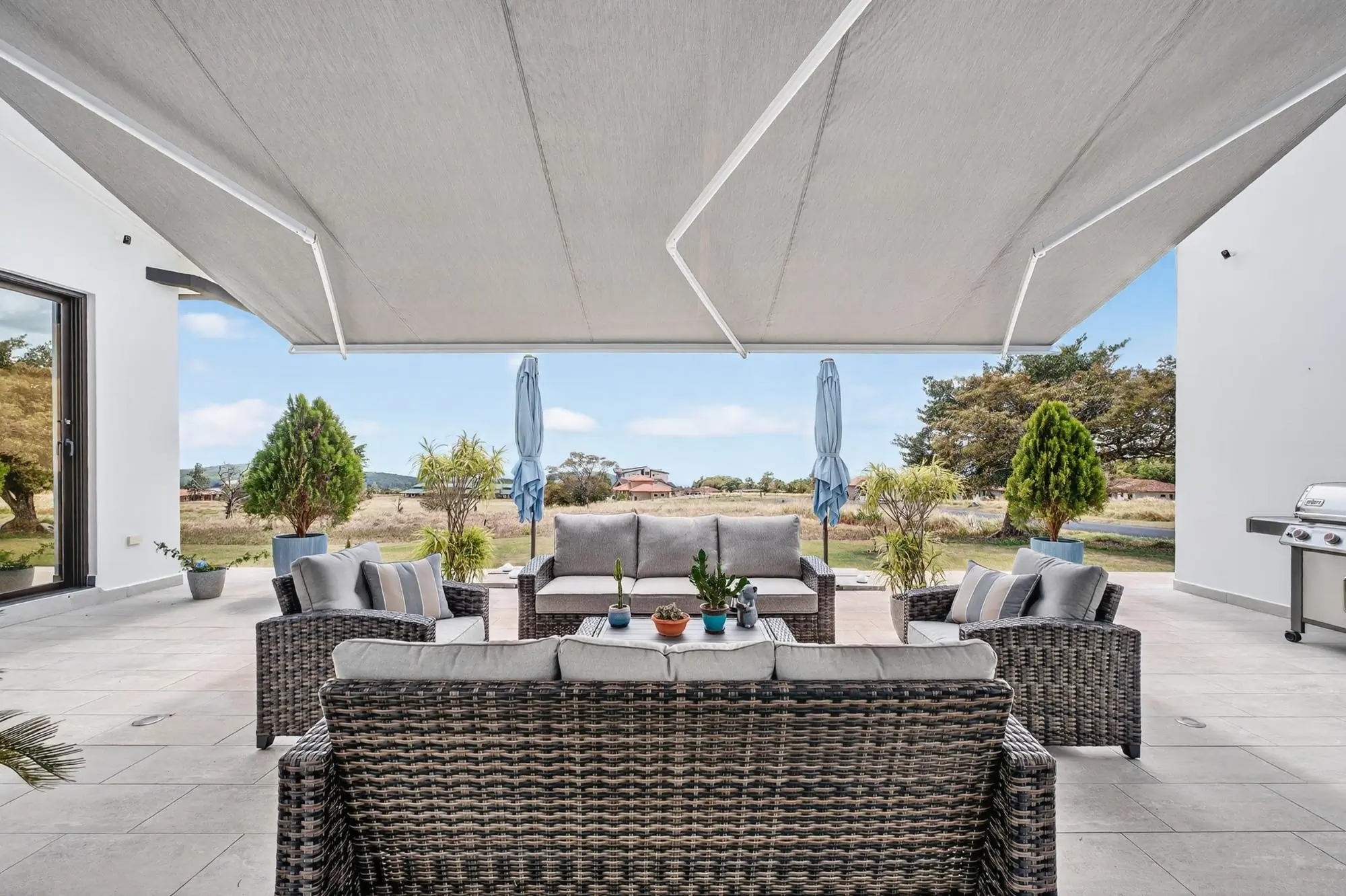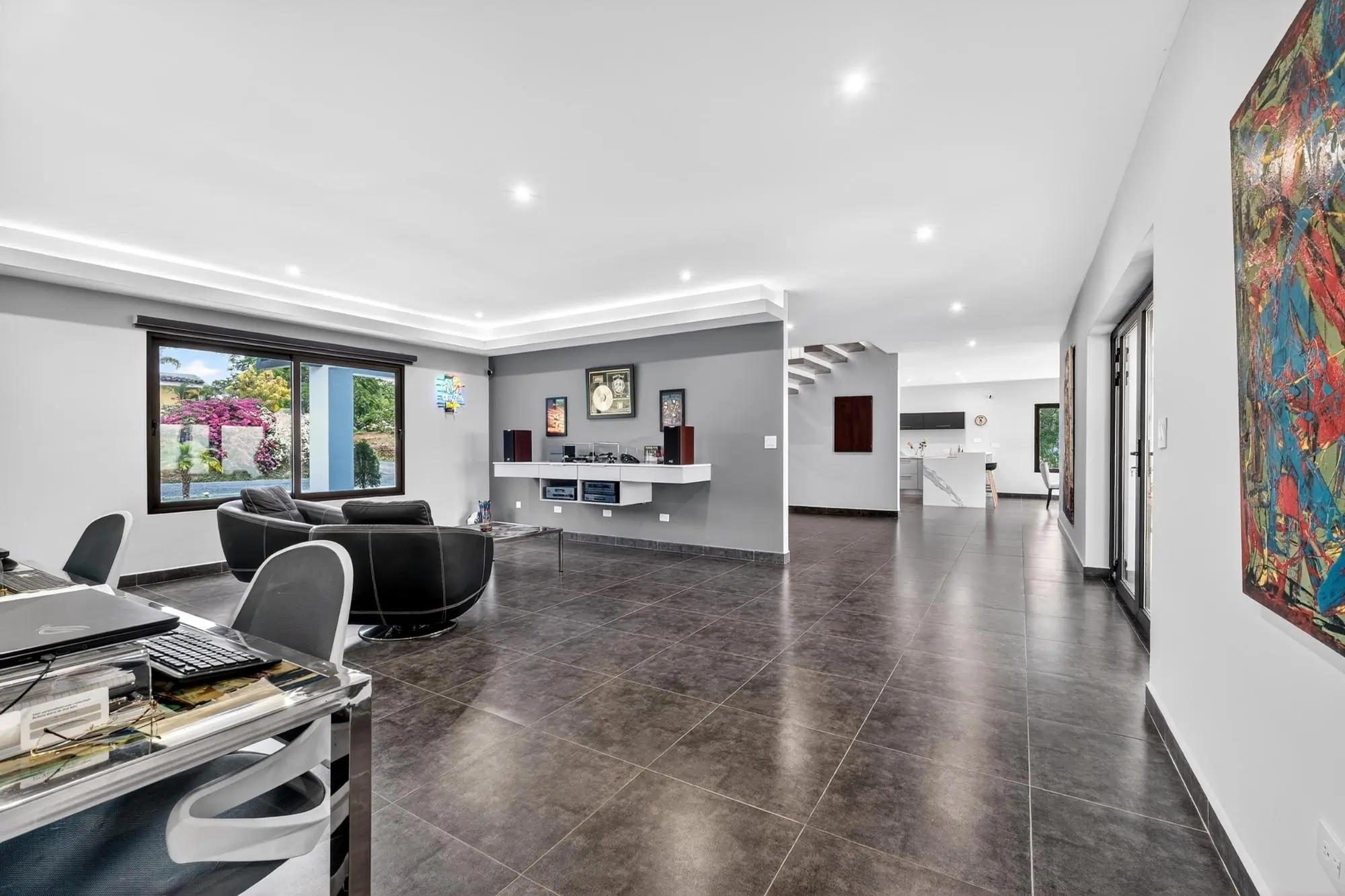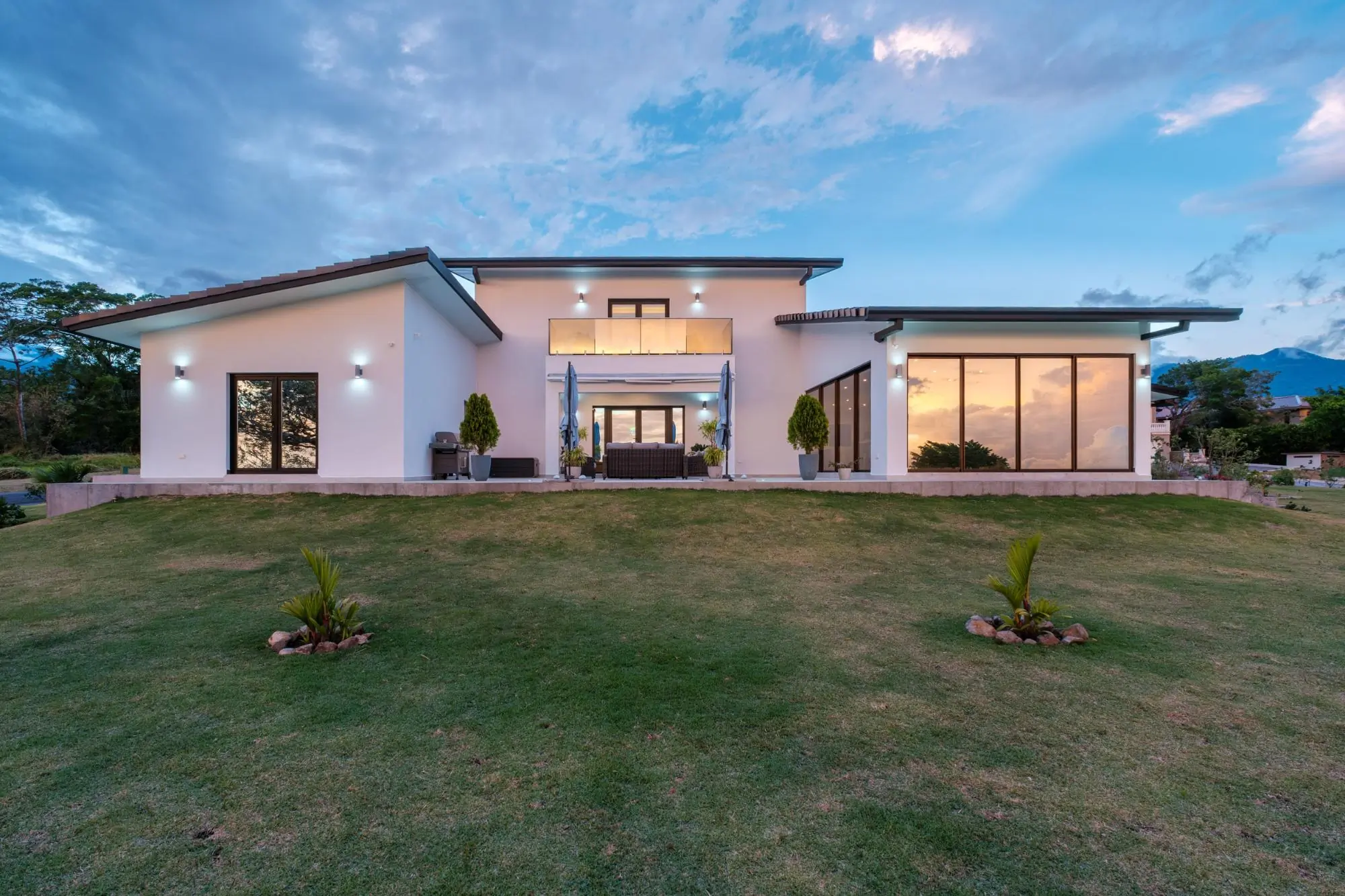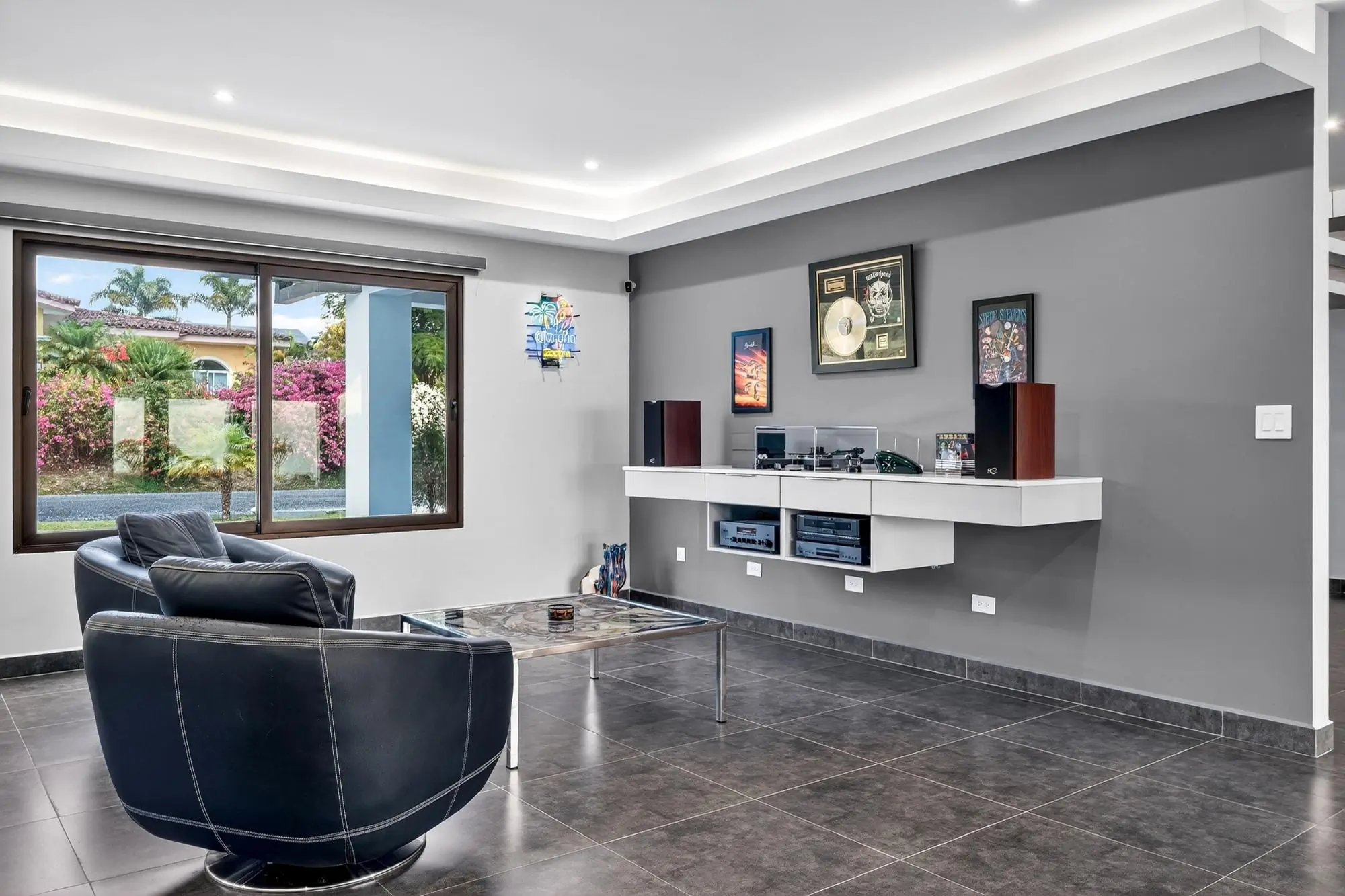 Impresionante residencia contemporánea ubicada en la comunidad privada de Boquete Country Club, con hermosas vistas a las montañas. Esta casa, cuidadosamente diseñada, cuenta con una impresionante escalera flotante y amplias salas de estar de concepto abierto, llenas de luz natural. La moderna cocina ofrece elegantes gabinetes, electrodomésticos de alta calidad y una gran isla con cascada, ideal para el entretenimiento. La planta principal incluye dos dormitorios de invitados, una sala de música o sala de entretenimiento, y una amplia lavandería y área de servicio. Toda la planta superior está dedicada a la lujosa suite principal, que ofrece un refugio privado con sala de estar, acceso a la terraza, un baño estilo spa con bañera profunda y ducha a ras de suelo, y un amplio vestidor con gabinetes a medida. Otras características destacadas incluyen puertas de madera noble a medida, tejas importadas de Portugal y un garaje para 1.5 autos. Ubicada a solo minutos del centro de Boquete, con seguridad las 24 horas.
