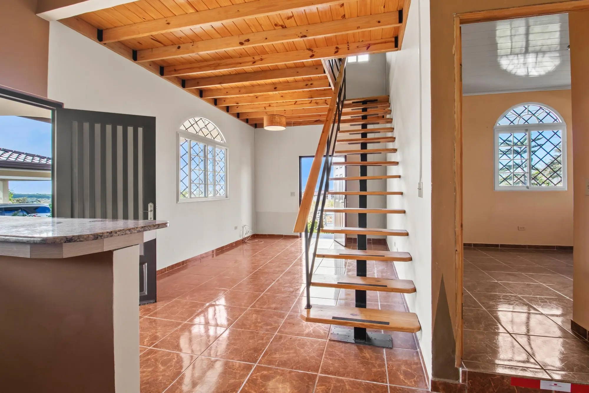 Ubicada en una tranquila y consolidada zona residencial de Alto Boquete, esta casa de diseño impecable ofrece comodidad, funcionalidad y espacios versátiles en un terreno de 530 m², con aproximadamente 187 m² de construcción. La casa cuenta con tres dormitorios y dos baños completos. El dormitorio principal incluye baño privado y vestidor, mientras que los otros dos dormitorios comparten un baño completo, lo que proporciona una distribución práctica y equilibrada, ideal para familias o para recibir invitados. Una característica destacada de la casa es el loft, al que se accede por una escalera de madera maciza. Este versátil espacio puede utilizarse como oficina en casa, zona de yoga o meditación, estudio creativo, loft de lectura o como cuarto dormitorio opcional, según las necesidades del comprador. El interior destaca por sus techos altos, detalles de madera vista y una distribución abierta y espaciosa, creando un ambiente cálido y acogedor en las áreas principales. La cocina abierta está equipada con encimeras de granito, amplios gabinetes e incluye refrigerador y estufa, que se conectan a la perfección con la sala de estar y el comedor. Características adicionales: acceso a internet de fibra óptica, ideal para teletrabajo o streaming, sistema de agua caliente, área de lavandería funcional, porche cubierto y espacio exterior, patio totalmente utilizable con espacio para jardinería o mesas al aire libre. La propiedad se encuentra en Alto Boquete, una atractiva zona residencial conocida por su tranquilidad, a la vez que se encuentra convenientemente cerca del pueblo de Boquete, escuelas, supermercados y servicios esenciales. Esta casa es ideal para compradores que buscan un estilo de vida tranquilo, conectividad moderna, espacios interiores adaptables y una propiedad bien ubicada.