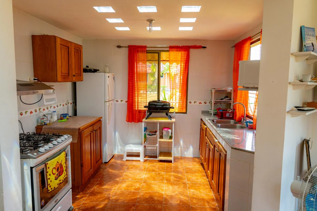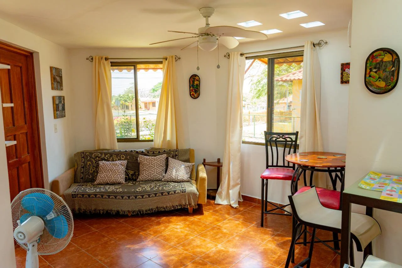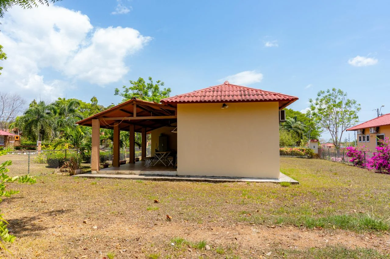 Esta encantadora casa está vallada. Cocina luminosa totalmente equipada, dos terrazas, una delantera y otra trasera. Dos hamacas en la terraza trasera. El dormitorio principal también funciona como estudio ya que tiene salida independiente de la casa. Tiene un fregadero empotrado en una esquina y espacio para una cocina. Hay un área social y una piscina dentro de la comunidad. -Antón y Río Hato ofrece: uno de los principales supermercados. Pescadería. Restaurantes. centros comerciales -Ubicado aproximadamente a 2.5 horas de la ciudad de Panamá ya unos 6 minutos de la Interamericana (carretera) -La playa (Farallón) está a solo unos 25 minutos de allí. -Cerca de gasolineras, farmacias y pequeños supermercados también -A 20 minutos de Penonomé en auto
