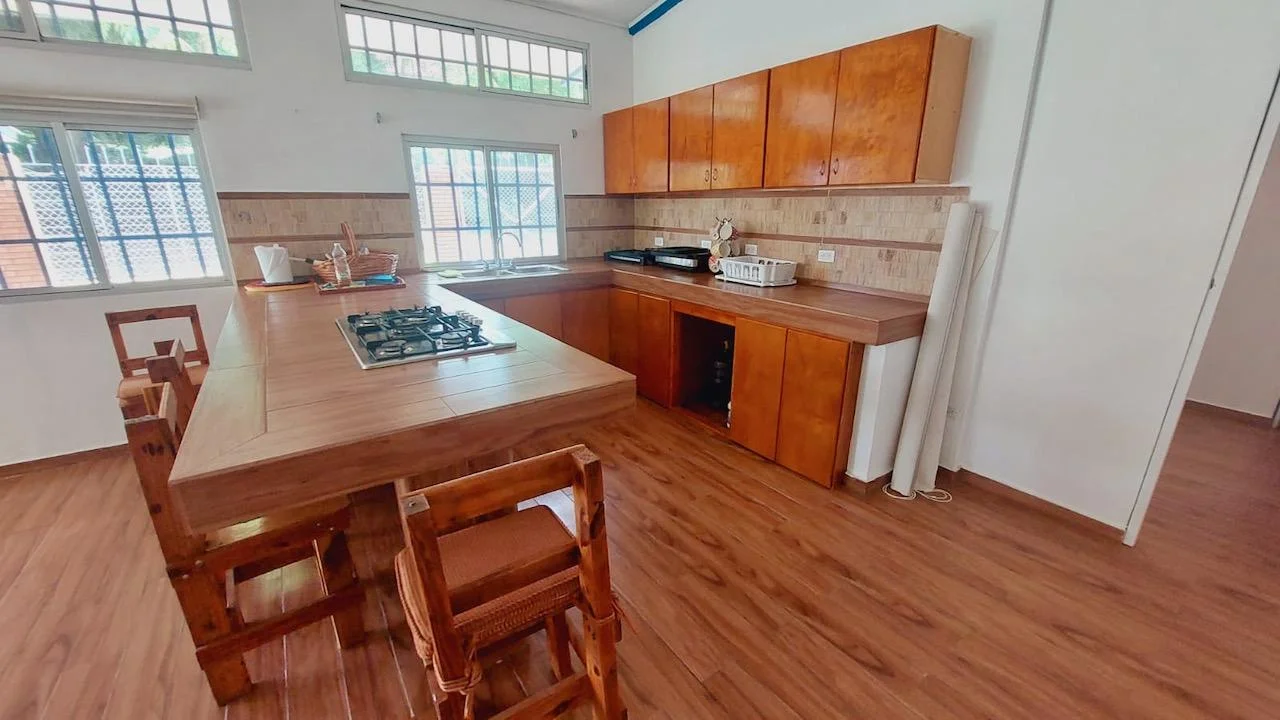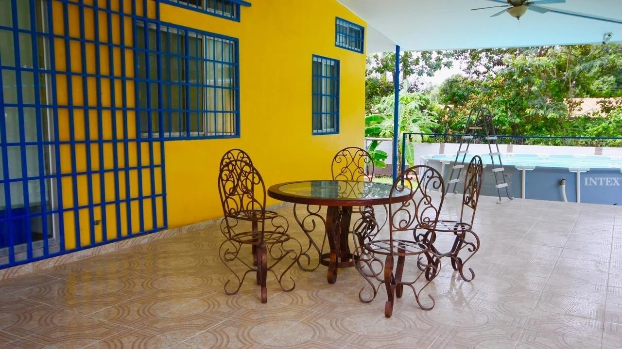 Esta acogedora casa de campo tiene 4 recámaras y dos baños, una cocina con gabinetes y mostradores de madera hechos a medida, una amplia sala y comedor de concepto abierto. Esta casa asequible tiene vistas a una gran terraza. Tiene un patio trasero bastante grande, donde se puede disfrutar del enorme árbol de mango y una pequeña habitación adicional para el personal que se puede convertir en casa de huéspedes; con dos recámaras pequeñas y un baño. La casa principal tiene ventiladores de techo en todas partes y aire acondicionado en cada una de las recámaras, también hay cuarto de lavado y depósito. Su excelente ubicación hace que la casa sea ideal para una familia, ya que está muy cerca del Liceo Harmodio Arias Madrid de Chame y en la misma calle del popular Hotel Canadiense, y a pasos de la carretera Panamericana. Esta acogedora casa de campo está a menos de 10 minutos en auto de Coronado, donde encontrará todas sus necesidades…