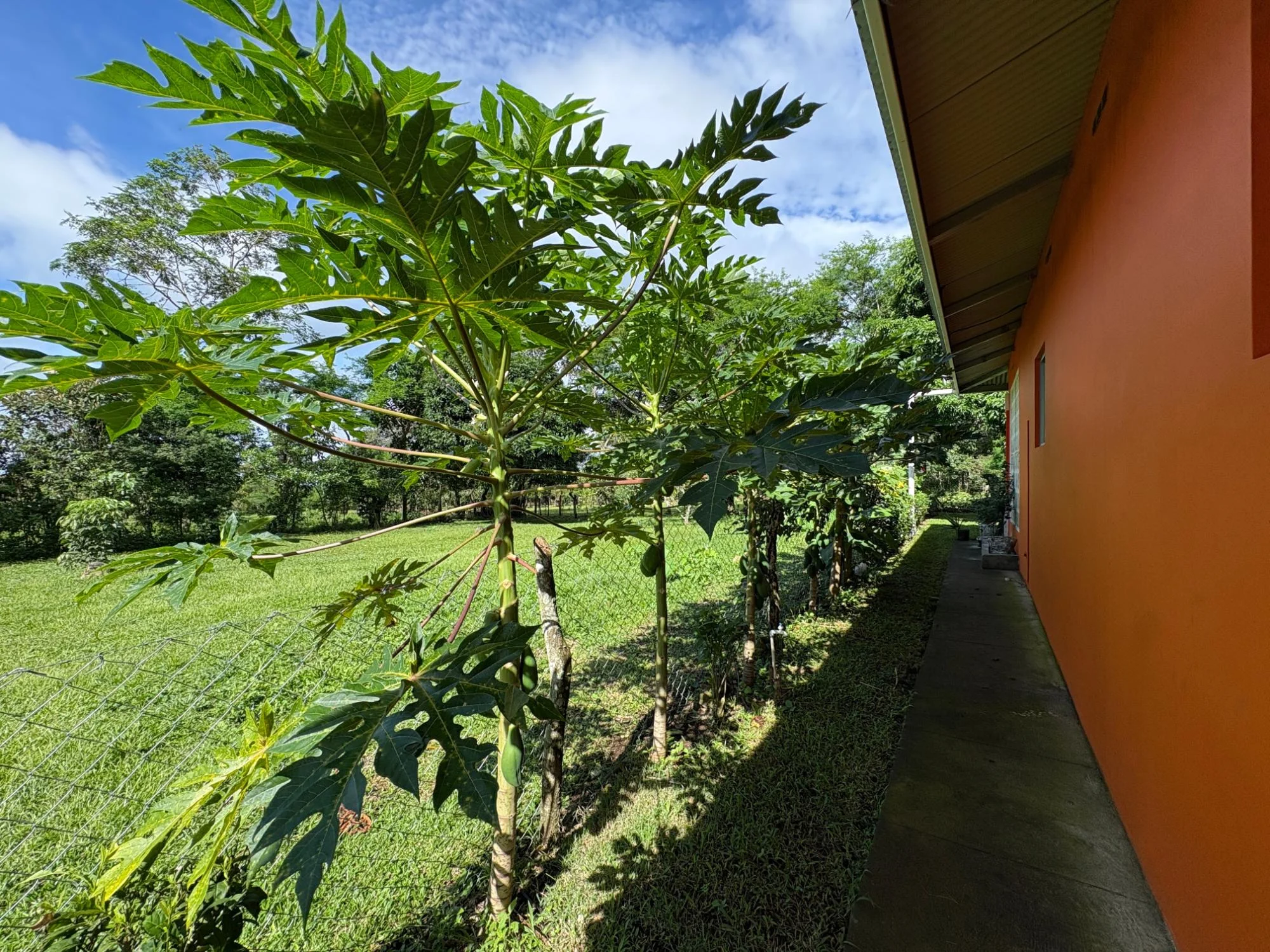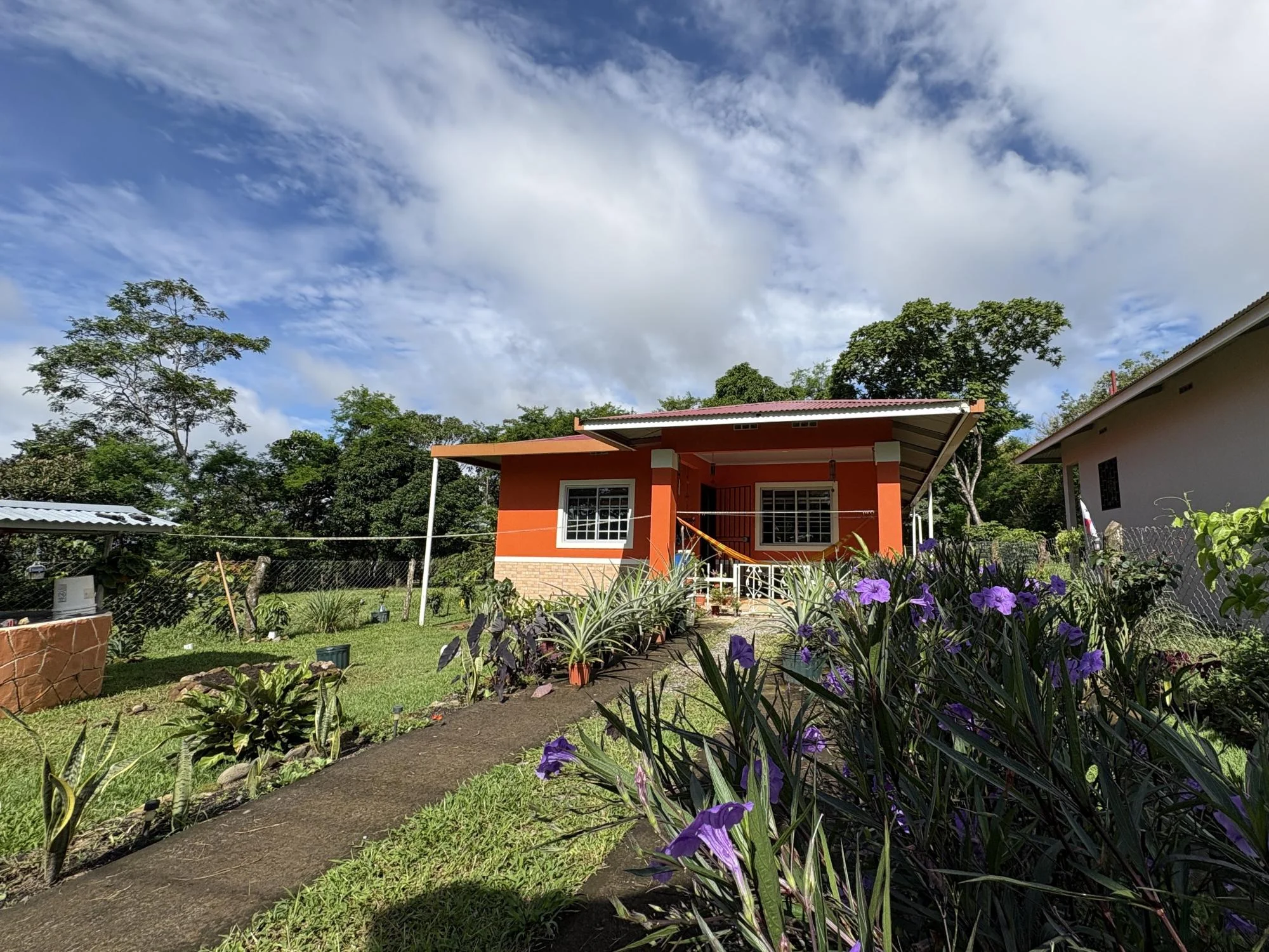 Esta casa de reciente construcción (2 años de antigüedad) se encuentra en un lote plano de 500 m² en Lotificación El Carmen, Potrerillos Abajo, a unos 600 metros de la carretera pavimentada, aproximadamente a 30 minutos del centro de Boquete y a 25 minutos de David Centro. A 730 metros sobre el nivel del mar, la propiedad disfruta de un clima más fresco y primaveral típico de las tierras altas medias de Chiriquí, pero se mantiene cerca de los servicios cotidianos y una comunidad local pacífica. Distribución de la casa: 113,25 m² bajo techo La puerta principal se abre a un único espacio de sala, comedor y cocina de concepto abierto, fácil de amueblar y mantener iluminado. Una sala familiar separada en la parte trasera cuenta con ventanas de piso a techo que enmarcan el jardín trasero. La casa tiene dos dormitorios y dos baños, dispuestos para la privacidad en el lado opuesto de la sala de estar principal.