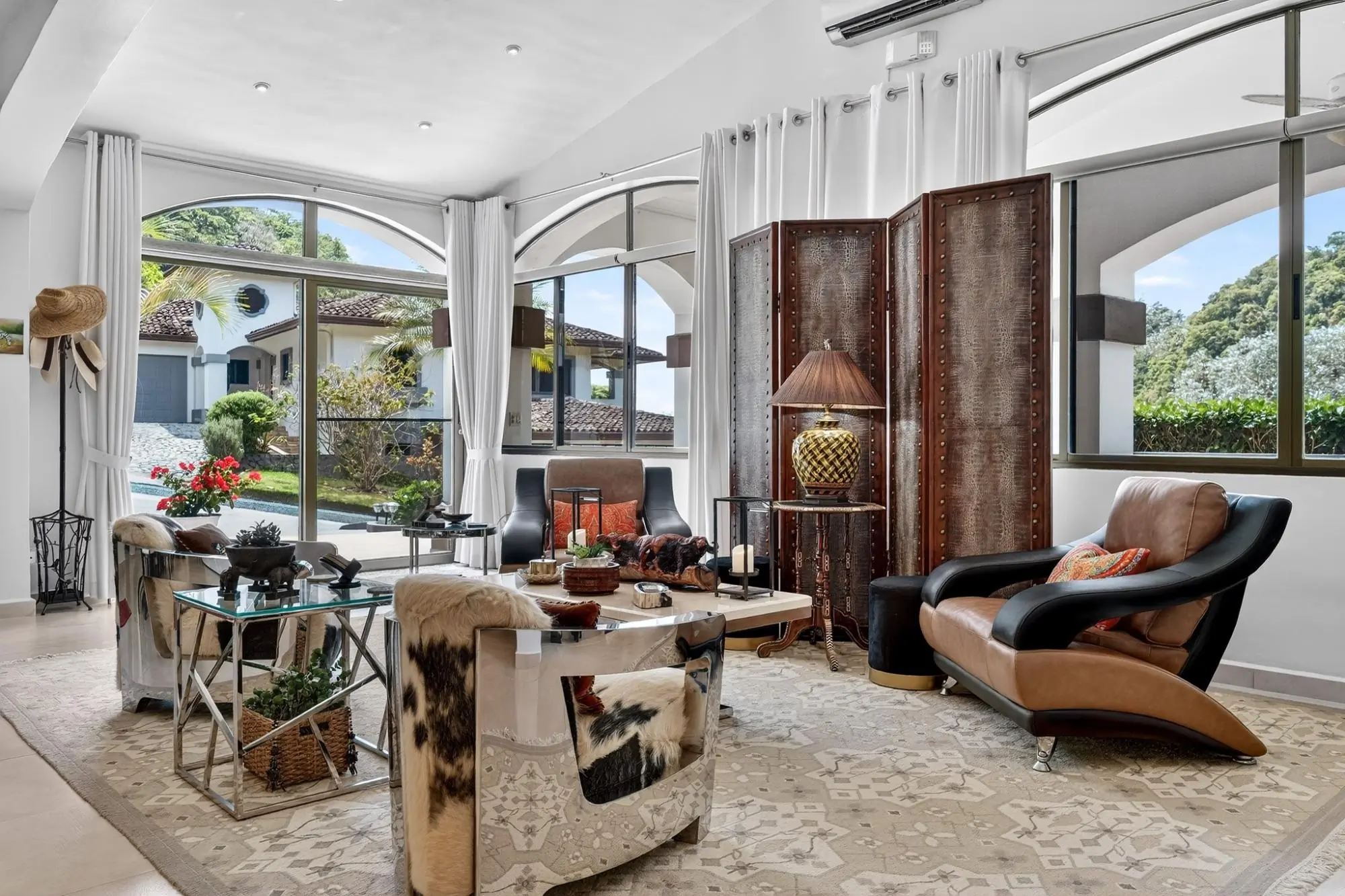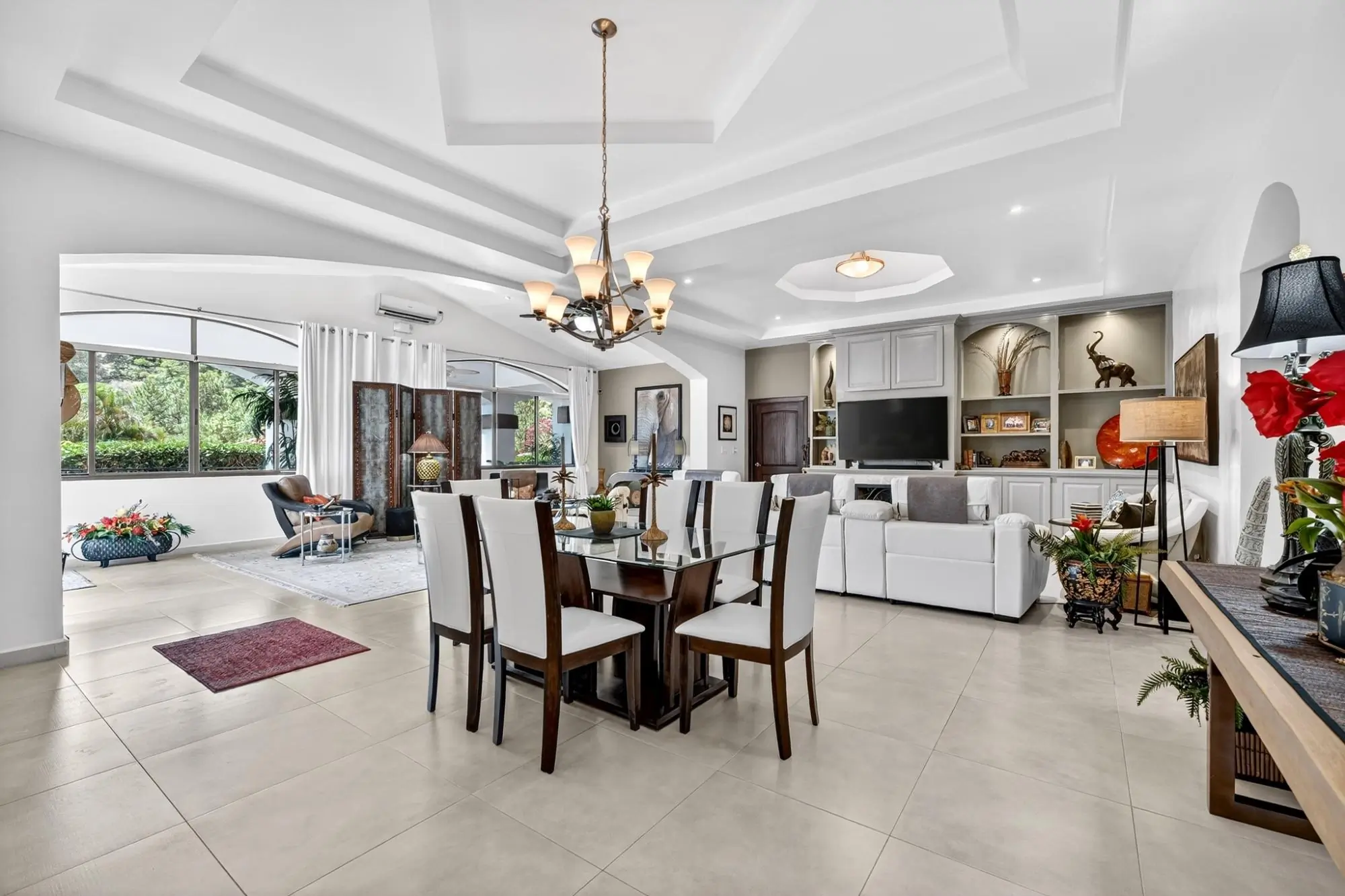 Casa impecablemente mantenida ubicada en la prestigiosa comunidad privada de Valle Escondido en Boquete. Esta elegante residencia ofrece 3 dormitorios, 2 baños y medio, garaje para dos autos y una espaciosa sala de estar de concepto abierto diseñada para la comodidad y el entretenimiento. La amplia sala principal cuenta con techos artesonados, iluminación empotrada, arcos arquitectónicos y grandes ventanales que inundan la casa de luz natural. La cocina gourmet luce elegantes gabinetes de madera a medida, encimeras de granito, electrodomésticos de acero inoxidable y una gran isla central con asientos y amplio espacio de almacenamiento. La suite principal ofrece techos abovedados, amplios armarios empotrados y baño privado. Otras características incluyen una lavandería con gabinetes y lavabo, un aseo de invitados y una terraza cubierta, perfecta para disfrutar del clima primaveral de Boquete. La propiedad, con hermosos jardines, se encuentra junto a una exuberante ladera, lo que brinda privacidad y un tranquilo entorno natural. Ubicada a minutos del centro de Boquete y de las comodidades de Valle Escondido, como golf, spa y restaurantes.