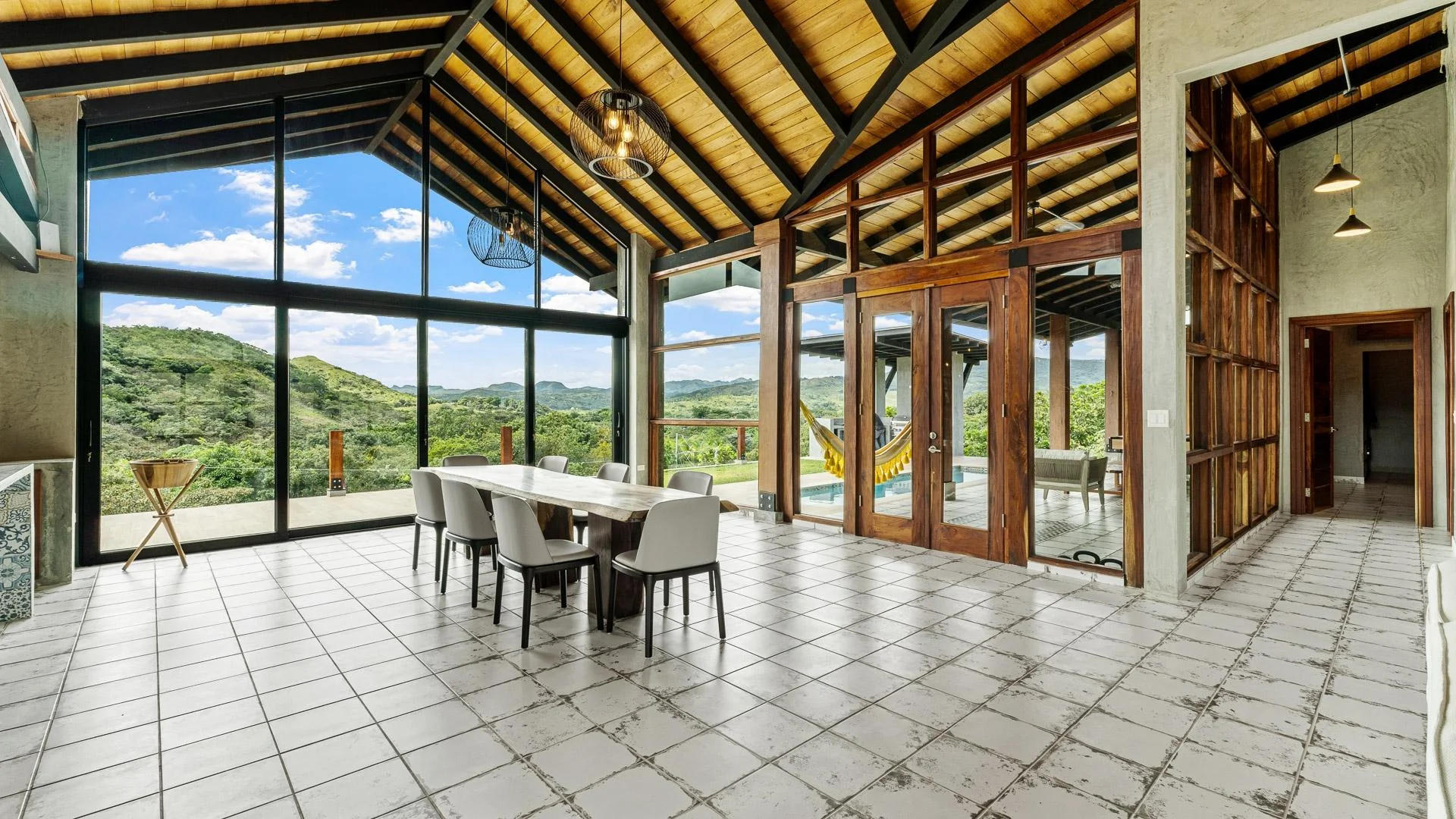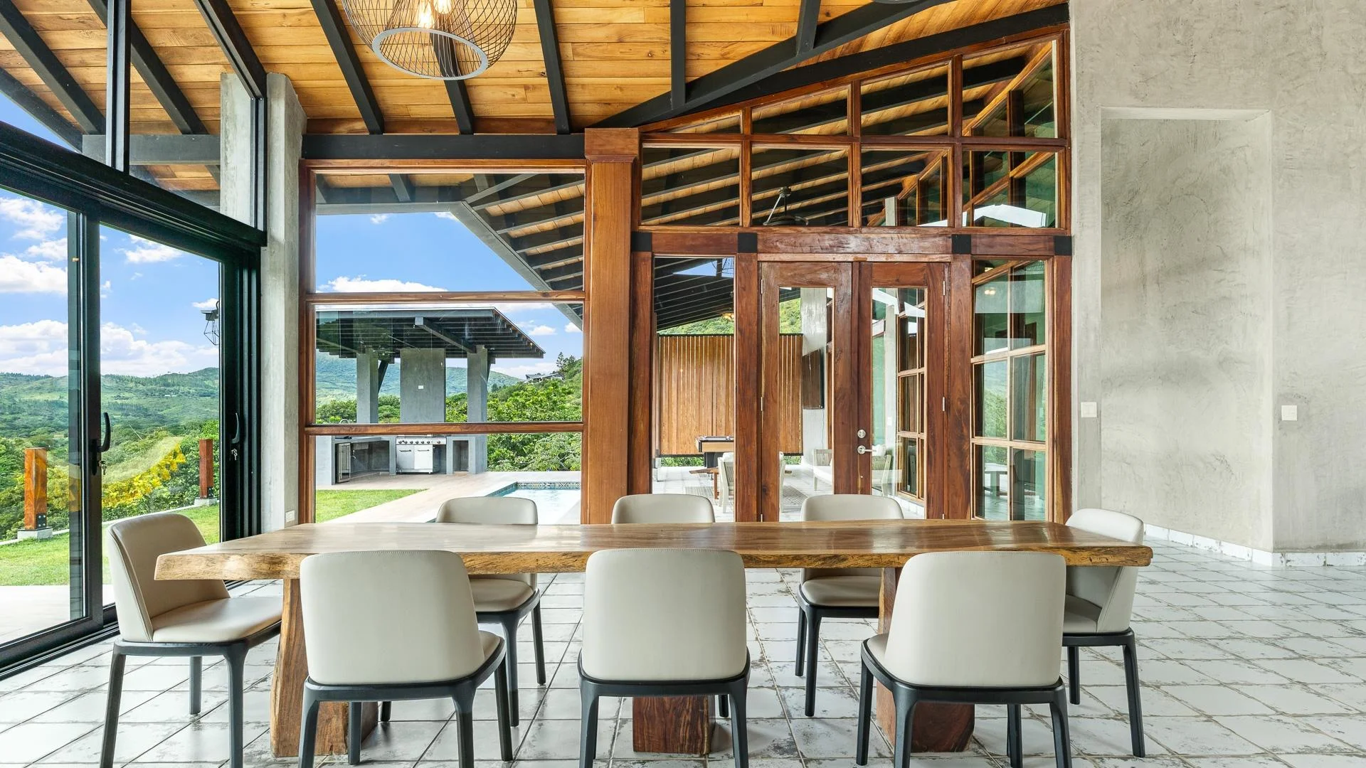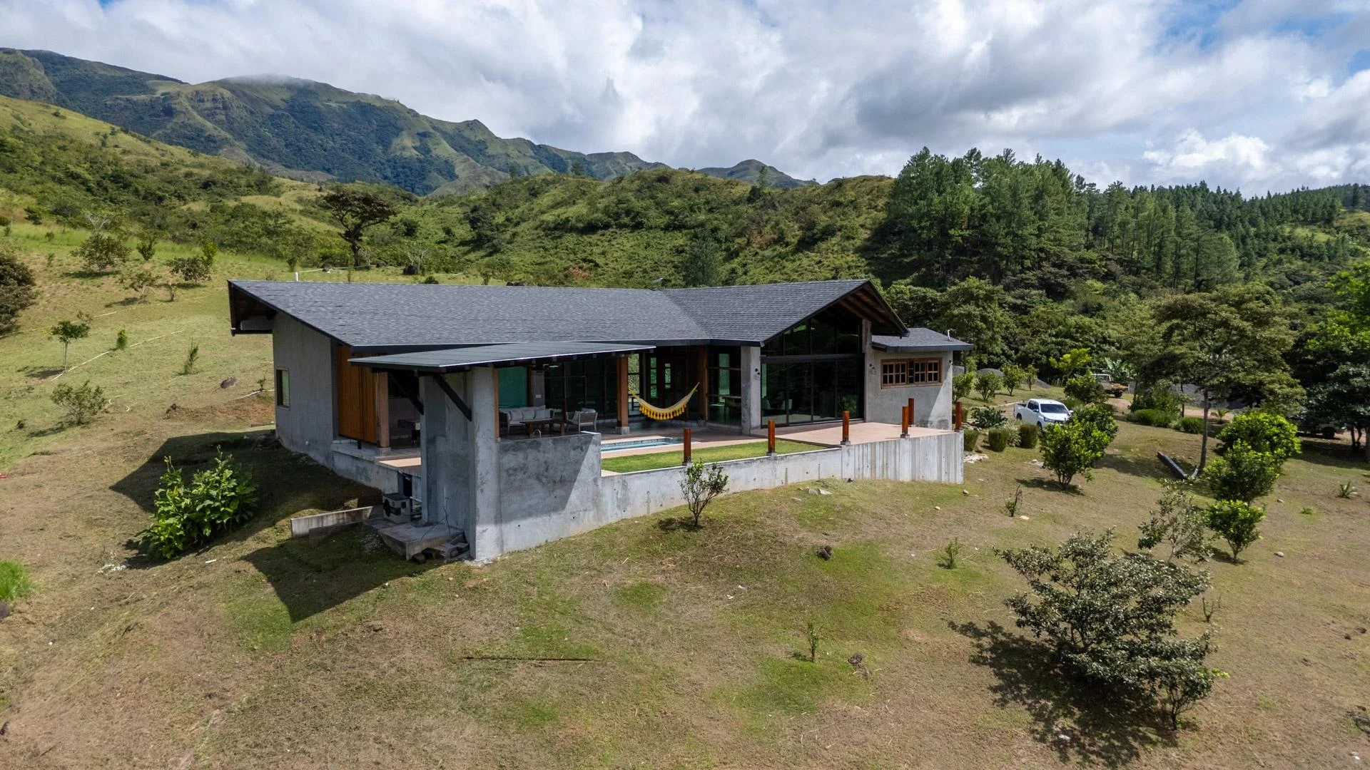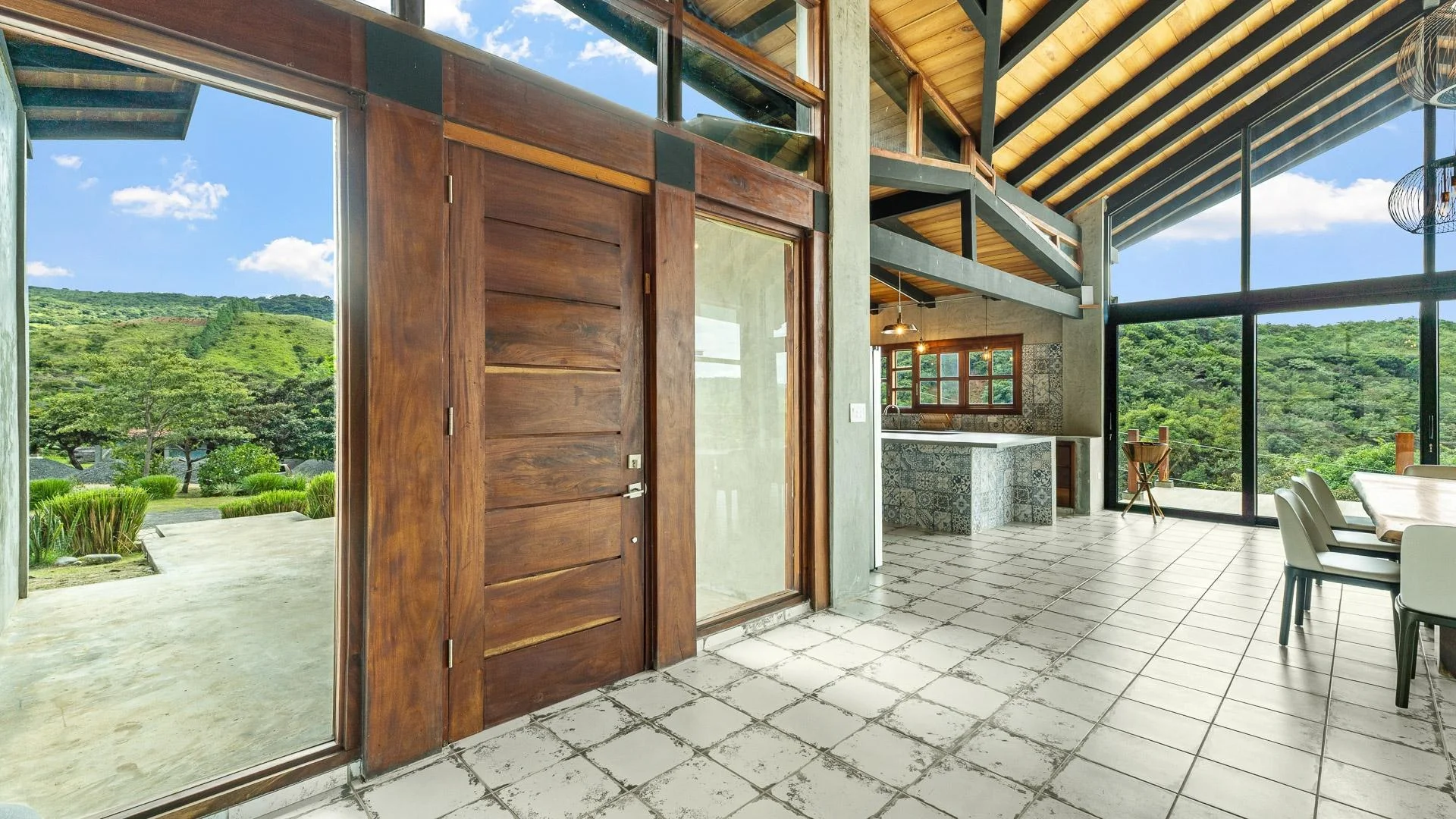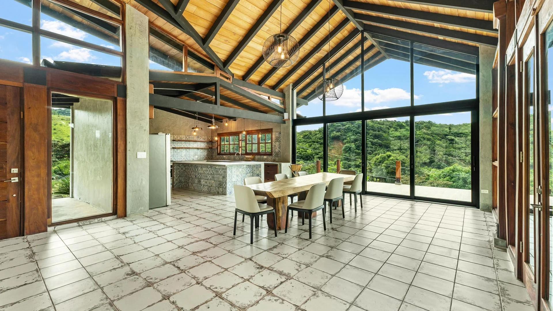 Ya está a la venta en Santa Fe esta moderna casa de montaña ubicada dentro de Namuiki, el primer y único desarrollo residencial de su tipo en la zona. Esta comunidad se está construyendo con carreteras en buen estado, infraestructura, administración en el lugar y servicios orientados al bienestar, como spa, senderos para caminatas, saunas, piscina de agua fría, sala de yoga e incluso una cancha de pádel. Está diseñada para brindar una experiencia de vida de alta calidad en una zona de Panamá que aún se siente natural, tranquila y espaciosa. La casa se encuentra en un lote de aproximadamente 6397 m² (el tamaño exacto se anunciará próximamente) con una pendiente suave y constante. Casi todo el terreno es utilizable, lo que le da espacio para plantar, cultivar un huerto e incluso construir estructuras adicionales sobre la casa existente. El área plana donde se encuentra la casa se eligió intencionalmente para capturar vistas orientadas al oeste que ofrecen hermosos atardeceres sobre las montañas circundantes. En el interior, la casa tiene una estética cálida pero minimalista. Paredes de microcemento, maderas exóticas locales y acabados cuidadosamente elaborados definen los interiores. Los techos son altos, la luz natural es abundante y el diseño general combina la comodidad moderna con un aire montañoso y natural. La casa se terminó de construir recientemente y no ha sido habitada, y los muebles se acaban de comprar, por lo que todo se siente fresco y nuevo. La cocina y la sala de estar de concepto abierto crean una conexión fluida con el exterior. La cocina incluye gabinetes de madera noble a medida, una isla de gran tamaño revestida con azulejos decorativos, estanterías abiertas y grandes ventanales que enmarcan las vistas a la montaña.