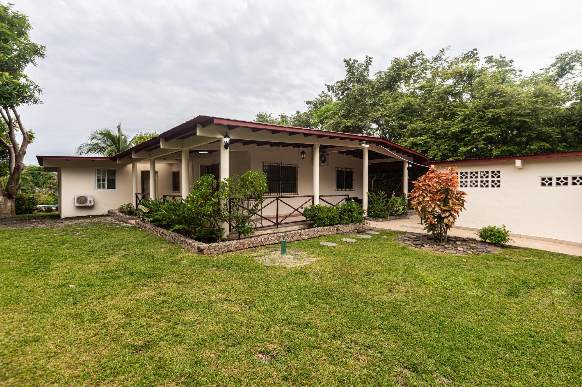 Propiedad de 300 m² con piscina y amplias comodidades. Cuenta con terraza, gazebo con techo de paja, trastero, lavandería y estacionamiento techado para 2–3 autos. Está completamente cercada, incluye portón eléctrico, cerca interna para mascotas y pozo de agua. Tiene piscina de 58.5 m², árboles frutales, palmeras y jardines establecidos. La casa ofrece 3 recámaras con armarios de madera, aire acondicionado, cocina con gabinetes de madera, sala, comedor y baños con cerámica de piso a techo. Ubicada en Las Uvas, a 3.9 km de playas como Playa Grande, Los Panamá y Río Mar. La zona cuenta con minimercados, gasolineras, farmacias, clínicas, restaurantes y escuelas cercanas. Alquiler con opción a compra: $1,500/mes. Requisitos: primer mes, último mes y dos depósitos; comprobante de ingresos. Venta con pagos flexibles: $250,000 con 10% anual sobre saldo pendiente.