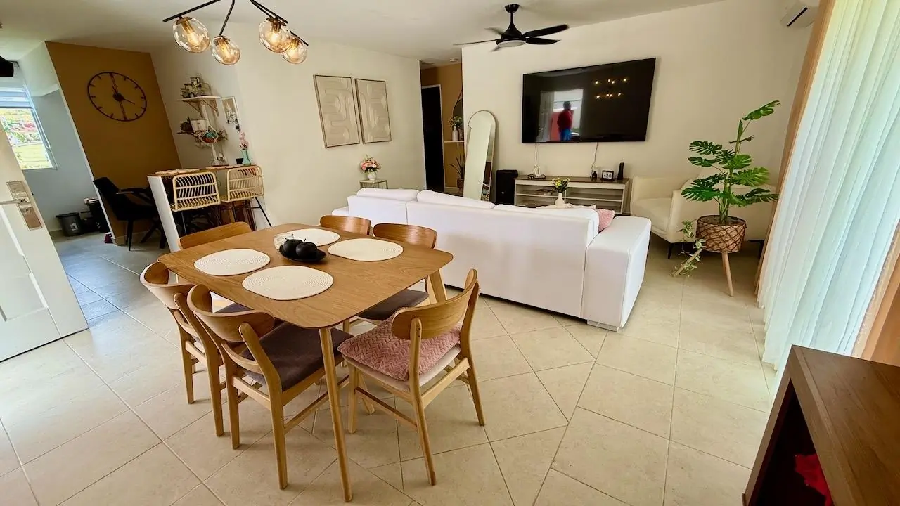 Bienvenido a la casa de sus sueños, situada en la tranquila comunidad cerrada de Brisas del Celaje, cerca del aeródromo de Chame. Esta acogedora residencia ofrece una combinación perfecta de comodidad y vida moderna, con una generosa superficie de 106 m² cuidadosamente diseñada en un terreno plano de 714.58 m². Entra en esta encantadora casa, donde descubrirás tres amplias habitaciones, incluida una suite principal con su propio baño completo. La luminosa y espaciosa sala-comedor cuenta con puertas corredizas que te invitan a imaginar una futura terraza trasera, ideal para reuniones al aire libre o momentos de relajación. La cocina, bien equipada, no solo ofrece funcionalidad, sino que también incorpora de forma inteligente una lavandería que puede ocultarse discretamente detrás de unas puertas. Mientras explora la propiedad, déjese cautivar por las impresionantes vistas de las montañas circundantes, que proporcionan un telón de fondo impresionante para su vida cotidiana. La comunidad en sí es una joya escondida, con un pintoresco lago en su centro y una hermosa zona social diseñada para el ocio y el esparcimiento. Disfrute de la refrescante piscina infinita, participe en partidos amistosos en las canchas de baloncesto y tenis, o deje que los más pequeños se diviertan en el parque infantil. Brisas del Celaje es más que un hogar; es una opción de estilo de vida que combina tranquilidad, belleza natural y un ambiente comunitario vibrante. No pierda la oportunidad de hacer suya esta exquisita residencia y experimentar todo lo que esta extraordinaria zona tiene para ofrecer.