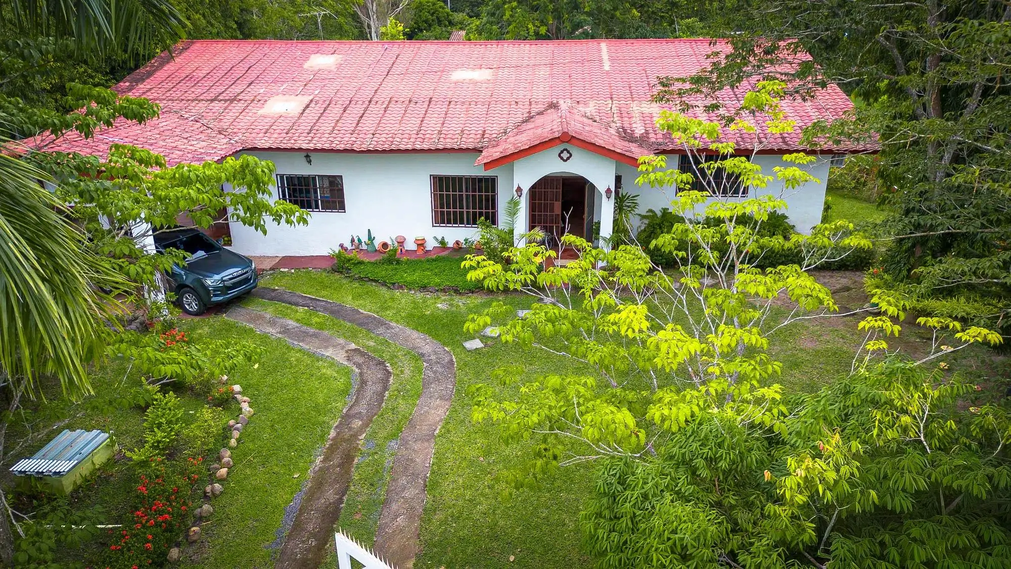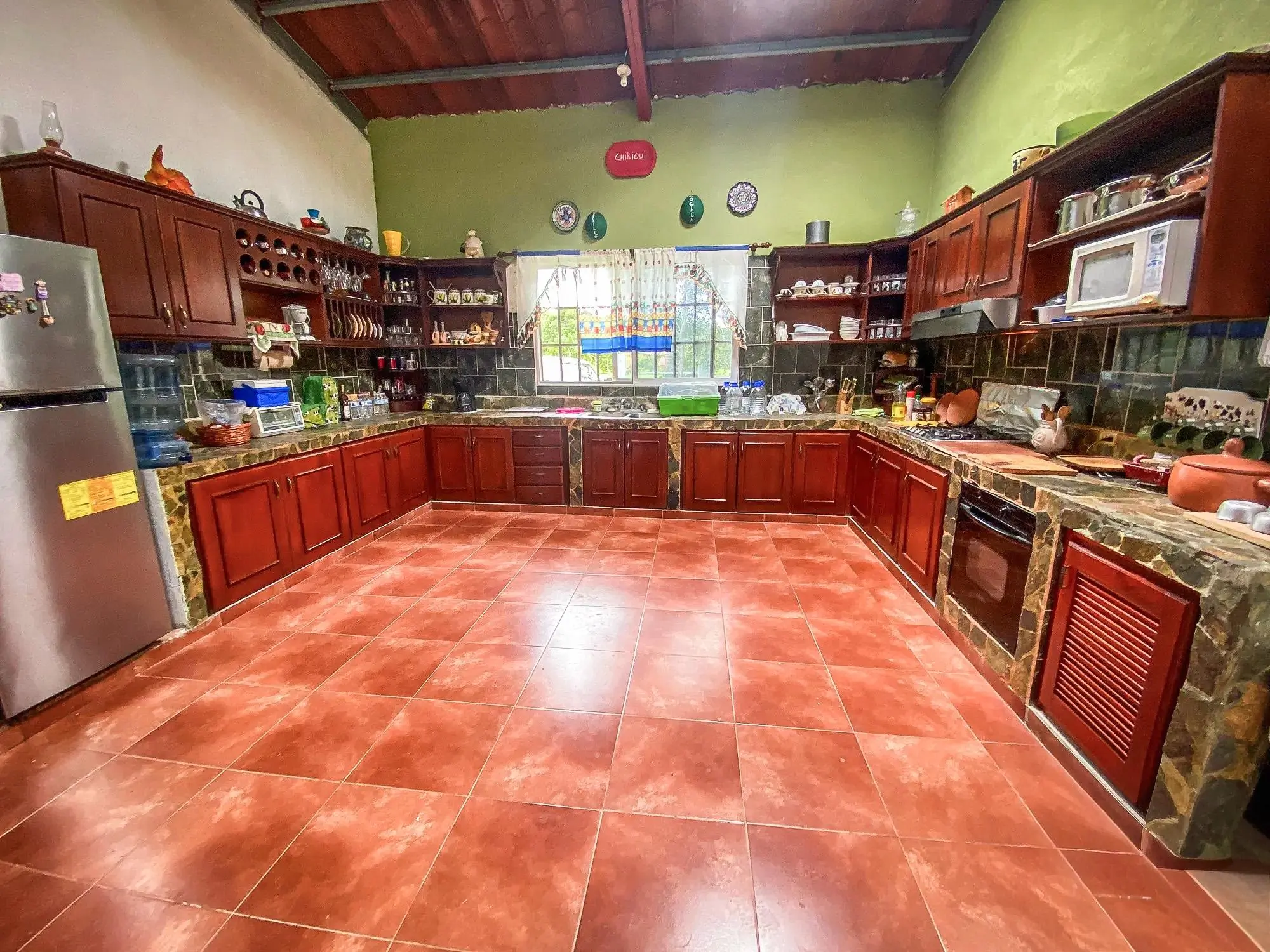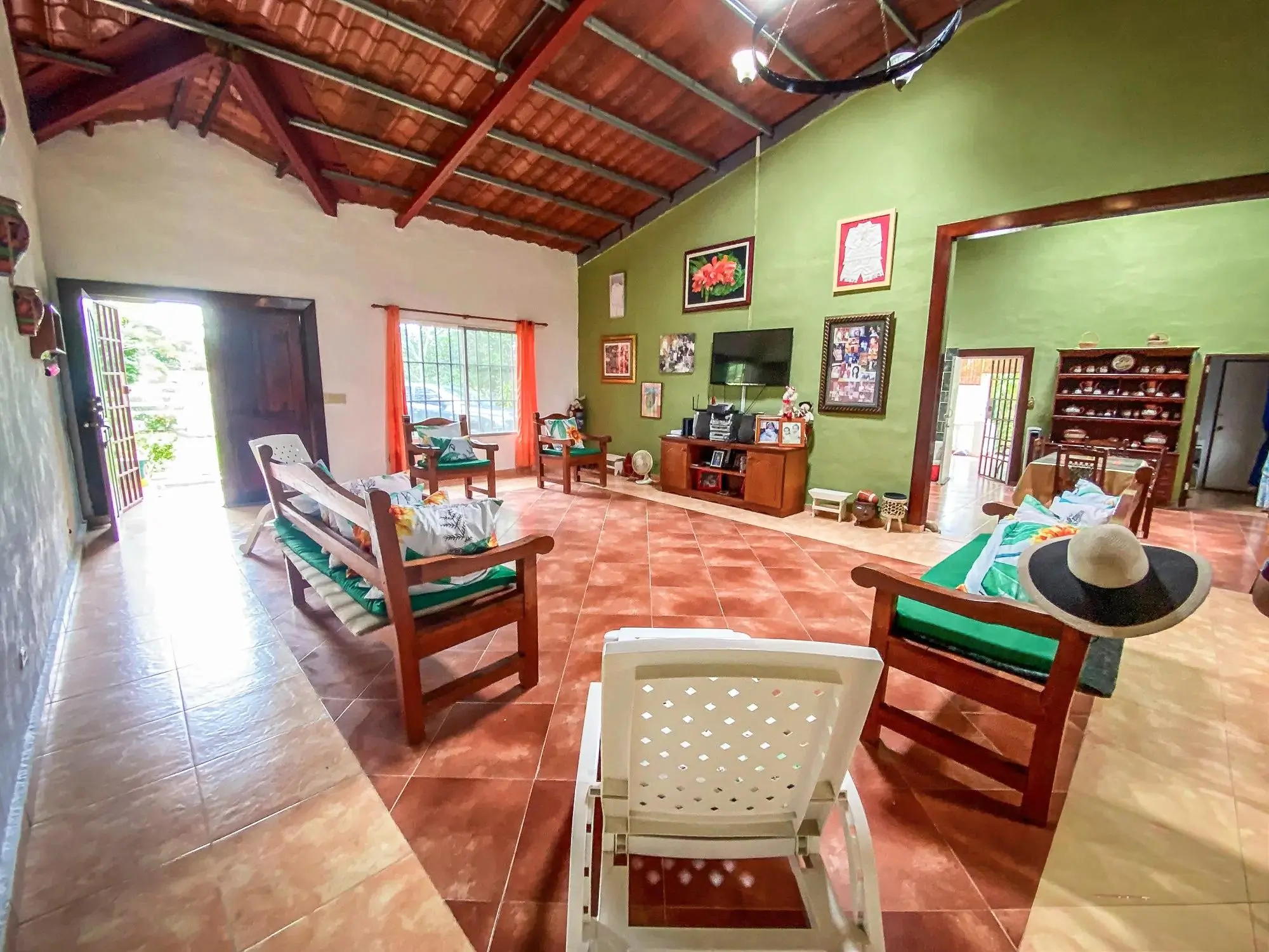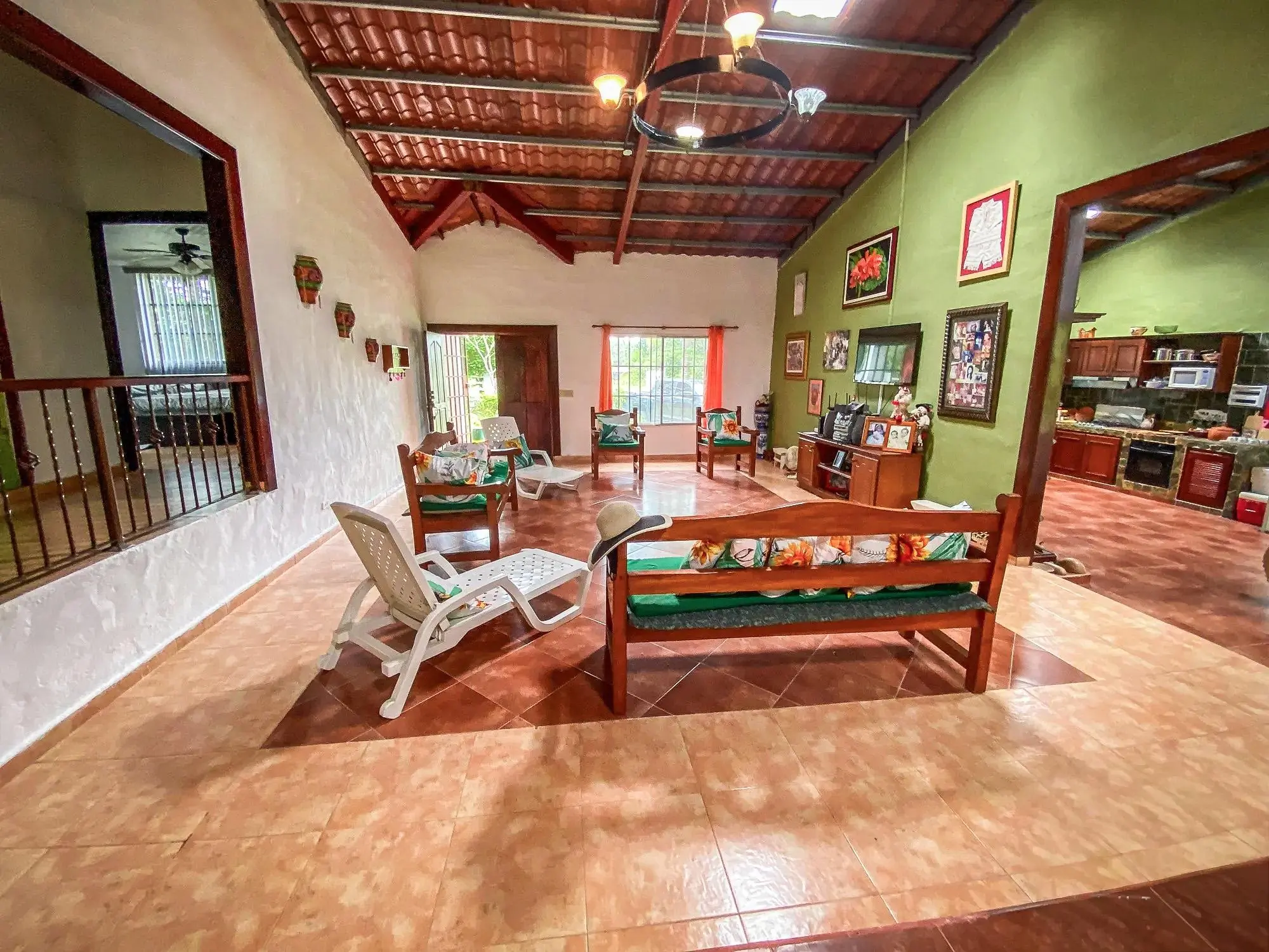 Esta propiedad se encuentra en Valle Santa Catalina, justo enfrente del centro comunitario El Espino en San Carlos, Panamá. Se ubica en un lote plano de 1,647.76 m² con aproximadamente 494 m² de construcción, situado a lo largo de la calle principal del vecindario. Características de la propiedad La casa ofrece cuatro recámaras y cuatro baños, además de dos terrazas cubiertas y un balcón que crean múltiples espacios al aire libre. La propiedad incluye un pozo privado, tanque de reserva de agua, sistema de filtración y un sistema de riego para los jardines. El lote cuenta con árboles frutales y ornamentales, vistas a la montaña y un río ubicado a unos 500 metros de distancia. Espacios interiores En el interior, la casa incluye amplias áreas de sala y comedor y una gran cocina con gabinetes de madera hechos a medida. Los techos altos y los pisos de terracota le dan al interior un toque tradicional. La venta incluye dos juegos de comedor y un juego de sala. Comunidad y cuotas La cuota mensual de mantenimiento es de $15 y cubre el agua, el mantenimiento de las áreas comunes y el parque del vecindario. Ubicación: El Espino de San Carlos El Espino es parte del distrito de San Carlos a lo largo de la costa del Pacífico de Panamá. La zona cuenta con fácil acceso a la Carretera Panamericana, que conecta con playas y pueblos cercanos como Coronado, donde se encuentran supermercados, bancos, restaurantes y servicios médicos. Su ubicación combina un entorno verde con la cercanía a la costa, ideal para residencia o escapadas de fin de semana.
