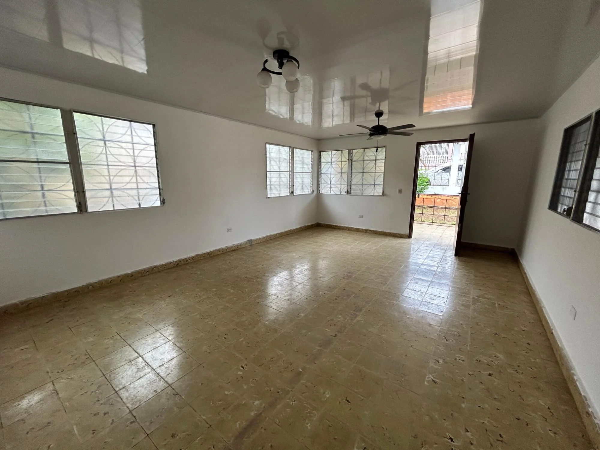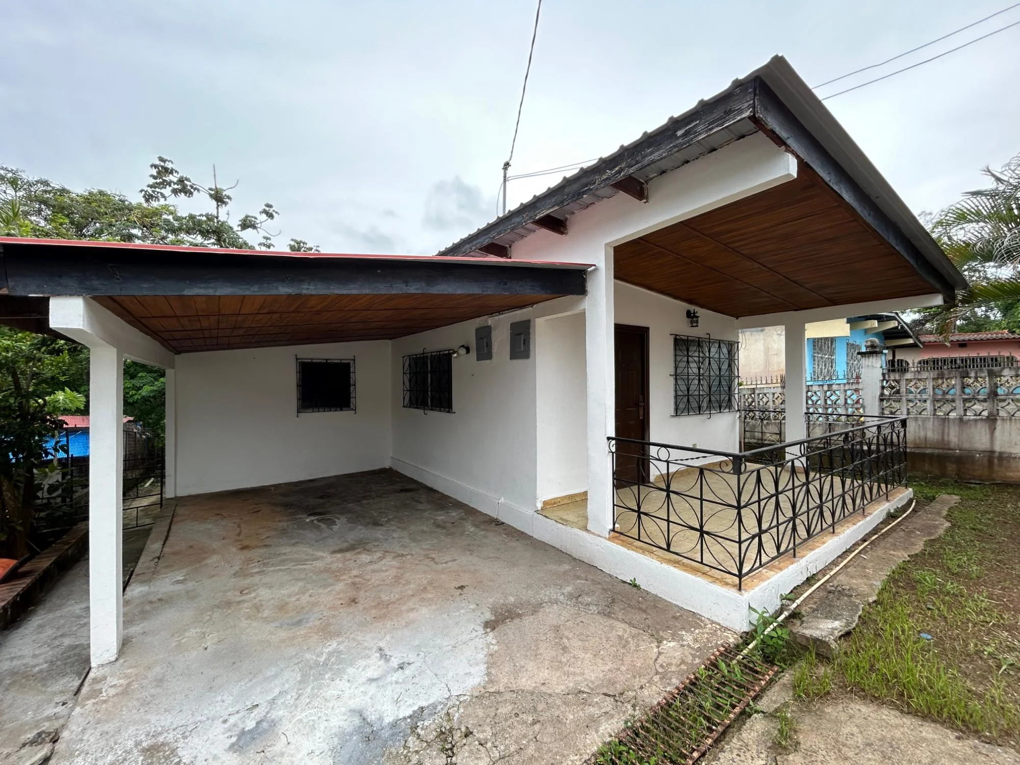 Esta propiedad de 5 dormitorios y 2 baños se encuentra en la Calle 3 de Noviembre en La Chorrera, Panamá Oeste. La casa se encuentra en un terreno inclinado de 322.84 metros cuadrados y ofrece 155.34 metros cuadrados de construcción. Está disponible tanto para venta como para alquiler, y se admiten mascotas bajo contrato de alquiler. Distribución y características: Al ingresar a la propiedad, hay un área de estacionamiento techada con acceso directo al portal principal. En el interior, la planta principal cuenta con una sala de estar y un comedor conectados. La cocina tiene su propio espacio definido e incluye gabinetes de madera y encimeras. Una pequeña ventana con barra de desayuno conecta la cocina con la sala de estar. La casa también incluye un área de lavandería techada. Ambos baños incluyen bañeras, una opción práctica para familias con niños.