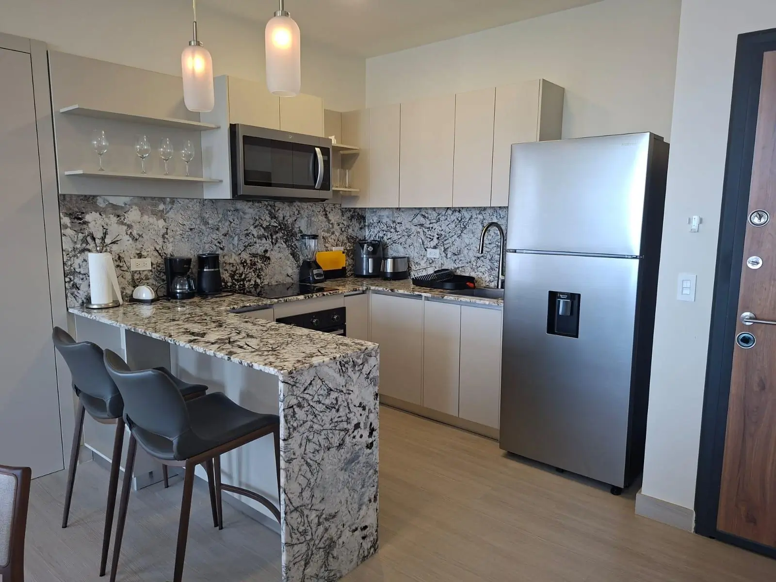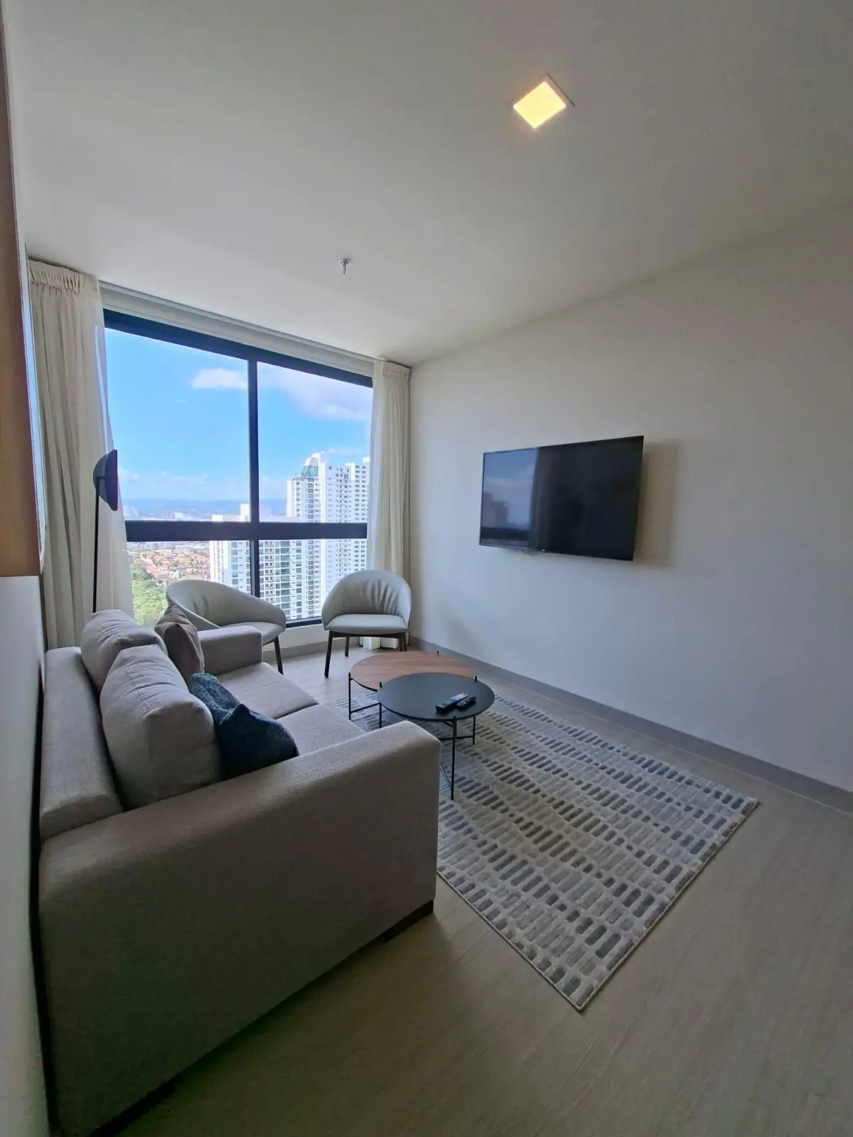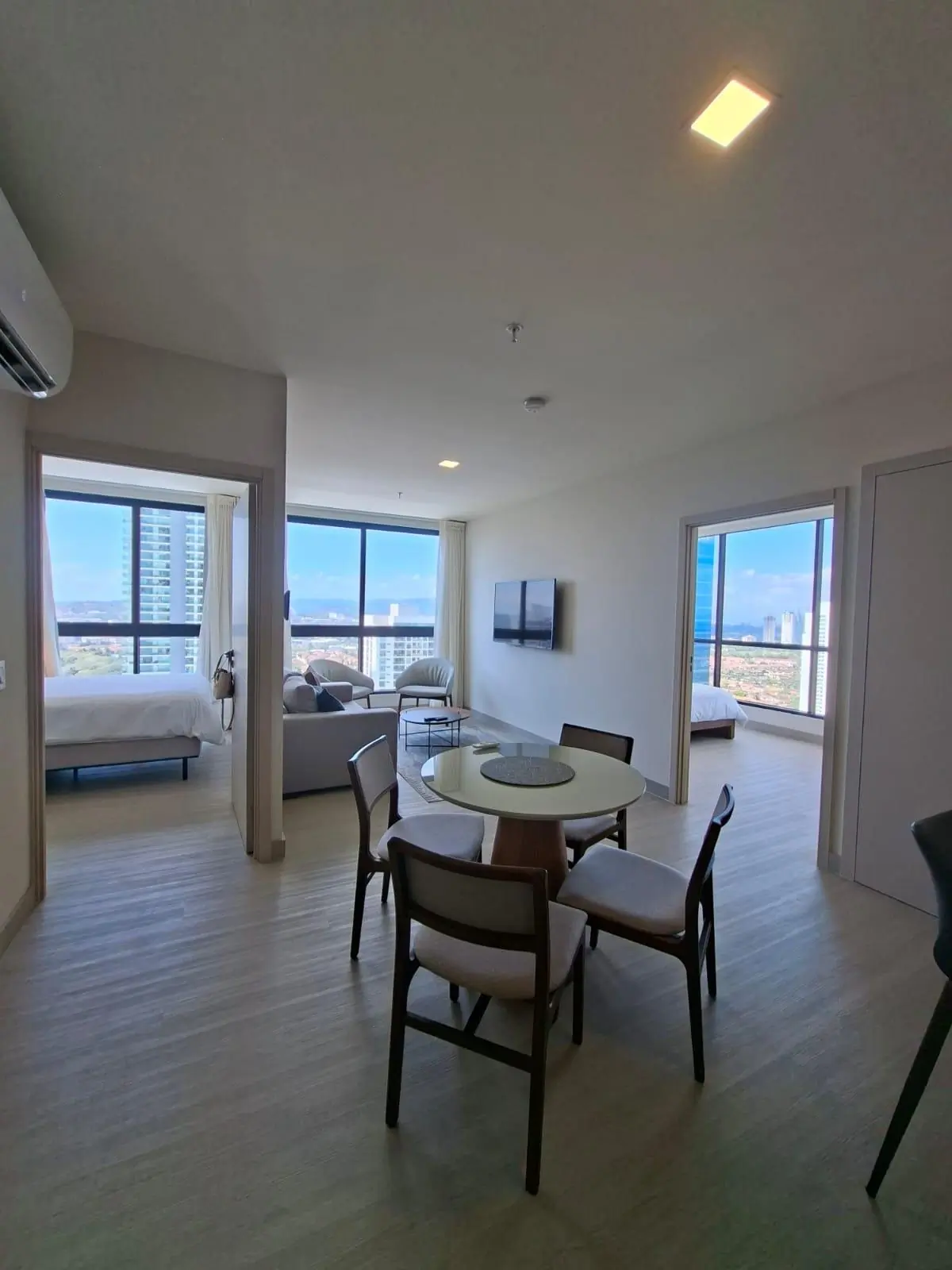 Este apartamento en PH Arcadia ha sido amoblado con excelente gusto, maximizando cada espacio, con todo a estrenar. Ubicado en el piso 28, ofrece una agradable vista hacia el centro de Costa del Este, además de ventilación cruzada e iluminación natural. Cuenta con 76 m² muy bien distribuidos, con amplios espacios de almacenamiento tanto en la cocina como en el área de lavandería. Características de la unidad: •76 m² (818 pies cuadrados) •2 recámaras y 2 baños •Recámara principal con walk-in closet y baño privado •Recámara secundaria con baño completo •Cocina abierta, moderna y totalmente equipada •Electrodomésticos de alta calidad •1 estacionamiento