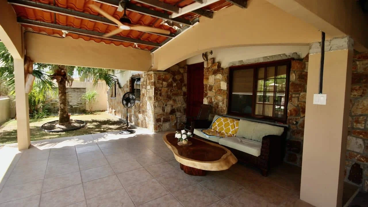 Situada en el Mirador de Antón, provincia de Coclé, 2 horas de la ciudad de Panamá, esta casa forma parte de un conjunto cerrado que ofrece seguridad y comodidades compartidas. El bungalow incluye sala, comedor, cocina y 3 habitaciones con armarios de madera de teca. La recámara principal cuenta con baño privado, la segunda es doble y la tercera puede usarse como oficina. Además, cuenta con una habitación adicional que puede ser utilizada como depósito o garage. Con amplias terrazas, jardín frontal con fuente, terreno listo para paisajismo y parking techado para 2 autos, la tarifa de servicios de $40 cubre seguridad y mantenimiento.