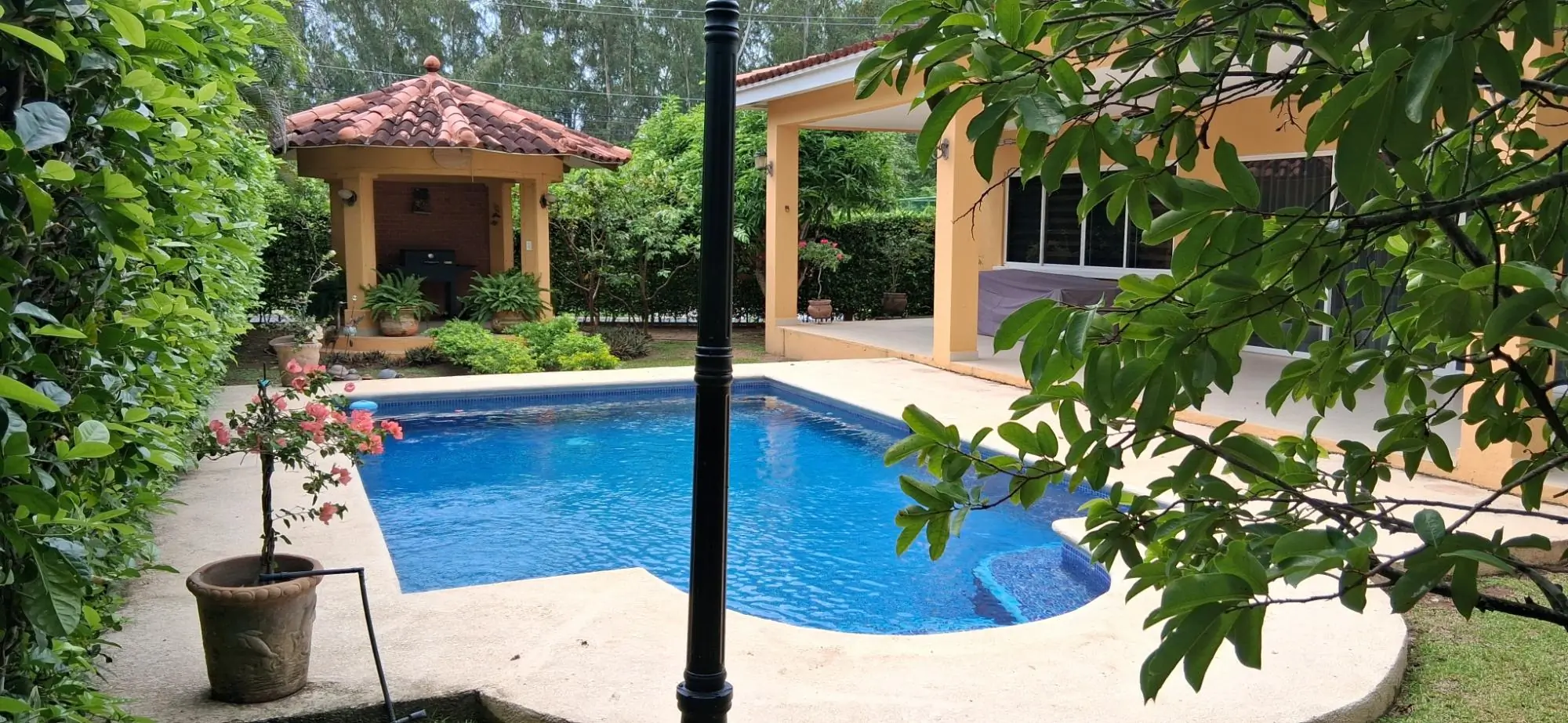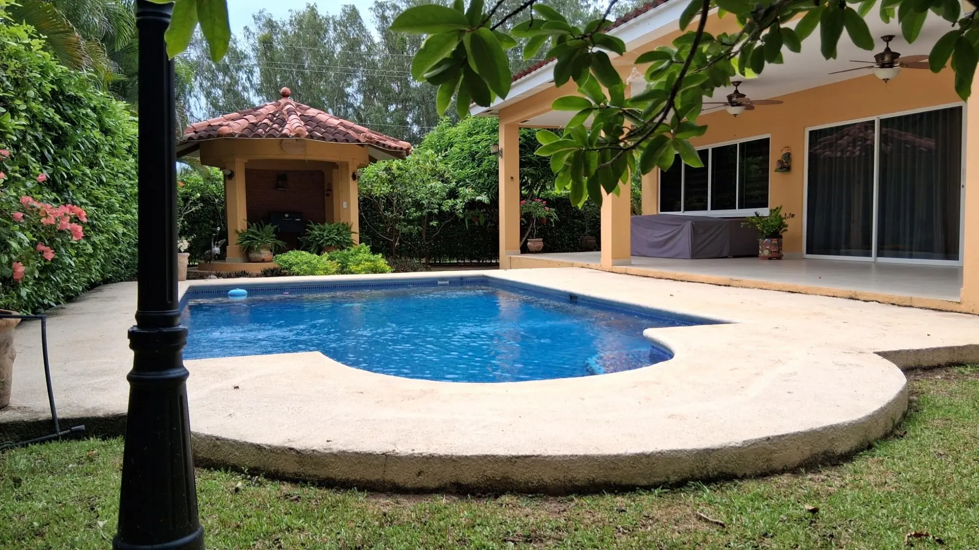 A pocos minutos de la hermosa Playa Caracol. Urbanización cerrada a 60 Kms de la Ciudad de Panamá. La casa cuenta con 198m2 de Construcción entre área cerrada y terraza, en terreno de 620.91m2 Hermosa casa en Villas de la colonia-Chame en Panamá, Esta impresionante casa se encuentra en una exclusiva comunidad cerrada, garantizando privacidad y seguridad para ti y tu familia. Con una ubicación privilegiada cerca de las pintorescas playas de la zona, esta propiedad ofrece el equilibrio perfecto entre tranquilidad y comodidad. Al ingresar a esta encantadora residencia, serás recibido por un amplio estacionamiento para dos vehículos, proporcionando conveniencia para ti y tus invitados. La espaciosa sala de estar y comedor te brinda un ambiente acogedor y luminoso, con ventanales que se abren a una hermosa terraza posterior y un exuberante jardín, donde podrás disfrutar de momentos de relajación y entretenimiento al aire libre. La cocina, diseñada en un elegante estilo abierto en forma de U, cuenta con modernos muebles modulares y una ventilación directa. En el área de descanso, encontrarás tres dormitorios tranquilos y luminosos. La habitación principal, amplia y luminosa, cuenta con un baño privado y un generoso espacio de armario, mientras que las otras dos habitaciones ofrecen cómodos armarios empotrados para el almacenamiento. Disfruta de momentos al aire libre en la terraza posterior con piscina, perfecta para disfrutar del clima tropical de Panamá en cualquier momento del día. El extenso jardín, rodeado por una cerca perimetral, ofrece un oasis verde donde podrás disfrutar de actividades al aire libre con total privacidad. Sala-Comedor Cocina abierta Terraza con piscina 3 recamaras 3 baños Lavandería 2 estacionamientos