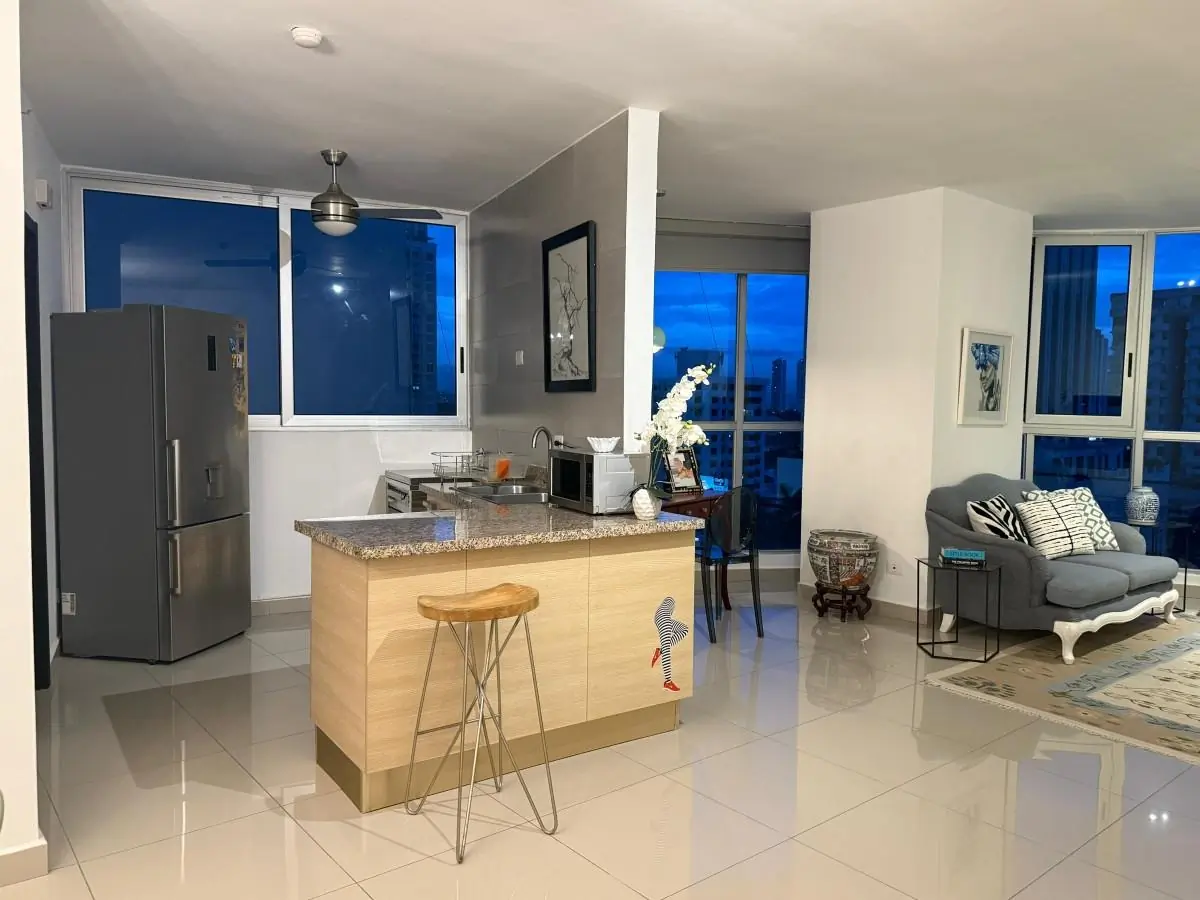 ¡Oportunidad única en San Francisco! Se vende moderno apartamento totalmente amoblado de 115 m², con 1 recámara, 1.5 baños, sala, desayunador y lavandería, equipado con línea blanca, lámparas, cortinas y aires acondicionados tipo split. Disfrute de una excelente vista a la ciudad y de amenidades como área social, piscina, salón de fiestas, gimnasio y estacionamientos de visitas. El edificio ofrece además elevadores, seguridad 24/7, tanque de reserva de agua, acceso para sillas de ruedas y 1 estacionamiento privado. Ubicado en el corazón de San Francisco, con acceso rápido a comercios, restaurantes, hospitales y principales vías de la ciudad.
