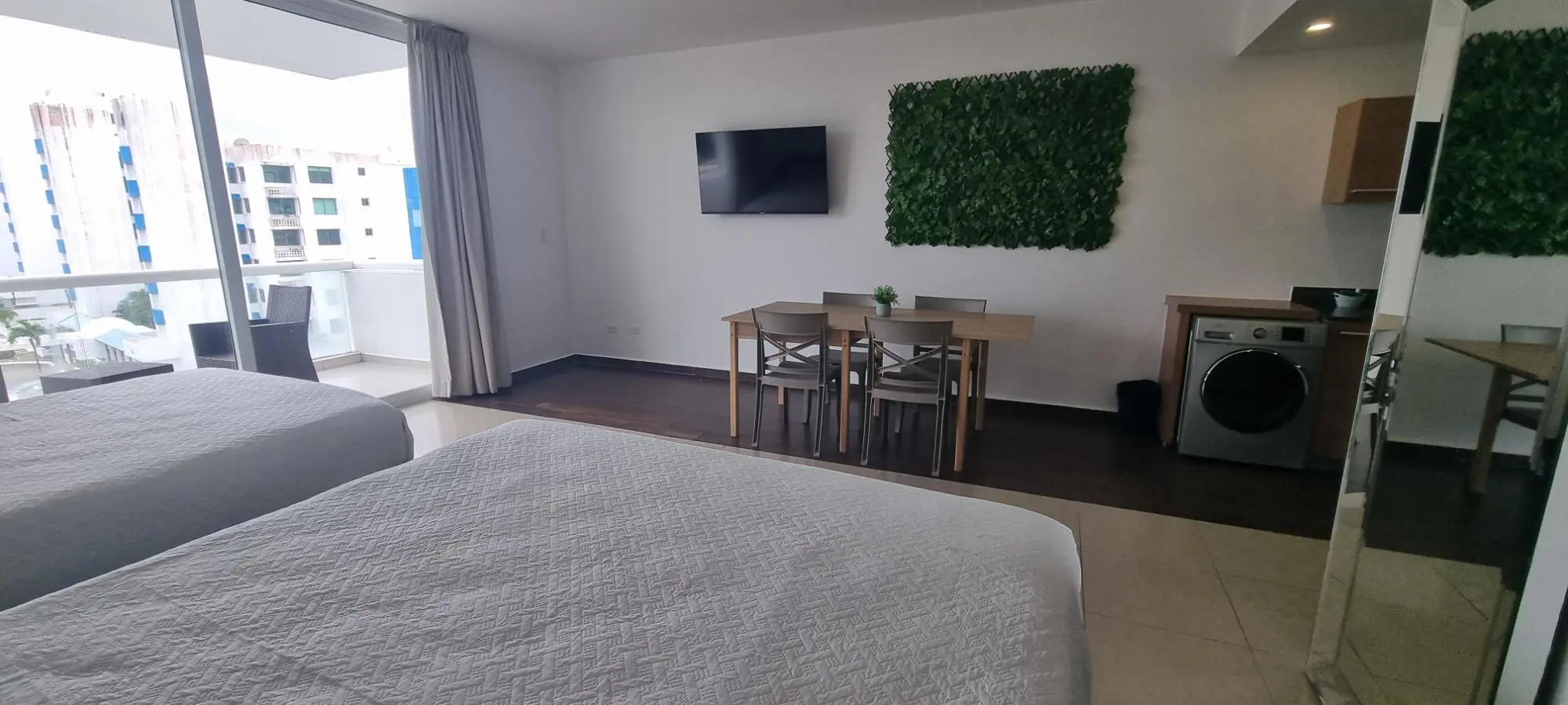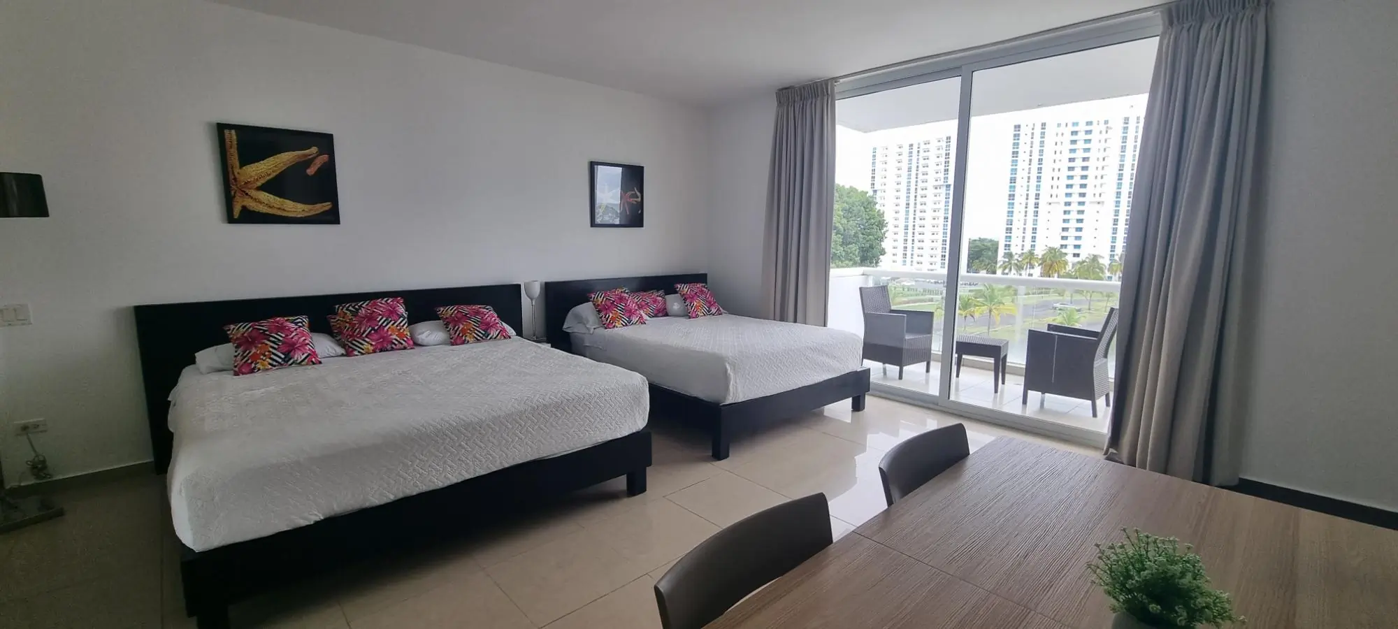 ¡Descubre tu escapada ideal en Playa Blanca, Río Hato, Panamá! Este acogedor estudio de 56 m², ubicado en el corazón de Town Center de Playa Blanca, ofrece la combinación perfecta de comodidad y conveniencia para hasta 4 personas. Con una cama King, una cama doble y una cocina totalmente equipada (incluyendo refrigerador, estufa eléctrica, microondas y más), este apartamento te hará sentir como en casa—ideal tanto para preparar tus propias comidas como para disfrutar de un buen descanso. ✨ Comodidades para una estancia inolvidable: Acceso a la hermosa playa y a la famosa piscina gigante de Playa Blanca con toboganes. ¡Solo trae tus toallas de playa y sumérgete! Wi-Fi y TV por cable gratuitos para mantenerte conectado, además de estacionamiento gratuito para tu conveniencia. Se incluyen sábanas y toallas de baño, para que puedas viajar ligero. ️ Explora y disfruta en el Town Center de Playa Blanca: Todo lo que necesitas está a tu alcance: restaurantes, una tienda de conveniencia, panadería, gimnasio, spa, canchas de tenis e incluso un parque infantil. Además, con tiendas cercanas como Automercado Súper 99, Novey y Farmacias Arrocha, además de opciones de alquiler de autos, ¡tienes todo para explorar la zona a tu propio ritmo! Ubicación perfecta para la aventura: A solo 2 horas de la Ciudad de Panamá, 1 hora del Westland Mall, y a 20 minutos de Penonomé y Antón, este estudio es el punto de partida ideal para explorar la belleza y cultura de Panamá. ¡Reserva tu estadía hoy y vive la experiencia única de Playa Blanca!