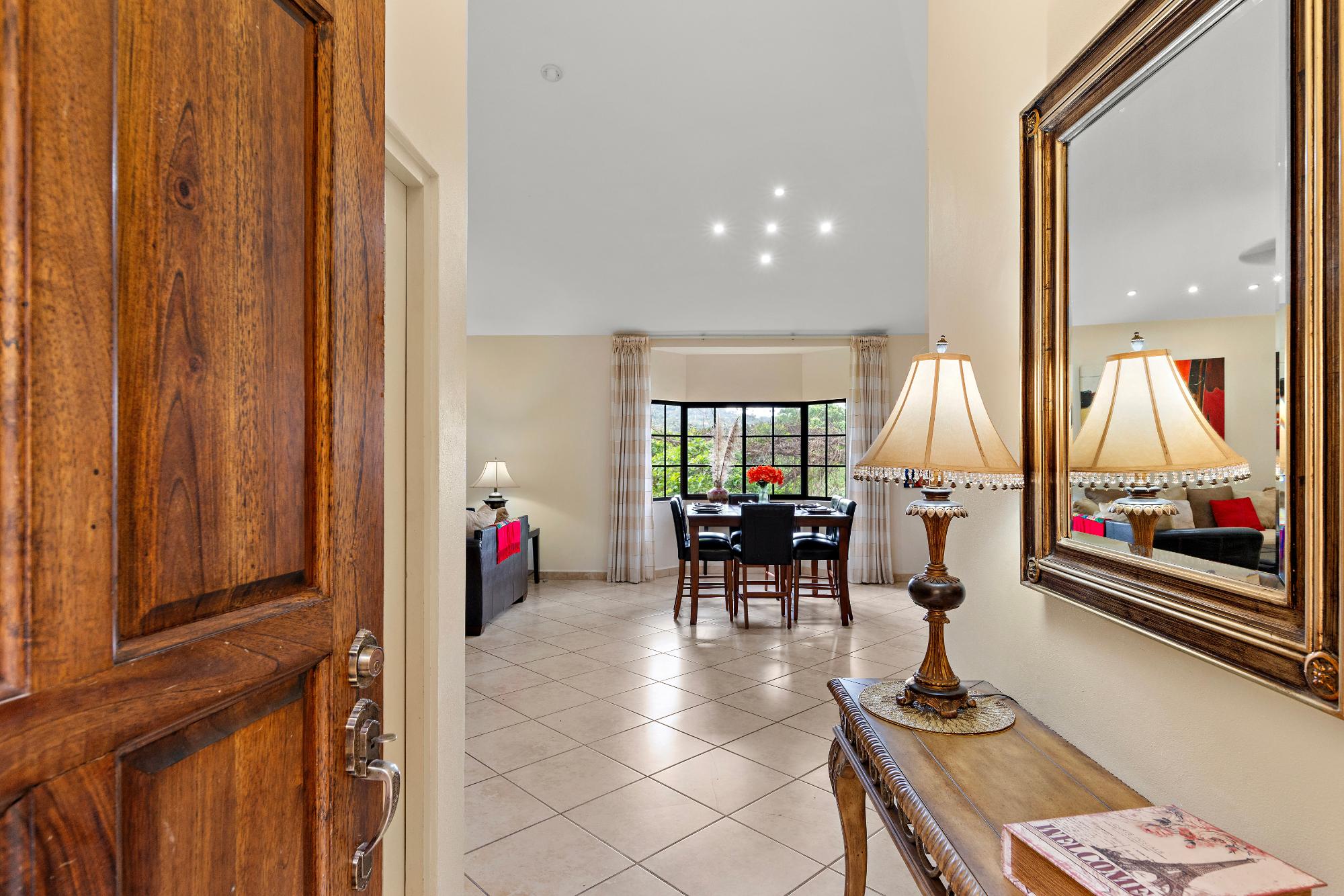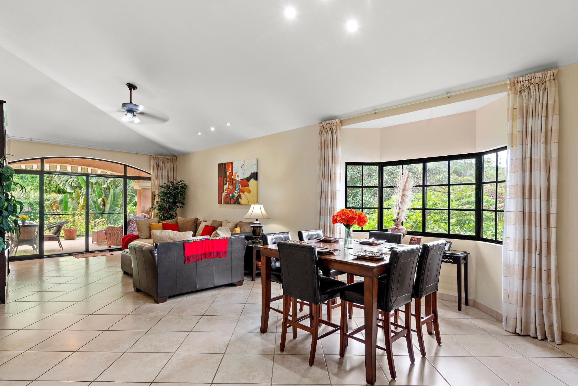 Bienvenido a una propiedad verdaderamente excepcional: el único condominio de 3 habitaciones disponible actualmente en la exclusiva comunidad privada de Valle Escondido, ubicada a pocos pasos del centro de Boquete. Esta unidad esquinera en planta alta ofrece una combinación única de privacidad, espacio, belleza natural y comodidad, difícil de encontrar en el competitivo mercado inmobiliario de Boquete. Desde el momento en que entra, le reciben techos altos con vigas y abundante luz natural que se filtra a través de amplios ventanales. El diseño de concepto abierto crea un ambiente cálido y acogedor, que se integra fluidamente desde la sala de estar hasta el comedor y una amplia cocina bien equipada. Con una amplia encimera, amplios gabinetes y una barra de desayuno perfecta para comidas informales o reuniones, esta cocina es funcional y acogedora. Junto a la sala de estar se encuentra una terraza cubierta y privada, donde podrá relajarse con el relajante sonido del arroyo cercano y disfrutar de las vistas a los exuberantes jardines. Un toldo retráctil hace que este espacio exterior sea ideal para disfrutar todo el año, ya sea disfrutando del café de la mañana, leyendo un libro a la sombra o entreteniendo a amigos en una tarde cálida. El dormitorio principal ofrece un remanso de paz y tranquilidad, con baño privado con tocador doble y gabinetes de madera a medida, además de un amplio vestidor. Dos dormitorios adicionales ofrecen espacio versátil para invitados, una oficina en casa o una sala de ocio. La casa también incluye un amplio lavadero con lavadora, secadora y un segundo refrigerador grande, perfecto para el almacenamiento adicional y el entretenimiento.