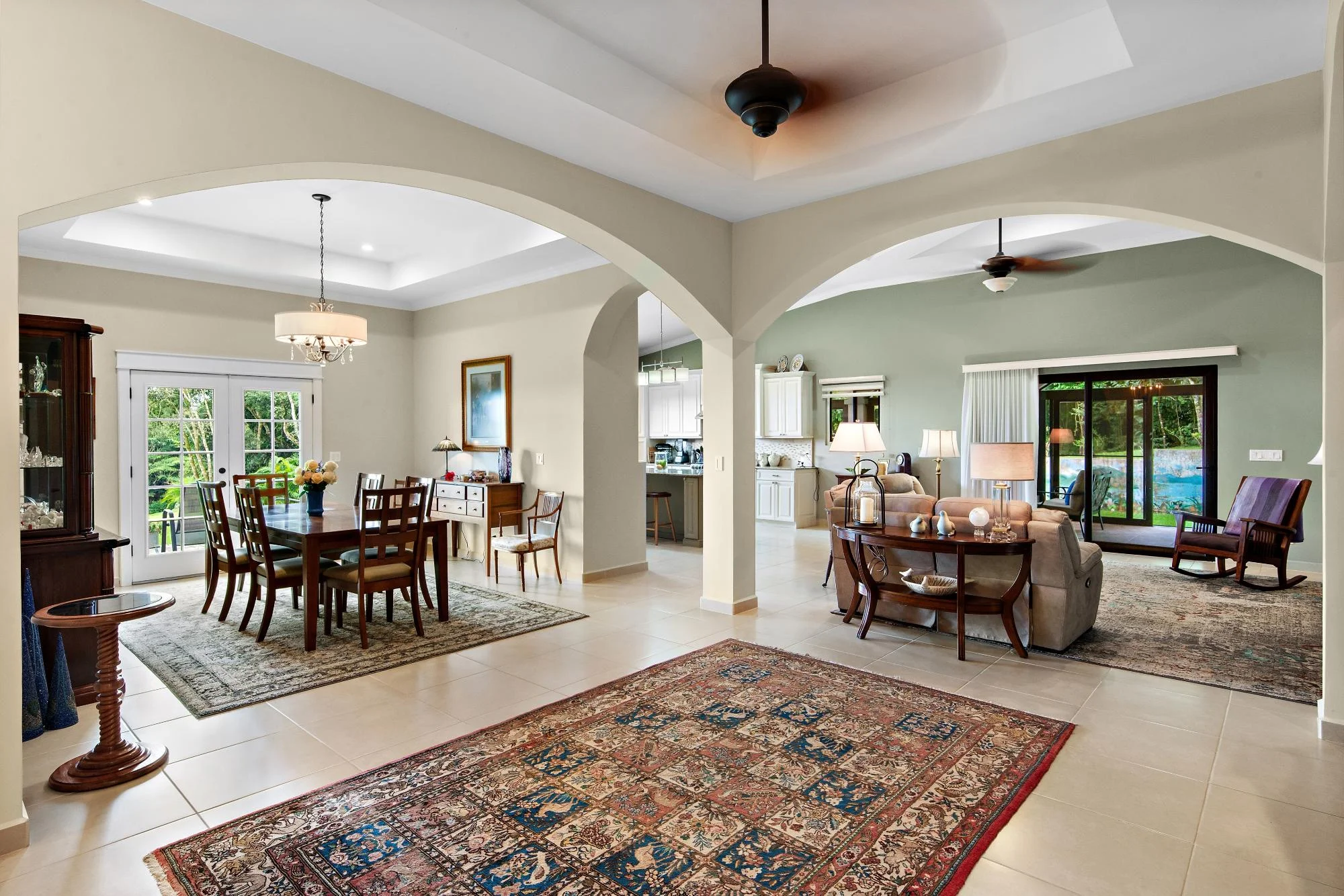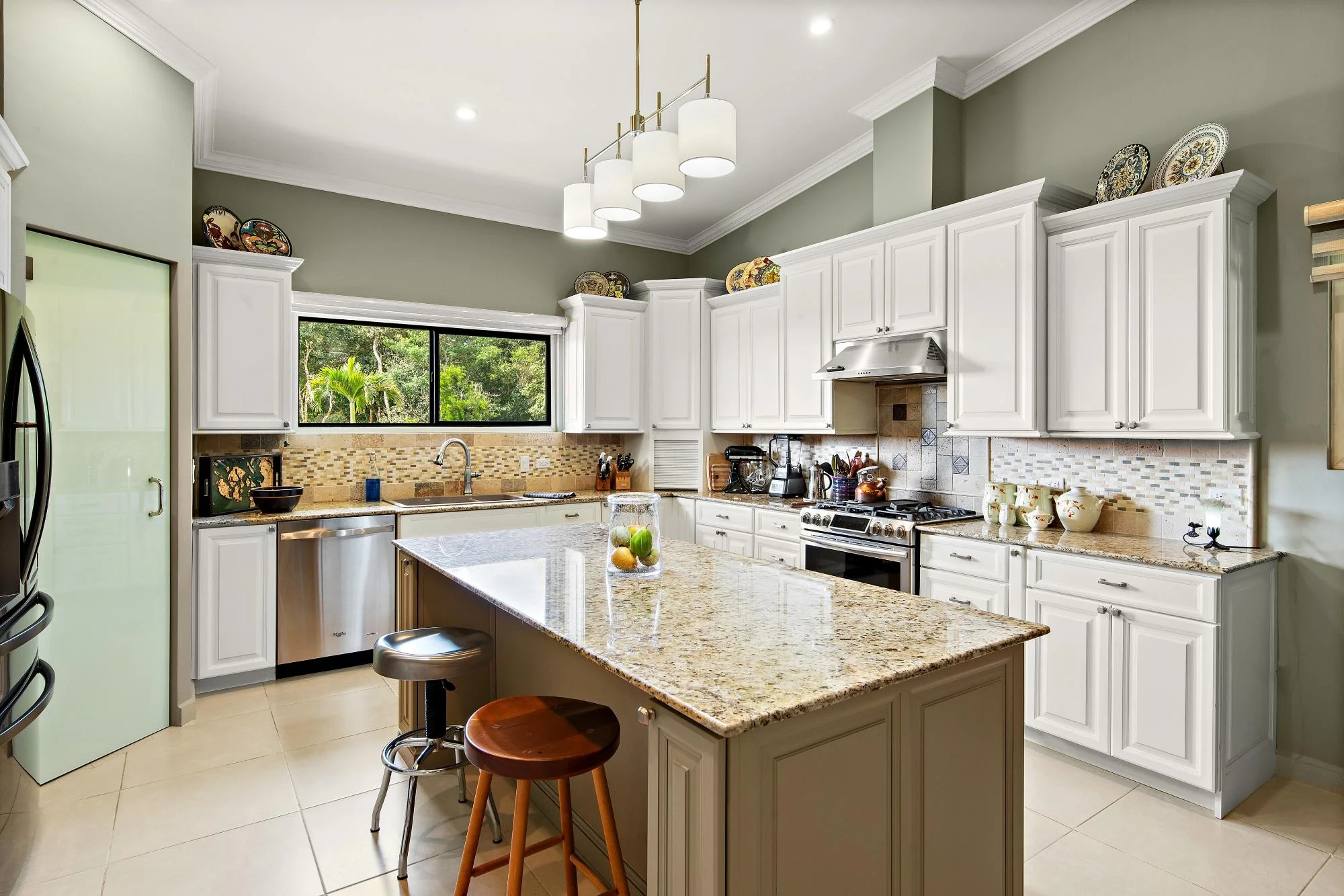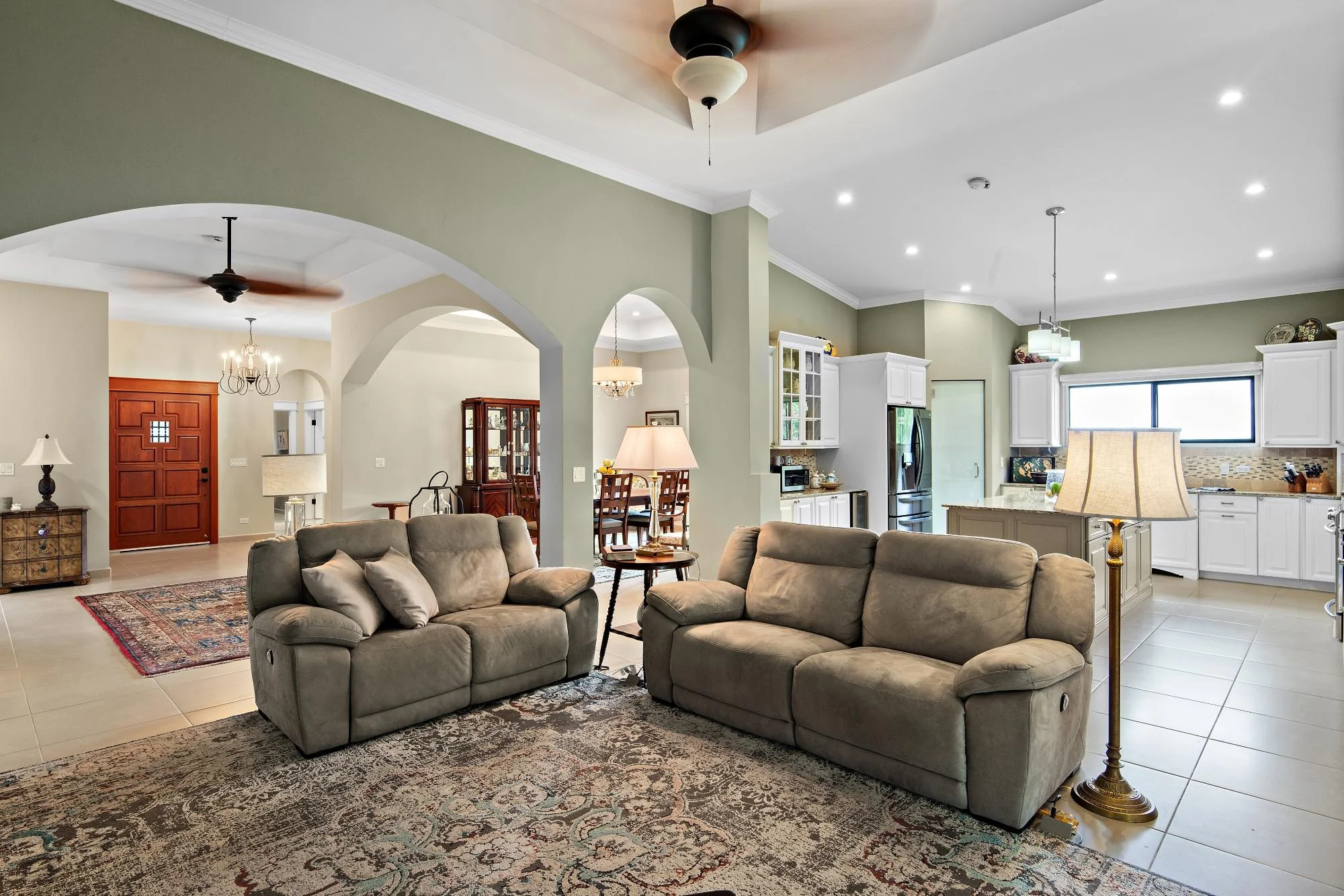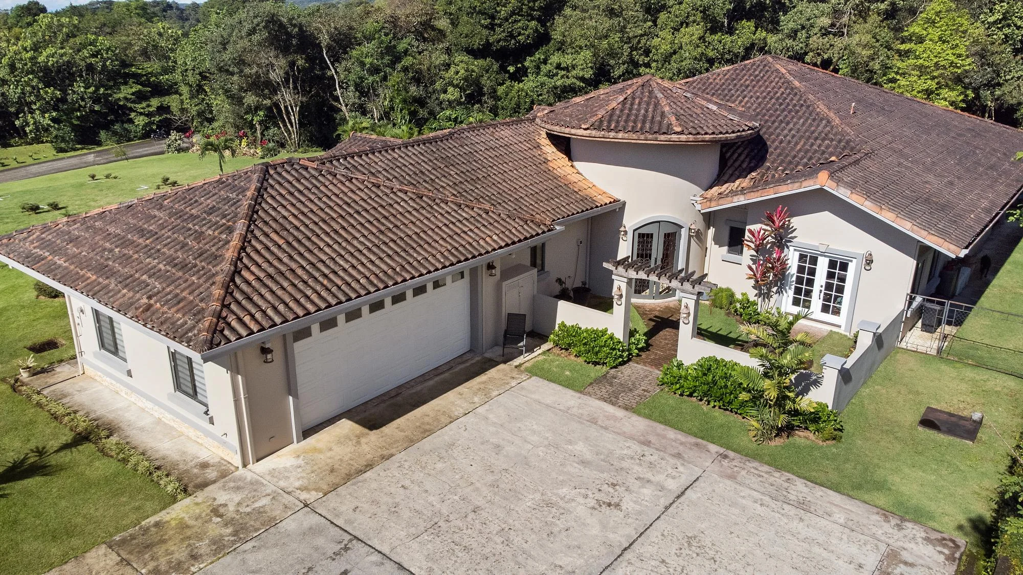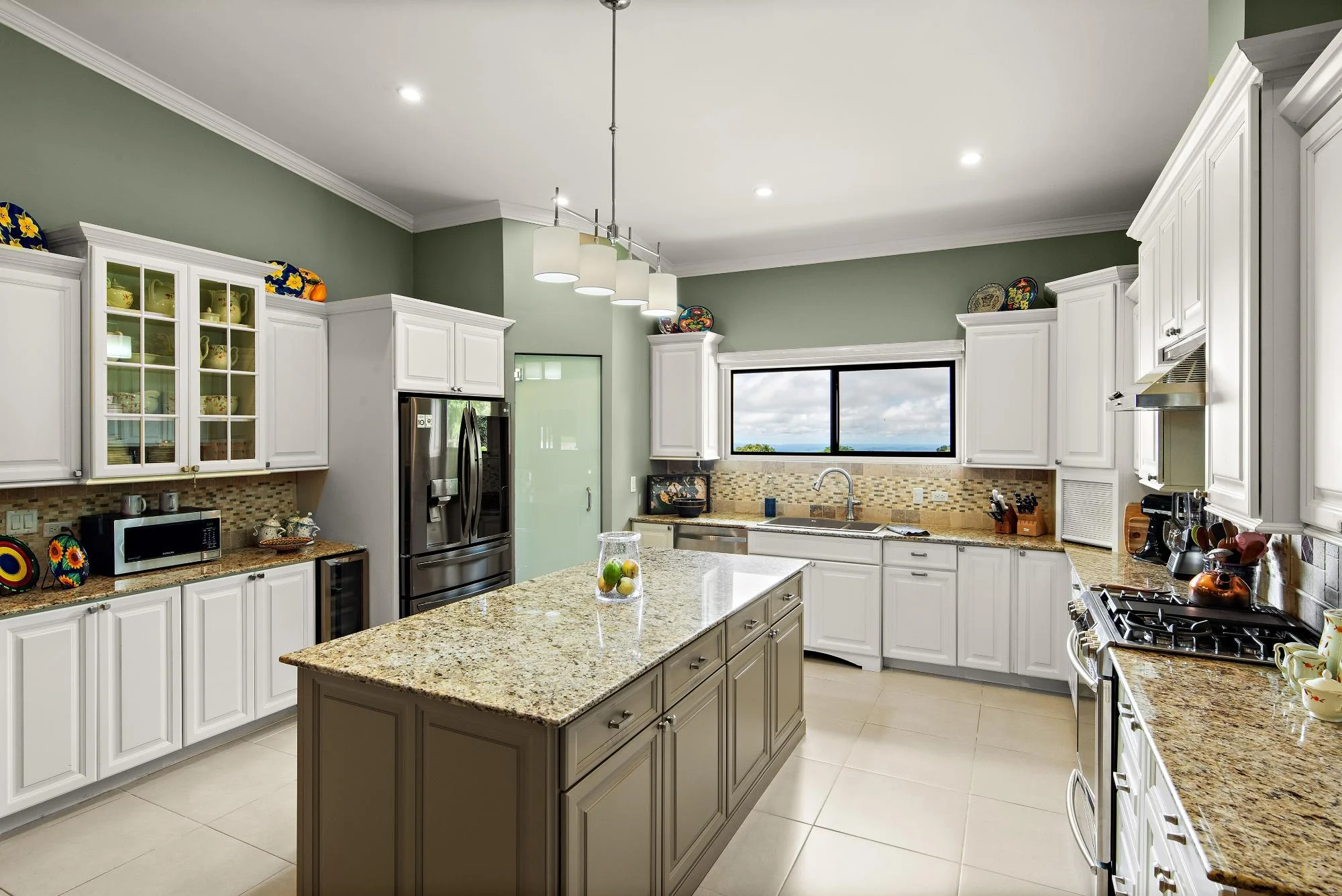 Descubra una excepcional combinación de elegancia clásica y lujo moderno en esta amplia casa de una sola planta, ubicada en un terreno doble en un entorno exuberante, privado y seguro. Con una construcción de primera clase y amplias características de alta gama, esta propiedad ofrece un estilo de vida sofisticado y sin preocupaciones. La finca cuenta con atractivos techos de terracota y un hermoso paisaje tropical. Esta propiedad está diseñada para la comodidad y la seguridad: Seguridad y tranquilidad: Disfrute de mayor seguridad con rejas de seguridad Furtec, seguridad Lucero las 24 horas y un robusto sistema de batería de respaldo de 18 horas para una vida ininterrumpida. Apto para mascotas: La propiedad cuenta con cercas para perros, lo que garantiza un entorno seguro para sus mascotas. Características: La propiedad incluye un helipuerto exterior. El diseño abierto de la casa se integra a la perfección con espacios versátiles que se adaptan al ambiente tropical: Comedor formal: Definido por un elegante techo artesonado con lámpara de araña, este espacio se comunica con el exterior a través de puertas francesas. Terraza cerrada: Disfrute del trópico todo el año en la impresionante terraza cerrada. Con un techo abovedado y amplias puertas corredizas de vidrio arqueadas, ofrece un espacio luminoso y protegido de la intemperie, perfecto para relajarse o entretenerse. Además, cuenta con una máquina de ejercicios Matey para mantenerse en forma. El Atrio: Un atrio aporta belleza con una característica arquitectónica única. La cocina y los espacios de servicio, bellamente diseñados, están equipados con características premium para mayor eficiencia y disfrute: Cocina Gourmet: Una delicia para el chef con amplios gabinetes blancos, encimeras de granito y una gran isla central.