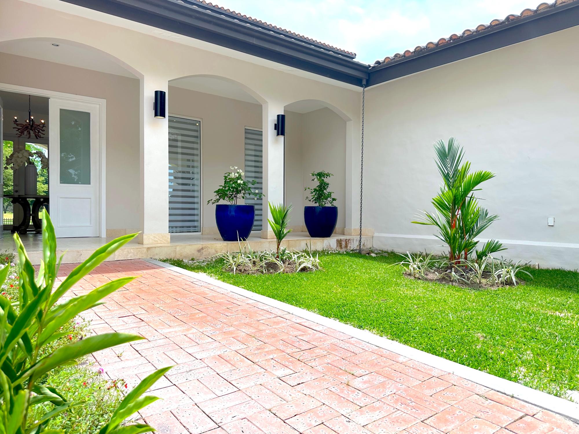 Panama Home Realty ofrece espectacular casa para la venta, en el exclusivo Buenaventura Golf & Beach Resort. La propiedad cuenta con excelentes espacios y distribución, amplios cuartos y acabados de lujo. Con iluminación natural y combinaciones exquisitas que deleitan su mirada ante la fantástica vista al campo de Golf. Esta linda casa cuenta con un amplio recibidor, comedor, baño de visitas y sala de estar con pequeño bar. En la primera planta podrá encontrar una habitación para huéspedes, cocina full equipada y acceso al amplio jardín con trampolín, patio con bbq y mobiliario para disfrutar al máximo a cualquier hora. En la segunda planta se encuentra la habitación principal con walk in closet y baño privado. Adicionalmente, dos habitaciones secundarias con baños privados, balcones y todas las comodidades que necesita. Amplios espacios de esparcimiento para disfrutar en familia. La propiedad cuenta con Estacionamiento para hasta 3 autos, entrada de servicio y gran porche o entrada recibidor que lo dejará impactado. En su estadía puede disfrutar de las diferentes playas ubicadas en Buenaventura Resort, tal como la privada Martini Beach o en Punta Arena Beach Club donde podrá disfrutar de comidas y bebidas alrededor de la piscina. Buenaventura es una exclusiva comunidad de Golf & Beach Resort ubicada en el área de Playa Blanca en la costa del Pacífico de Panamá. Es un paraíso para los amantes del golf, con un campo de golf de 18 hoyos, además es un destino perfecto donde puede navegar, nadar, observar aves, caminar, pescar, cenar, socializar o simplemente vivir la vida que está soñando. Con casas de lujo, rodeadas de impresionantes vistas de exuberantes jardines, lagunas, calles y playa. A solo 80 minutos de la ciudad de Panamá, Buenaventura tiene 2 kilómetros de playa privada, cancha de tenis, establos para caballos, servicios de diversión acuática y de terreno, campo de golf y club de golf, zoológico privado y todas las comodidades del resort. Disfrute de un momento de relax en la piscina, la playa y el spa. También se encuentran 2 clubes de playa con piscina y restaurante, Deli Gourmet, tiendas de productos básicos y una iglesia. Buenaventura Golf & Beach tiene un acceso de seguridad supervisada y seguridad en la comunidad cerrada 24/7. Características: -Casa de dos plantas -Completamente amoblada – 4 dormitorios – 4.5 baños – 409.8 m² en total – 289.3 m² area cerrada – Cuarto y baño de servicio – Entrada independiente de serv