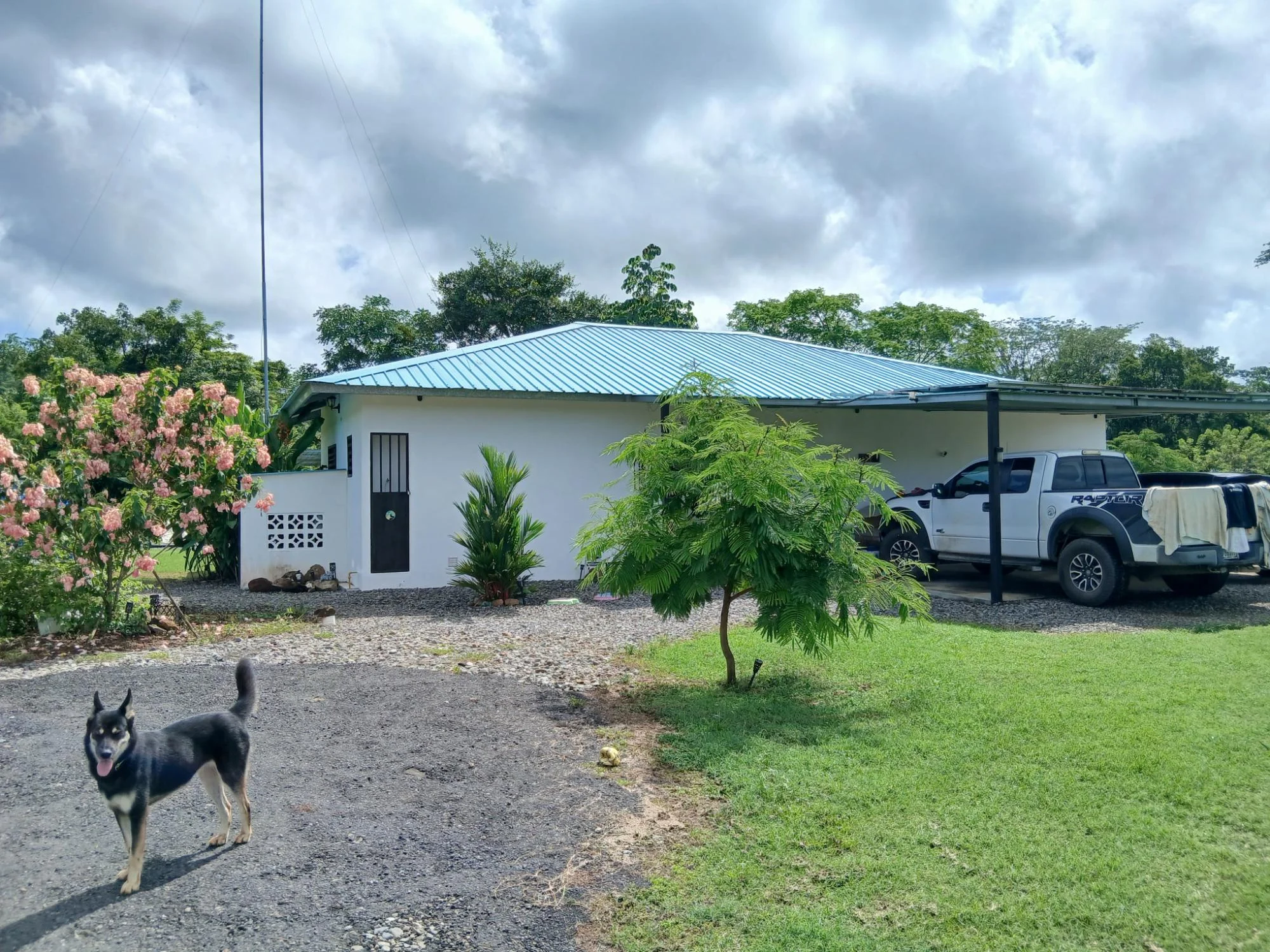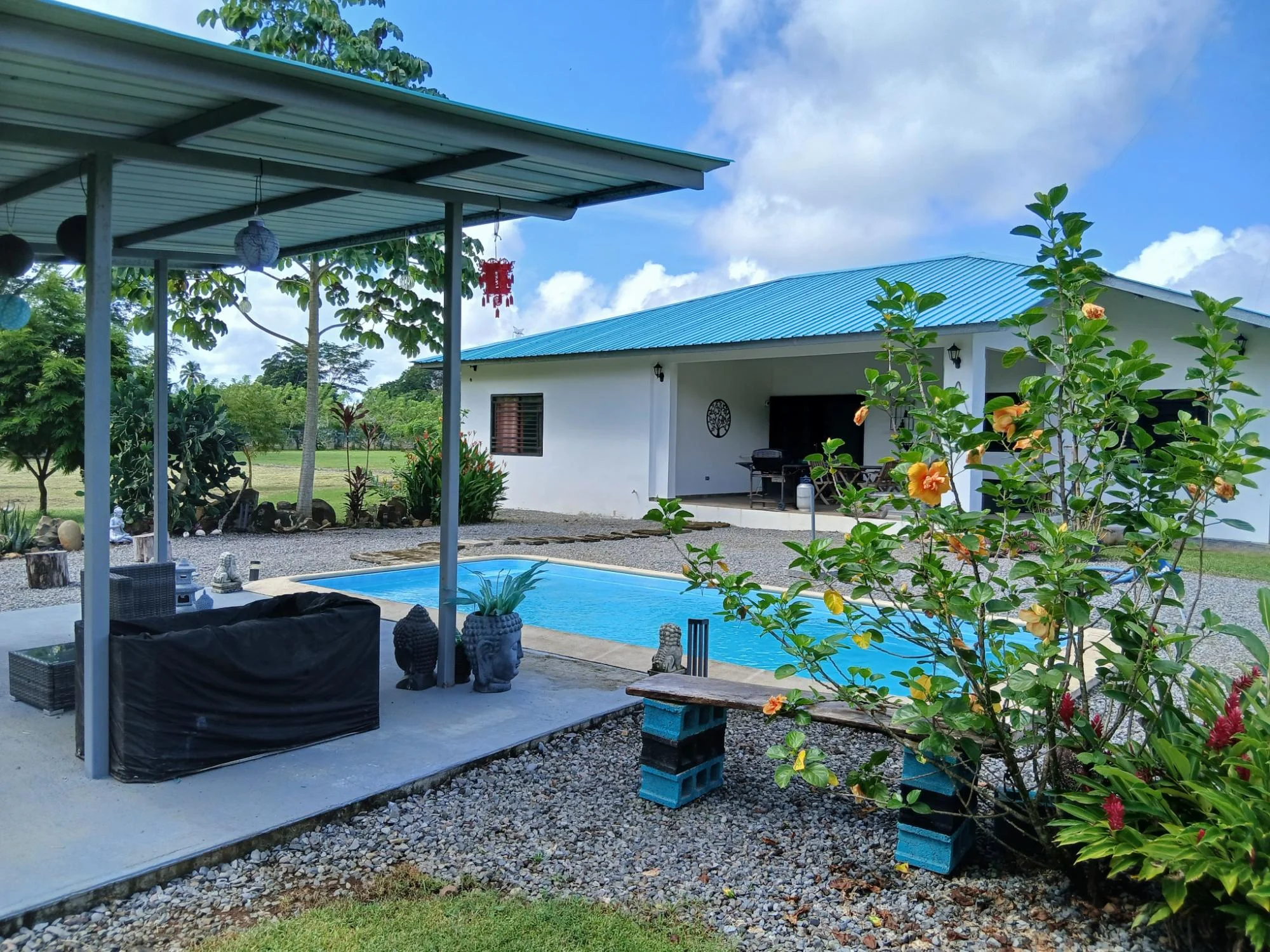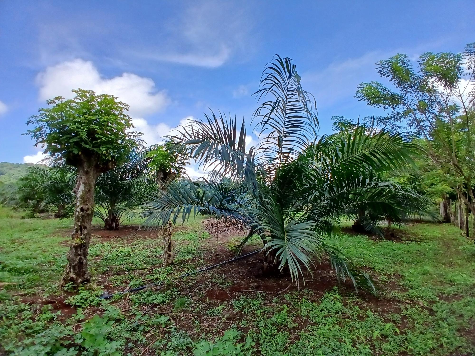 Traiga sus muebles y objetos personales, todo lo demás ya está listo para que se sienta como en casa. La finca de 5 hectáreas está dividida en tres partes, completamente vallada y se encuentra en Zambrano, a solo 20 minutos en coche de David, en una carretera de grava pero muy bien acondicionada. A Boquete se llega en 45 minutos. En la parcela de 1,5 hectáreas, muy bien cuidada y con numerosos árboles frutales como papaya, mango, aguacate, plátano, cítricos, etc., se encuentra la casa principal, de solo 2,5 años de antigüedad, con dos dormitorios, dos baños, una gran sala de estar con cocina, un estudio y un lavadero. Además, hay una gran terraza cubierta, una piscina con otra pequeña terraza y dos contenedores marítimos que se utilizan como taller y almacén. La casa puede funcionar de forma totalmente autónoma, ya que cuenta con un sistema de energía solar, un pozo y agua caliente tratada con un módulo solar. Pero también dispone de agua y electricidad municipales. La parte central de la propiedad, de 3 hectáreas, está plantada con palmeras aceiteras, que están entrando en producción. En la parte restante, de 0,5 hectáreas, hay otra casa sencilla y más antigua, en la que actualmente vive el empleado. Allí hay además un gran huerto, un gallinero e incluso hay espacio para una vaca. Todas las parcelas son accesibles directamente desde la calle, por lo que no hay ningún impedimento para dividirlas. ¿Necesita más terreno? No hay problema, se puede adquirir más terreno adyacente a esta propiedad.