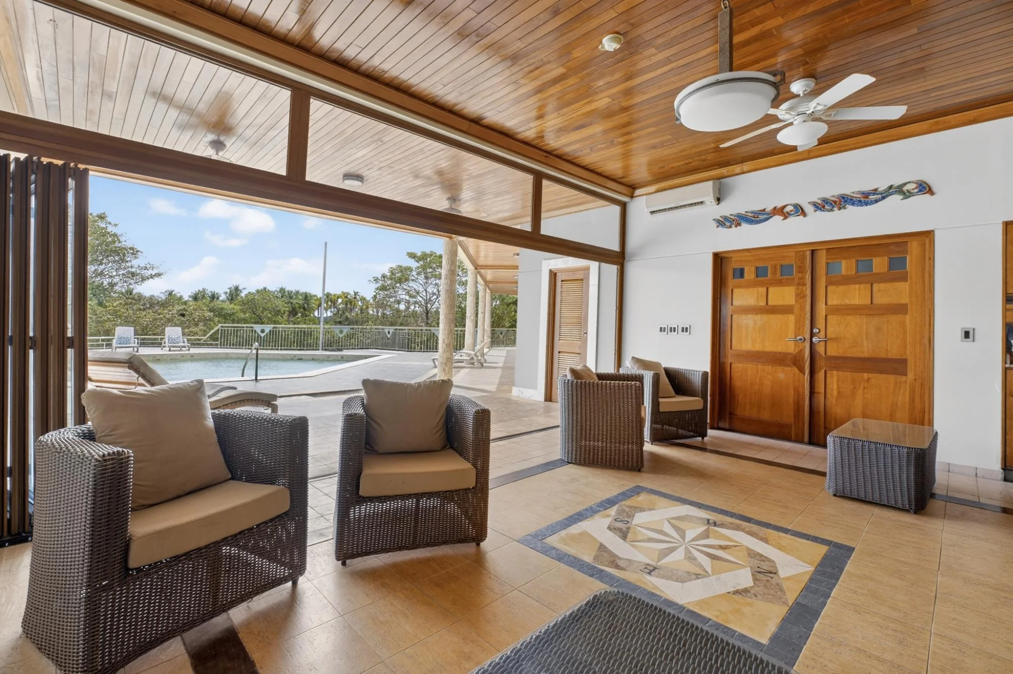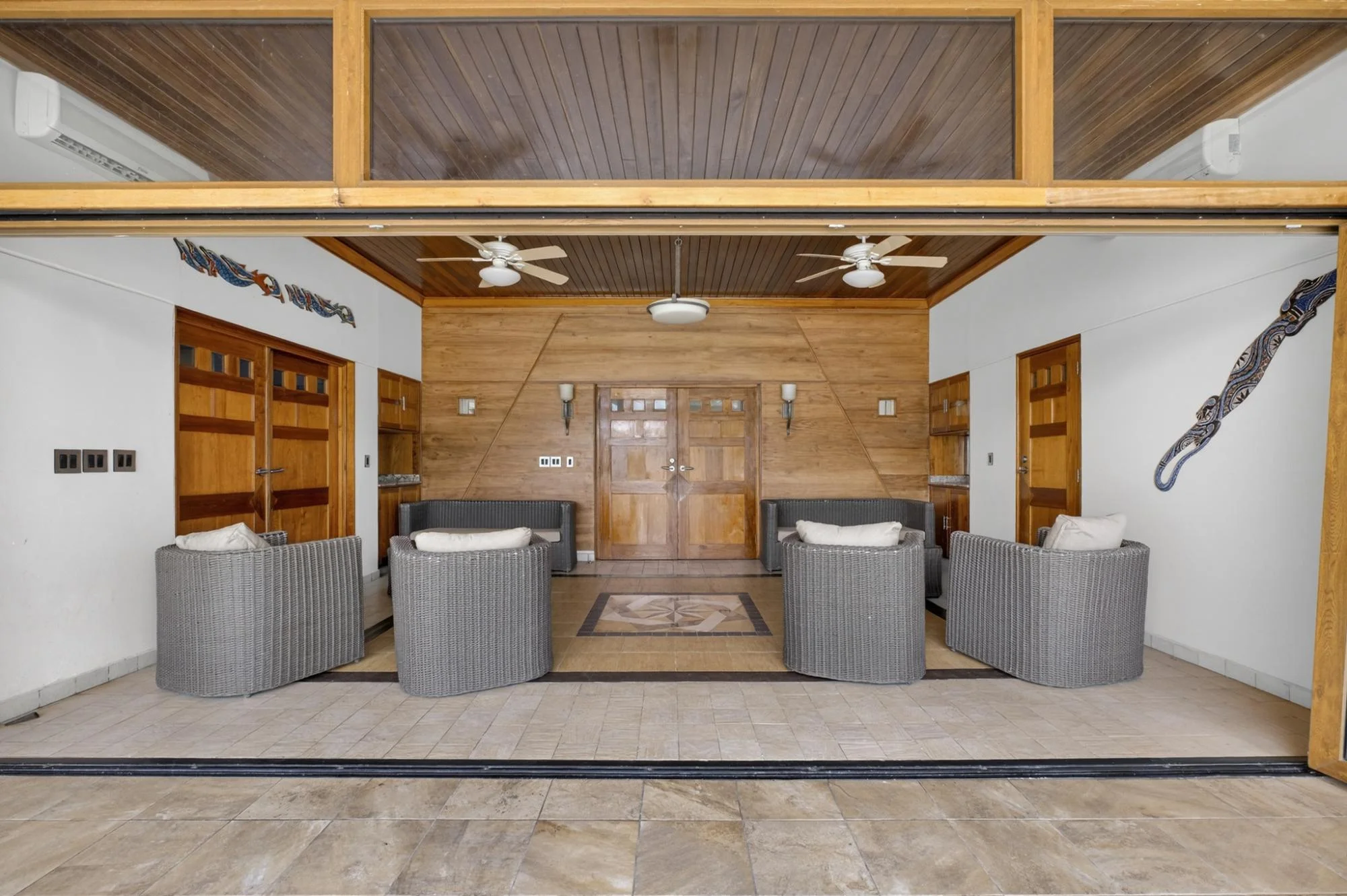 Ubicada en Hermosa Bay, Boca Chica, esta amplia propiedad de más de 840 m² se asienta sobre aproximadamente 23 000 m² de terreno privado y ofrece un excepcional potencial para hoteles boutique y resorts. La propiedad cuenta con 6 dormitorios con baño privado, además de una habitación independiente para el conserje/propietario con dormitorio, baño, lavandería y trastero. Diseñadas alrededor de una gran piscina central, las suites para huéspedes disfrutan de acceso directo a la vida al aire libre. Un gran vestíbulo al aire libre, múltiples salas de estar y pasillos cubiertos crean una distribución cohesiva de estilo resort. En la planta superior, un nivel de 225 m² con una segunda cocina ofrece el espacio ideal para un restaurante, salón o sala de juegos, mientras que una bodega en la planta baja ofrece potencial para una zona de catas privada. Otras características incluyen una sala de estar/biblioteca apta para teatro, cancha de bochas, jardines maduros y abundante privacidad, con frecuentes avistamientos de fauna, incluyendo monos aulladores. Bien construida y mantenida, la propiedad requiere una actualización selectiva y está bien ubicada cerca de paseos en bote, pesca en alta mar y excursiones a la isla, con cómodo acceso a David y su aeropuerto, y aproximadamente 1,5 horas a Boquete.