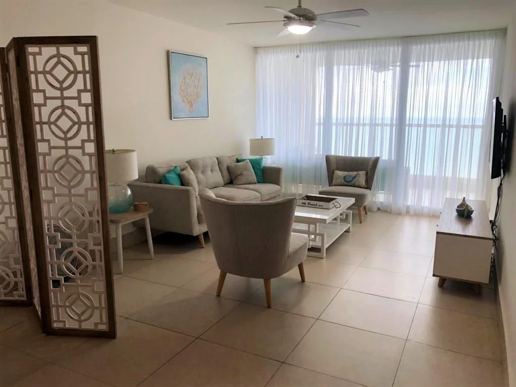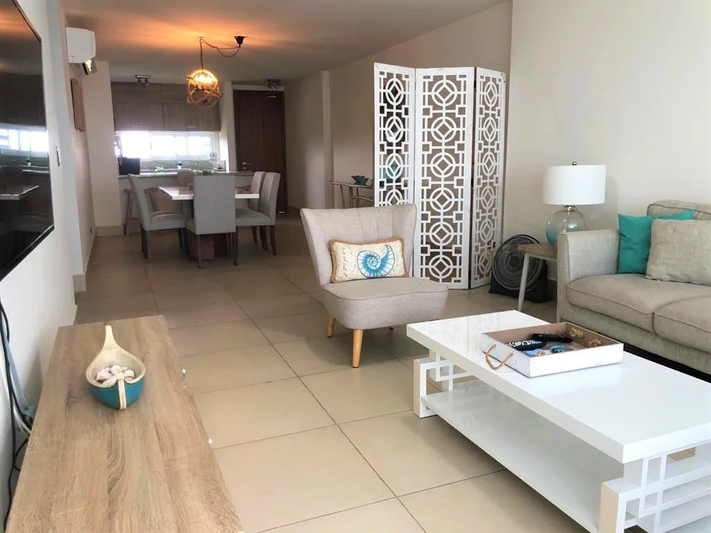 Este hermoso condominio de playa en Panamá en venta está decorado profesionalmente. Además, se encuentra en la popular comunidad de playa Bahia en Nueva Gorgona. Este hermoso apartamento de concepto abierto cuenta con una cama King size en el dormitorio principal, con un amplio vestidor y un baño con doble lavamanos y una ducha de vidrio que ofrece una vista impresionante del Océano Pacífico. Además, las puertas de vidrio corredizas se abren ampliamente desde el dormitorio principal y la sala de estar hacia el amplio balcón amueblado con vista al océano y a la piscina. La habitación de huéspedes tiene una cama queen size y hay otro baño completo para la comodidad de sus invitados. Muy importante, la cocina tiene vista a la montaña y está equipada con electrodomésticos de acero inoxidable, incluyendo un lavavajillas. También hay una lavadora/secadora ubicada justo al lado de la cocina cerca de la habitación de servicio, que también cuenta con un tercer baño completo más pequeño. Además, todas las habitaciones tienen ventiladores de techo y unidades de aire acondicionado para mantenerte fresco o puedes abrir las puertas y ventanas para disfrutar de una maravillosa brisa cruzada. Otras características del apartamento: • Sobres de granito en la cocina • Estacionamiento cubierto • Agua y gas incluidos en la HOA • Exoneración de impuestos sobre la construcción hasta 2029 • Impuestos bajos sobre la tierra Acerca de Bahia en Gorgona Las áreas sociales en bahía son una de las más completas e ideal para todo tipo de entretenimiento, esta incluye un gimnasio bien equipado, SPA, jacuzzis, piscina para niños y para adultos incluyendo una justo frente al mar, cancha de tenis, cancha de voleibol de playa, sala de juegos para niños, restaurante y el único bar frente al mar en el área. Bahía está a menos de 15 minutos de Coronado en donde encontrará supermercados 24 horas, una gran variedad de restaurants, bancos, ferreterías además de una clínica hospital privada entre otras amenidades. En Gorgona encontrará varios supermercados y restaurantes. Acerca de Playa Gorgona Playa Gorgona está a sólo 76 kilómetros (47 millas) al noroeste de la ciudad de Panamá. Hay varias abarroterias, restaurantes y un mercado de mariscos. Además, hay una zona para surfear cerca. Playa Gorgona está cerca de Playa Coronado (el centro de la costa del Pacífico). En Coronado hay supermercados, restaurantes, bancos, ferreterías, clínicas y cafeterías abiertos las 24 horas. Además, golf, veteri