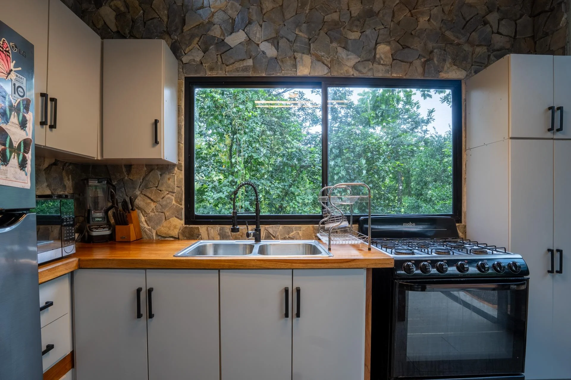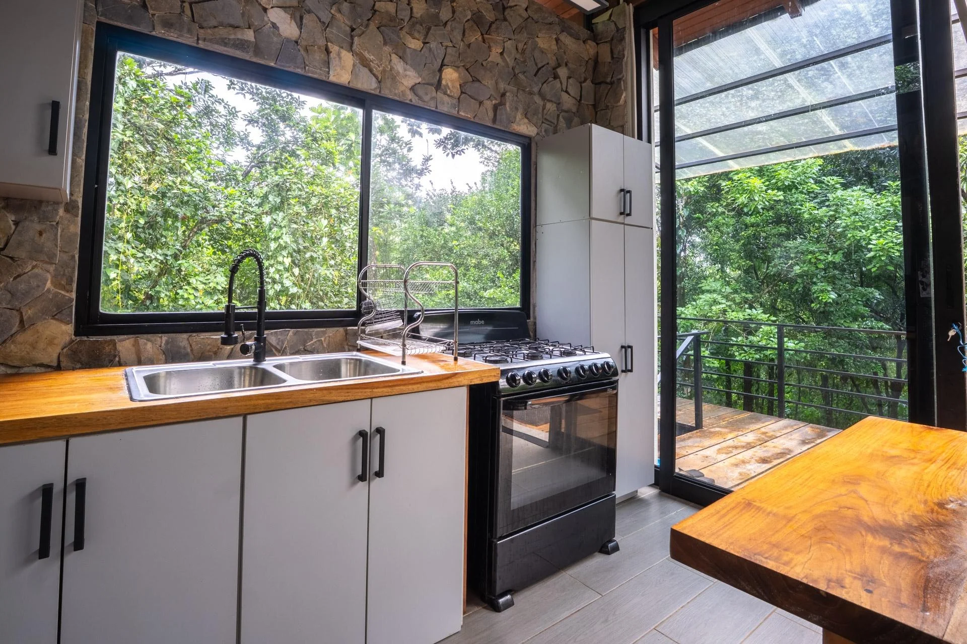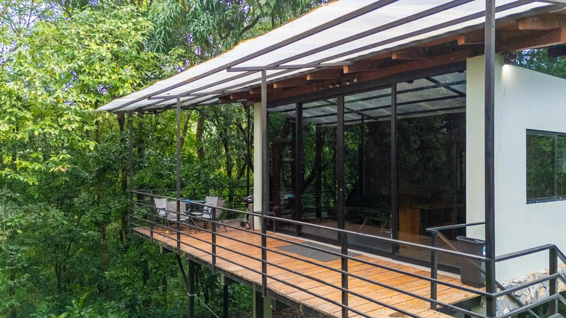 Esta casa única se encuentra en un entorno rodeado de naturaleza, donde se siente como si estuviera suspendido entre los árboles. Rodeada de vegetación tropical madura y colindando con una quebrada natural, la propiedad ofrece una conexión inmersiva con la naturaleza, manteniendo las comodidades modernas. La casa está cuidadosamente diseñada con líneas limpias, detalles en piedra y amplias aberturas de vidrio que invitan a la luz natural y a disfrutar de las vistas verdes desde cada rincón. Su posición elevada permite que la brisa fluya a través de los espacios de estar, creando un ambiente fresco y refrescante durante todo el año. En el interior, la cocina es elegante y práctica, con detalles en piedra en las paredes, grandes ventanales y una isla de madera natural que sirve como punto de encuentro central. Los dos dormitorios están diseñados para la comodidad, cada uno enmarcado por grandes ventanales que lo sitúan en pleno corazón del bosque circundante. Los baños evocan la naturaleza con acabados en piedra y una distribución moderna. La vida al aire libre es fundamental en esta casa, con terrazas y balcones que se extienden hasta las copas de los árboles. Un rincón de hamacas es el lugar perfecto para relajarse, mientras que la terraza envolvente lo acerca al canto de los pájaros y el susurro de las hojas. En la planta baja, la casa incluye un amplio garaje que también funciona como espacio flexible. Podría convertirse fácilmente en un estudio con dormitorio adicional, una unidad de alquiler o dejarse abierto como gimnasio, taller o trastero. La posibilidad de adaptar este espacio hace que la propiedad sea versátil para diversos estilos de vida. La propiedad, de más de 4300 m², cuenta con todos los servicios, como pozo privado, internet de fibra óptica y electricidad.