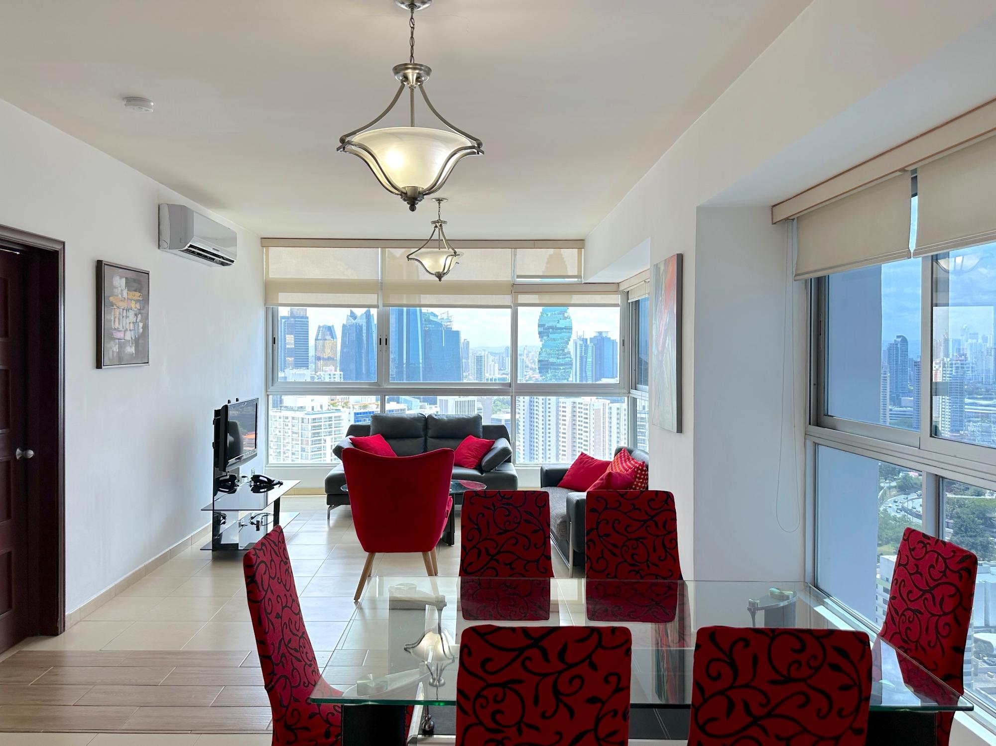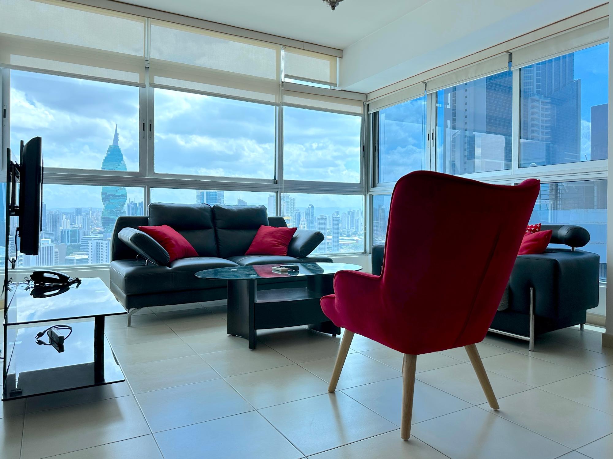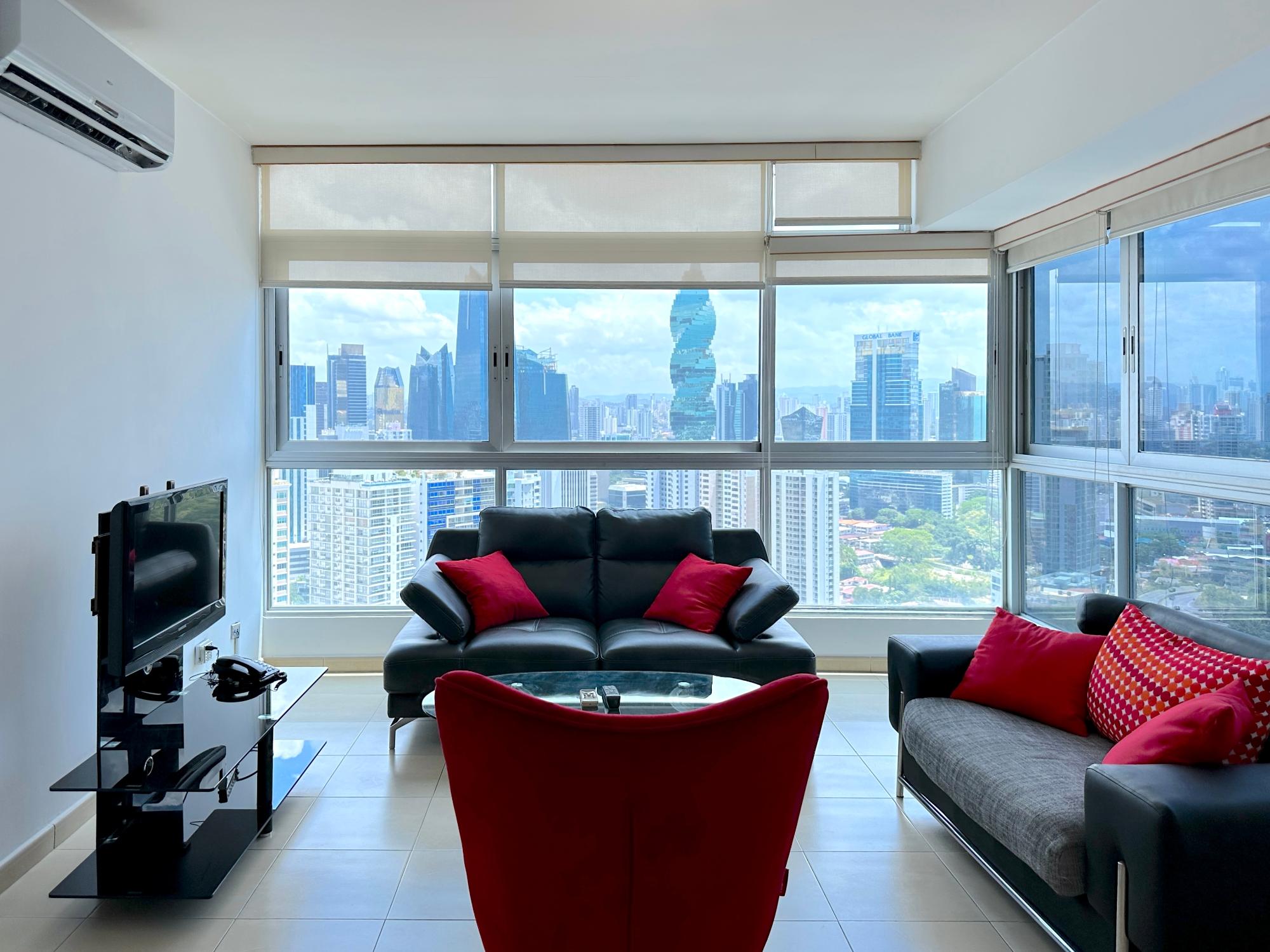 Panama Home Realty ofrece a nuestros distinguidos clientes un maravilloso apartamento situado en la Avenida Balboa con una vista excepcional de la ciudad de Panamá y de la bahia, desde el edificio en sí se puede ir andando al centro comercial Multicentro en menos de 5 minutos. El edificio de apartamentos tiene una excelente seguridad, con un portero que verifica la entrada de todos los visitantes. El apartamento es de 96 metros cuadrados con dos dormitorios y dos baños, un amplio salón con una hermosa vista al mar y vista a la hermosa ciudad de Panamá. El Tower goza de hermosas vistas del mar y la ciudad. Los centros comerciales más cercanos están a solo 5 minutos a pie del establecimiento donde encontrarán los restaurantes,bares y lugares para salir por la noche más cercanos en la calle Uruguay,a solo 10 minutos a pie. Queda a 15 minutos a pie del centro turístico del casco antiguo,a 15 minutos en auto de Panamá la Vieja y a 20 minutos en coche del centro comercial Albrook y muchas otras tiendas. El Canal de Panamá está a media hora en auto. Este edificio de lujo ofrece instalaciones climatizadas que incluyen un vestíbulo con recepción 24 horas,caja fuerte,guardarropa y ascensor. Cuenta con apartamentos completamente amueblados con altos niveles de calidad y arquitectura a la última. Los aficionados al deporte tienen el gimnasio a su disposición para hacer ejercicio,o bien pueden relajarse en la sauna.
