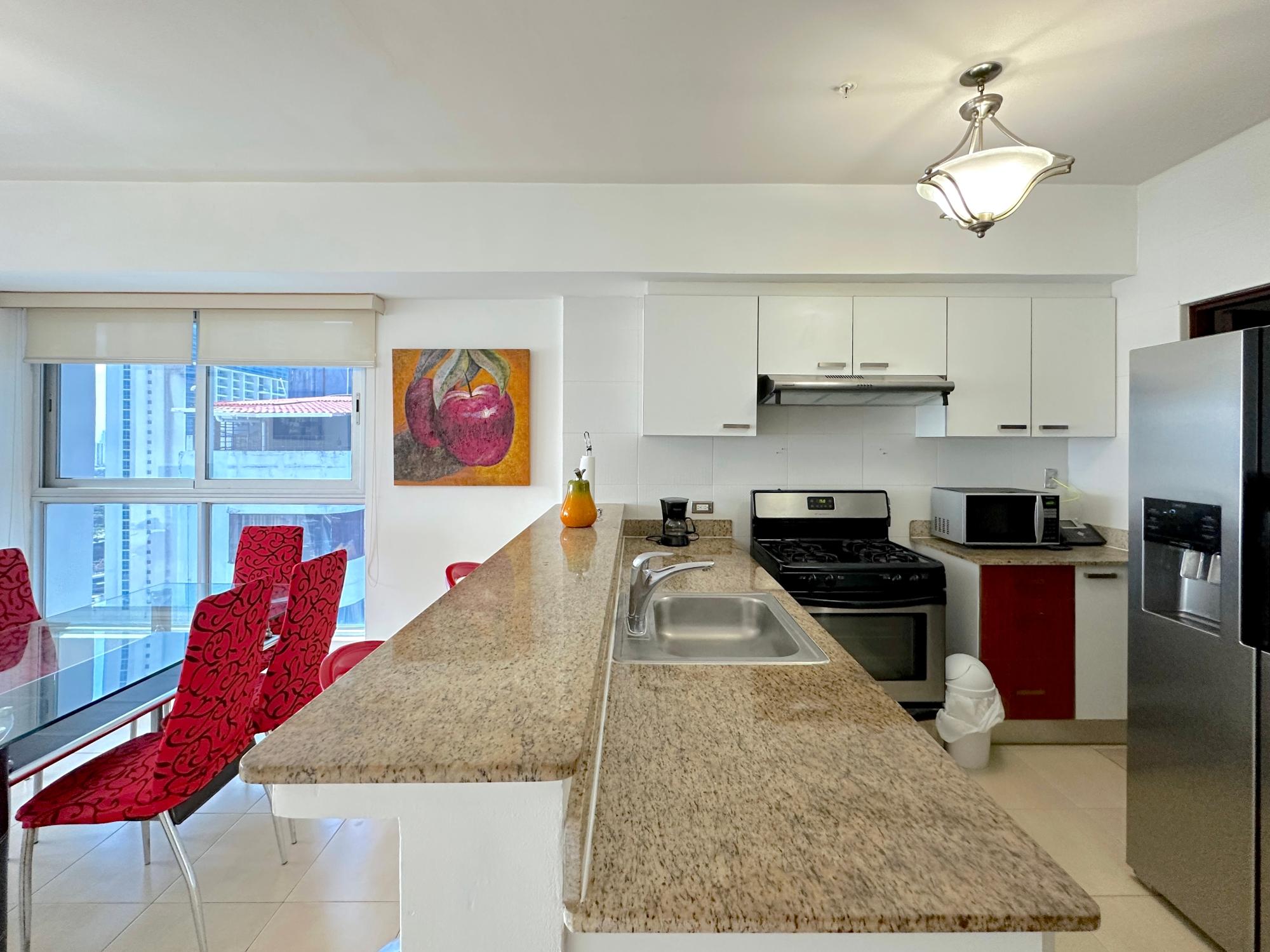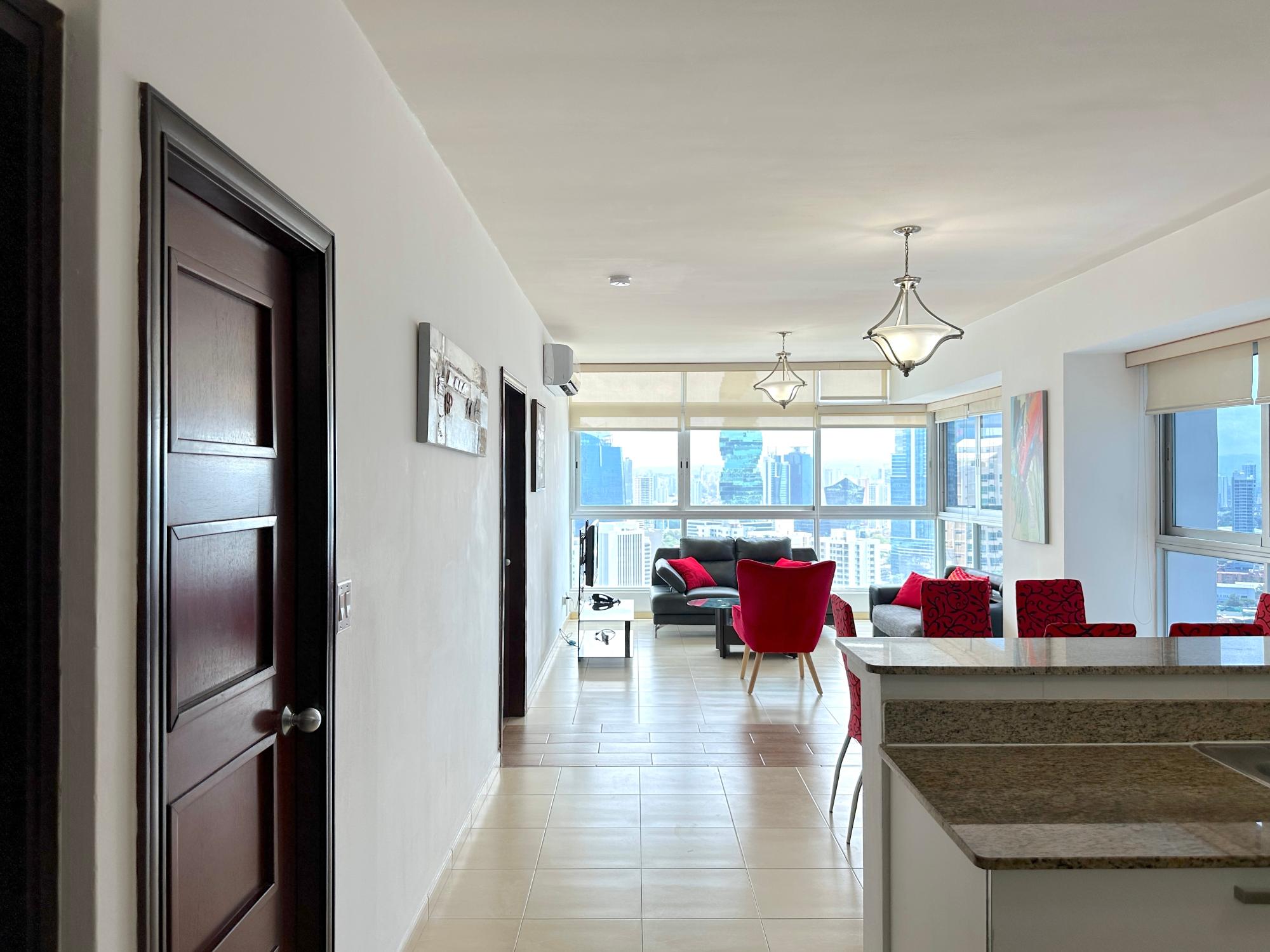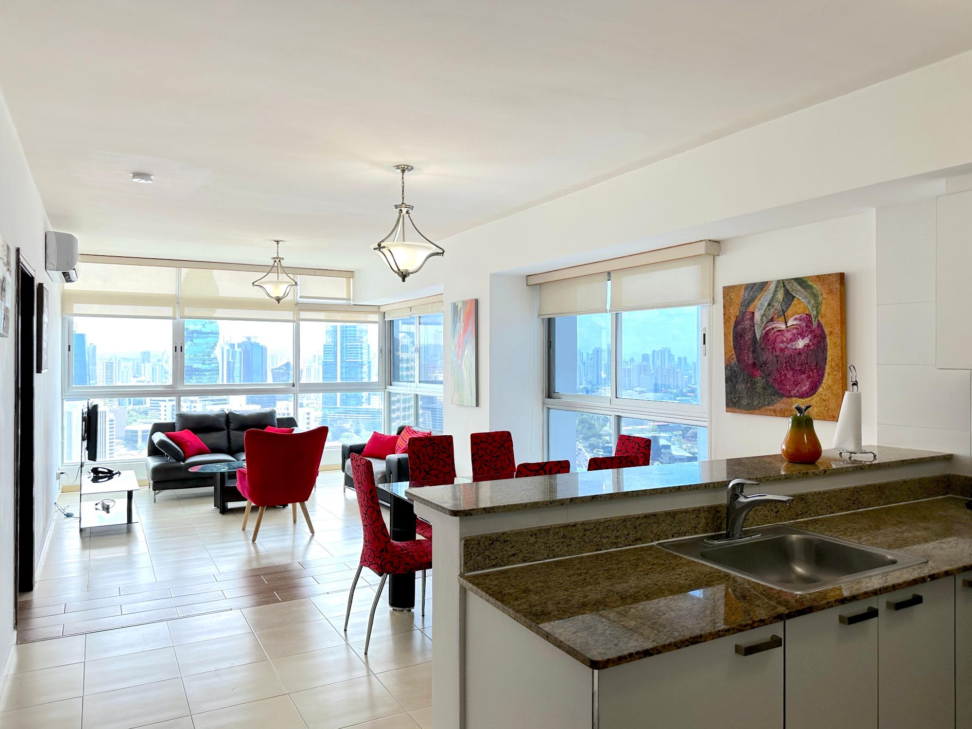 Panama Home Realty ofrece a nuestros distinguidos clientes un maravilloso apartamento situado en la Avenida Balboa con una vista excepcional de la ciudad de Panamá y de la bahia, desde el edificio en sí se puede ir andando al centro comercial Multicentro en menos de 5 minutos. El edificio de apartamentos tiene una excelente seguridad, con un portero que verifica la entrada de todos los visitantes. El apartamento es de 96 metros cuadrados con dos dormitorios y dos baños, un amplio salón con una hermosa vista al mar y vista a la hermosa ciudad de Panamá. El Tower goza de hermosas vistas del mar y la ciudad. Los centros comerciales más cercanos están a solo 5 minutos a pie del establecimiento donde encontrarán los restaurantes,bares y lugares para salir por la noche más cercanos en la calle Uruguay,a solo 10 minutos a pie. Queda a 15 minutos a pie del centro turístico del casco antiguo,a 15 minutos en auto de Panamá la Vieja y a 20 minutos en coche del centro comercial Albrook y muchas otras tiendas. El Canal de Panamá está a media hora en auto. Este edificio de lujo ofrece instalaciones climatizadas que incluyen un vestíbulo con recepción 24 horas,caja fuerte,guardarropa y ascensor. Cuenta con apartamentos completamente amueblados con altos niveles de calidad y arquitectura a la última. Los aficionados al deporte tienen el gimnasio a su disposición para hacer ejercicio,o bien pueden relajarse en la sauna.