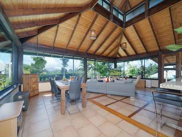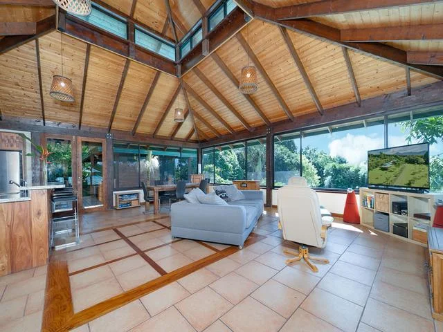 Esta casa inspirada en Bali le da la bienvenida con sus tremendas vistas panorámicas hasta donde alcanza la vista. Una casa familiar moderna, situada en una ubicación muy tranquila, está bien presentada y complementada por el espacioso diseño de planta abierta con características que impresionarán. Ingrese a la cabaña luminosa, bien presentada y aireada, con techos altos y pisos de madera. El diseño generoso y el espacio habitable que fluye libremente complementan la terraza para entretenimiento al aire libre y los jardines paisajísticos. Esta propiedad consta de cuatro módulos, y el módulo n. ° 1 ofrece un plano de planta fantástico con sala de estar, comedor, cocina y tocador. El módulo n. ° 2 es el dormitorio principal con baño en suite y vestidor. El módulo n. ° 3 es un segundo dormitorio que actualmente se usa como oficina. Viene con baño en suite y vestidor. El módulo n. ° 4 es una cabaña independiente, con sala de estar, dormitorio con baño en suite, una hermosa cocina y pisos de madera autóctonos. OPORTUNIDADES DE INVERSIÓN Esta propiedad fue diseñada para albergar cápsulas adicionales no solo para familias más numerosas, sino también para alquileres a corto y largo plazo, lo que crea una fuente de ingresos. Además, este ambiente de inspiración balinesa sería el refugio corporativo o grupal perfecto que crearía una experiencia positiva y relajada. Los hermosos terrenos tropicales pueden albergar fácilmente actividades deportivas e incluso una cancha de pickle ball o una piscina. ¡No se pierda todo lo que esta increíble propiedad tiene para ofrecer. Programe una visita hoy!