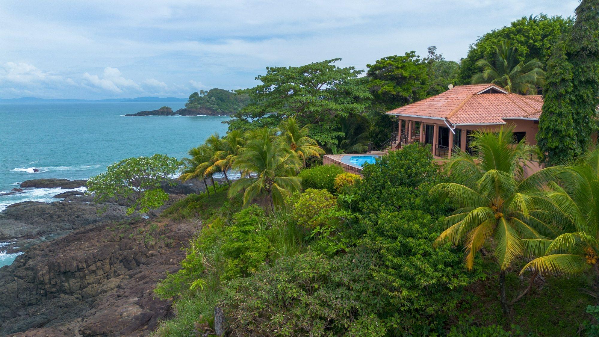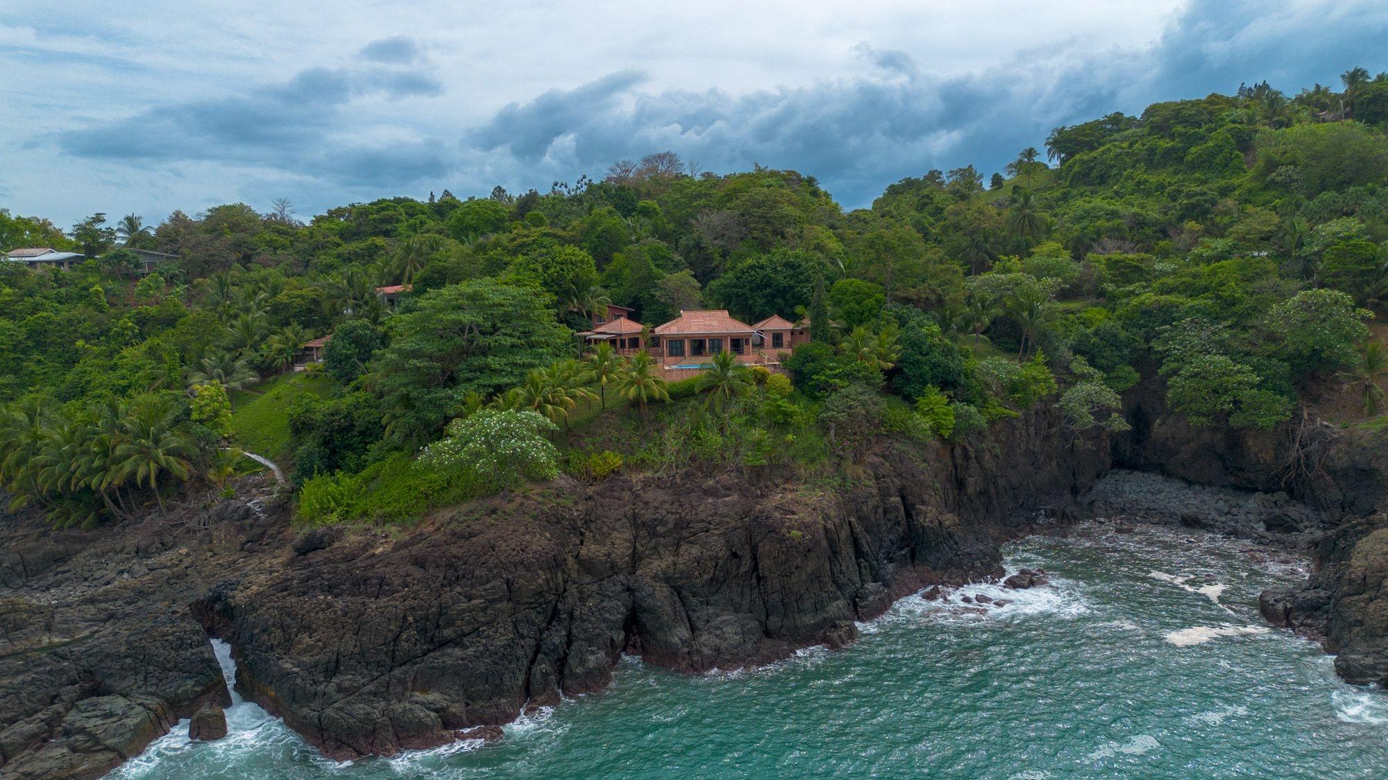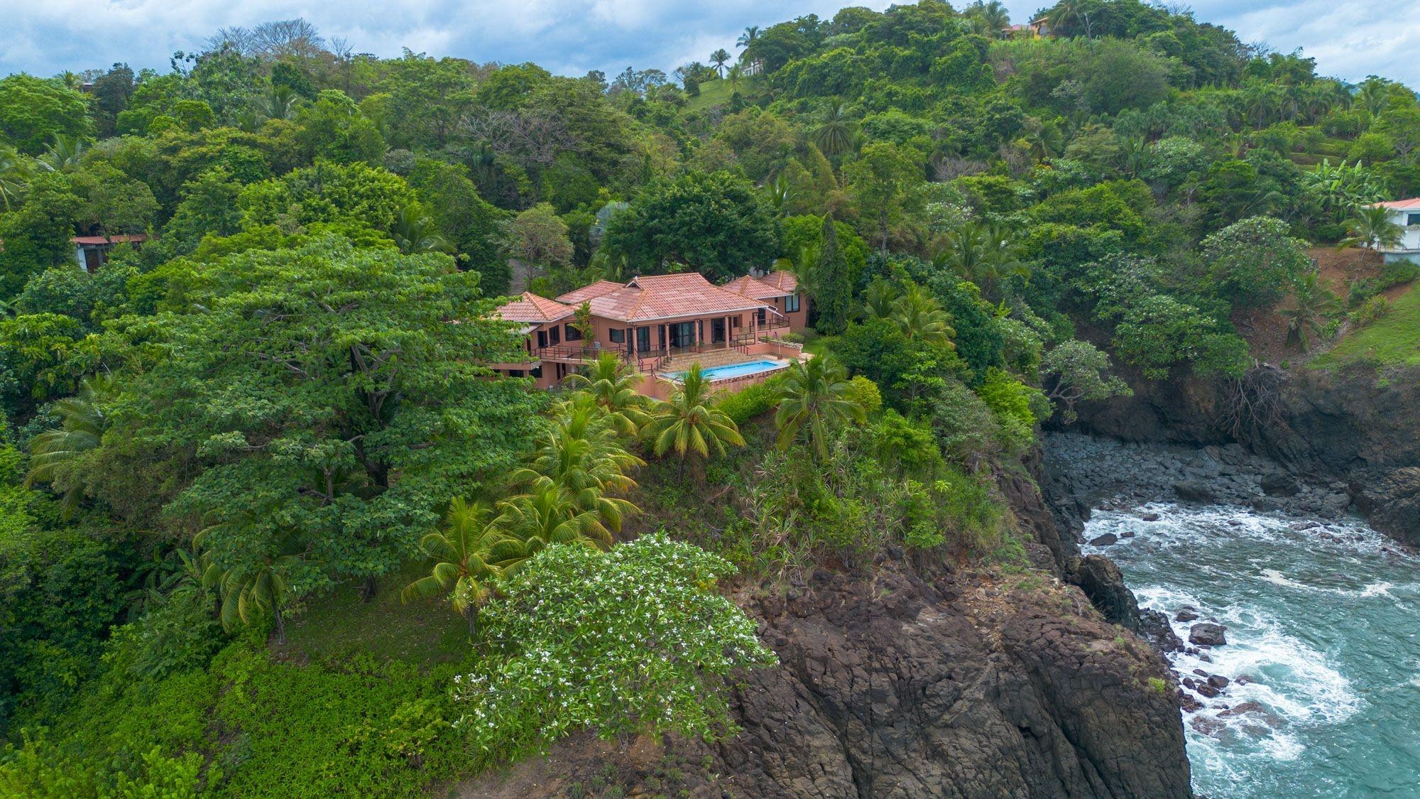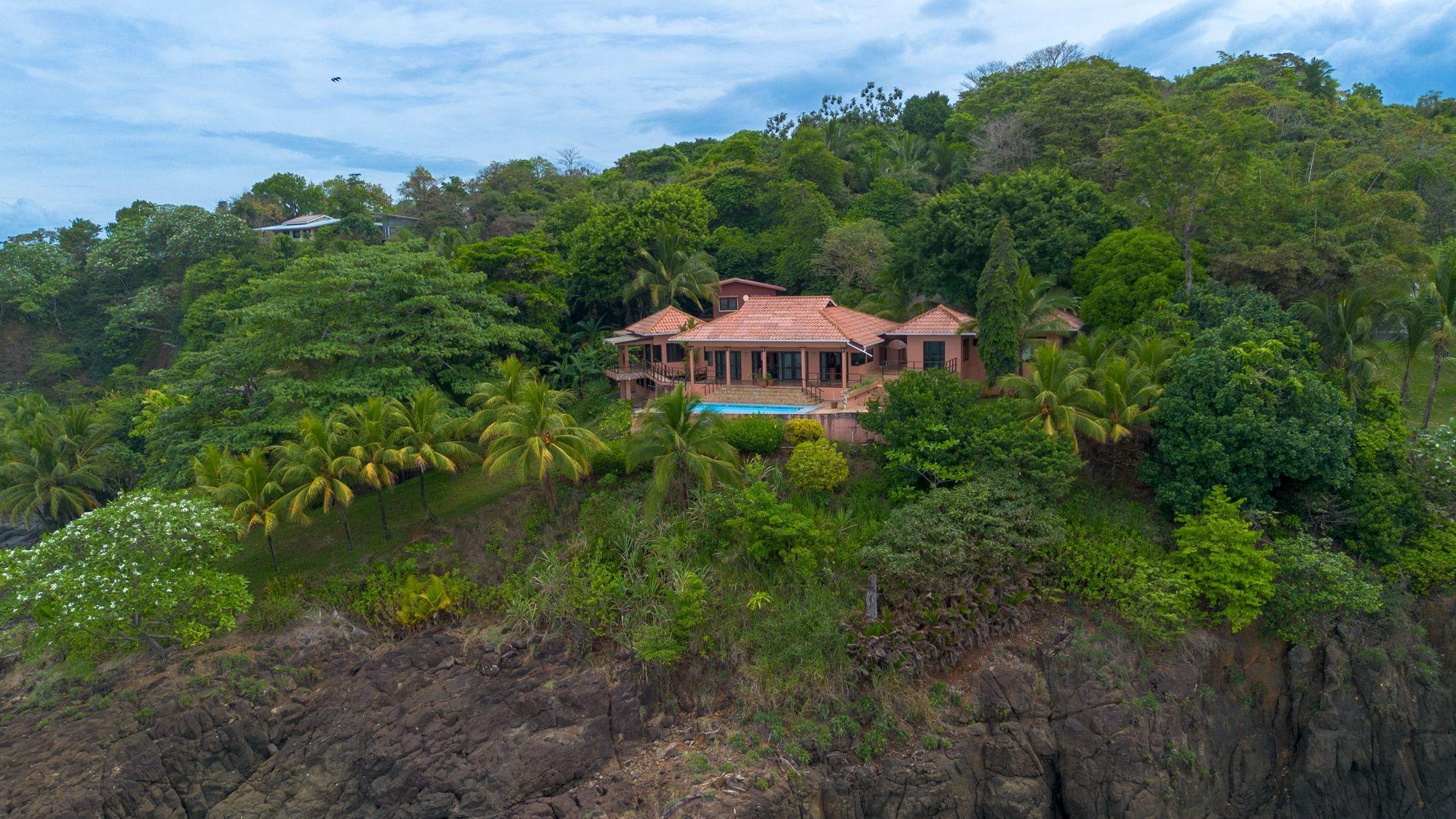 Ubicada en una verde loma frente al Pacífico, esta villa frente al mar en Mata Oscura ofrece una privacidad poco común, paisajes impresionantes e inmersión total en la naturaleza. La casa principal cuenta con 3 recámaras, 4 baños y una amplia sala multiuso con entrada independiente, ideal como suite para visitas o estudio. Una casita independiente de 2 recámaras se encuentra sobre un garaje para dos autos. El terreno titulado de 3,667 m² ofrece vistas panorámicas al mar desde casi todas las habitaciones y espacios exteriores. La propiedad combina diseño tropical con materiales tradicionales, incluyendo un techo de teja compuesta, techos altos revestidos en madera y terrazas envolventes. En el interior, un diseño de planta abierta conecta la cocina, el comedor y la sala, todos orientados hacia el mar. En el exterior, la piscina y el solárium con vista al océano están rodeados de árboles frutales maduros: banano, mango, papaya, aguacate, caña de azúcar y piña. Es posible pescar con línea o arpón desde la costa rocosa justo abajo. Otras características incluyen almacenamiento de agua de respaldo, cocina a gas y estacionamiento para al menos cinco vehículos. El agua proviene de un pozo comunitario, la electricidad es suministrada por Naturgy y hay acceso a internet. Las tres estructuras están conectadas por senderos ajardinados, ofreciendo flexibilidad para vivir con varias generaciones, generar ingresos por alquiler o trabajar desde casa. La cuota de mantenimiento es de $50 al mes, e incluye caminos, infraestructura y áreas verdes compartidas. La comunidad cerrada cuenta con acceso privado a la cercana Playa Morrillo, conocida por su surf y zonas para nadar, además de un rancho para uso personal o comunitario. El tamaño de la casa es aproximado.