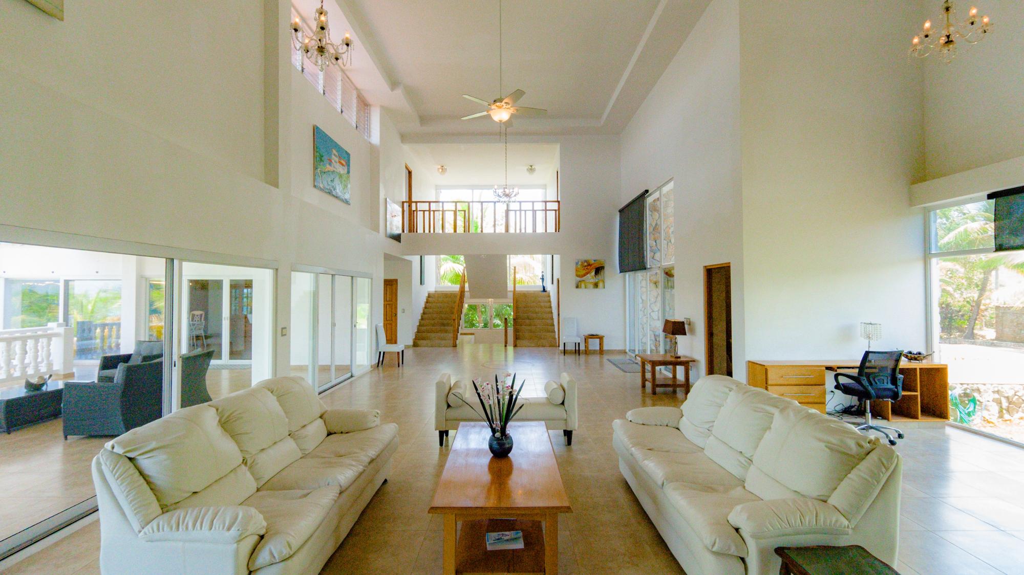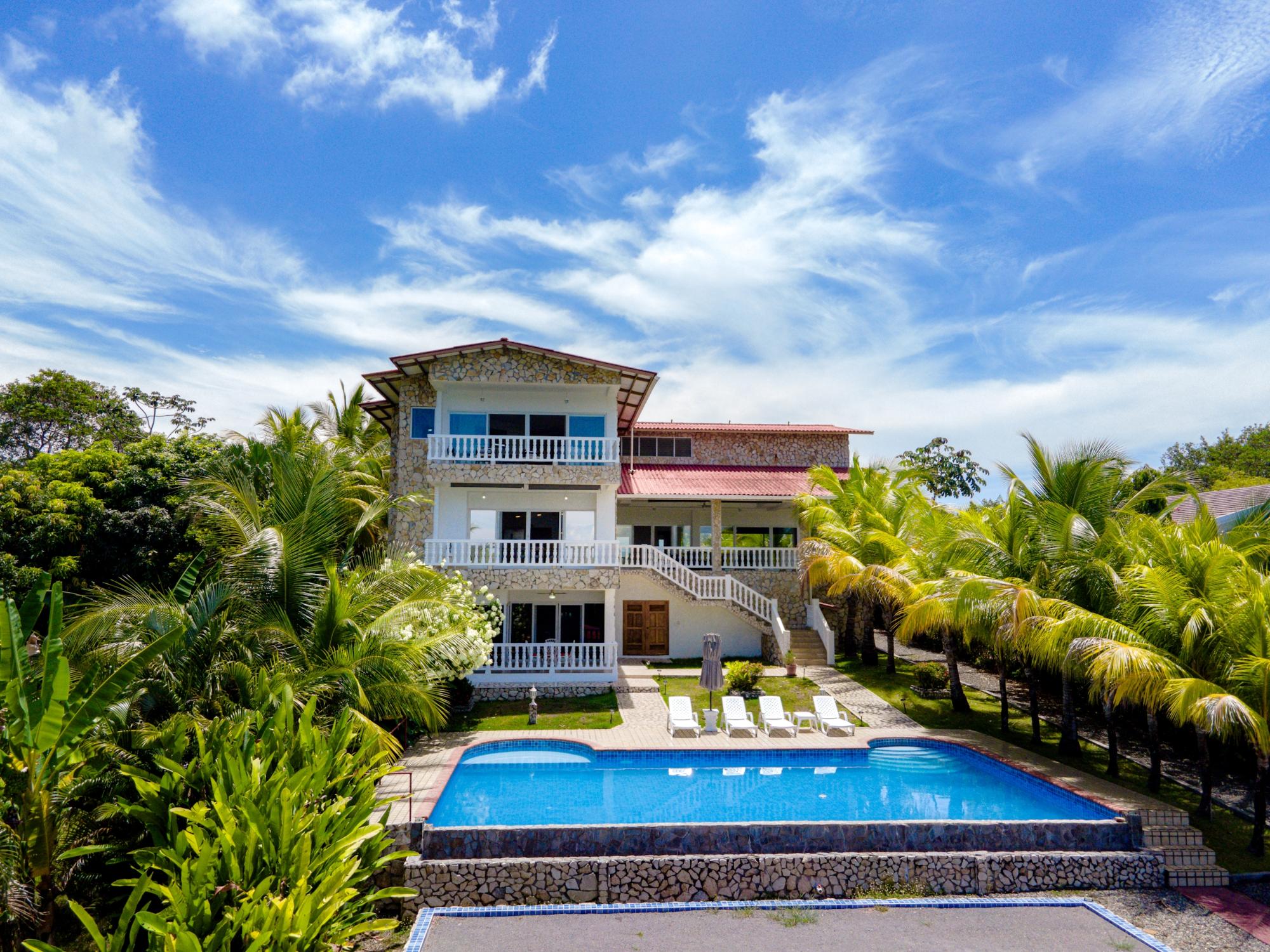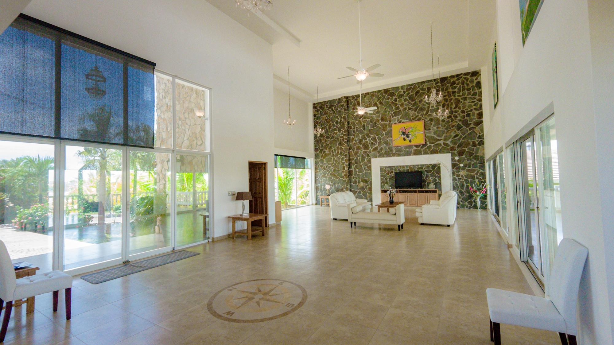 Ubicada en el corazón de la prestigiosa Lobster Cove, esta villa de piedra representa la cumbre de la elegancia costera. Situada en un terreno prístino de media hectárea, la propiedad abarca más de 4140 pies cuadrados de lujoso espacio habitable, diseñado para brindar comodidad y privacidad inigualables; una fusión perfecta de arquitectura moderna con el entorno natural de Hermosa Bay, Boca Chica. Al acercarse a la villa, el encanto de la piedra y la elegancia de su diseño se hacen evidentes de inmediato. El exterior de piedra, meticulosamente elaborado, armoniza con la exuberante vegetación, ofreciendo una sensación de sofisticación y un atractivo atemporal. La comunidad privada garantiza la máxima privacidad, permitiendo a los residentes disfrutar de su santuario natural con tranquilidad. El diseño abierto de la villa cuenta con altos techos que crean una sensación de espacio y grandeza. Cada habitación está bañada de luz natural, con amplias puertas de vidrio que ofrecen impresionantes vistas de la bahía y conducen a múltiples terrazas. Estos espacios al aire libre son perfectos para entretenerse o relajarse, ya sea para un cóctel al atardecer, una cena íntima o simplemente para disfrutar de la tranquilidad de la piscina, la cancha de bochas privada o la idílica zona de bahía/cenador. La planta principal cuenta con una cocina gourmet con dos despensas, perfecta para recibir a familiares y amigos. La cocina se integra a la perfección con el elegante comedor y la espaciosa sala de estar, convirtiéndola en el centro perfecto para el entretenimiento. La piscina infinita parece extenderse hasta el horizonte, ofreciendo vistas panorámicas de la Bahía Hermosa que son realmente fascinantes.