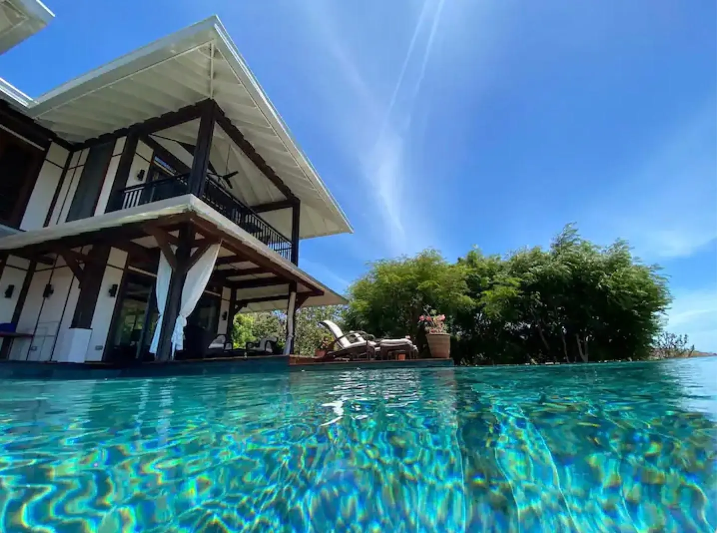 The Residenz Denter Tumas consists of 3 beautiful villas, with a total of 406 m2 and a land area of 1.4 Ha Villa 3 bedrooms, (2 king, 1 twin), 4 bathrooms, fully equipped kitchen, dining room, living room. La Vegna, 2 bedrooms (1 king, 1 twin), 2 bathrooms, fully equipped kitchen, dining-living room. Granny, 3 bedrooms, (2 king, 1 queen), 2 bathrooms, kitchenette Let Residence Denter Tumas sweep you into a relaxed peaceful dream presented within an immaculate and lush landscaped garden, backed by a vast jungle teeming with birds and wildlife. A stay at Denter Tumas reveals an undercurrent of charm and sophistication in every detail. From its spectacular architecture and unprecedented views to its unbeatable location just minutes from Playa Venao, you will love this gem of a home.