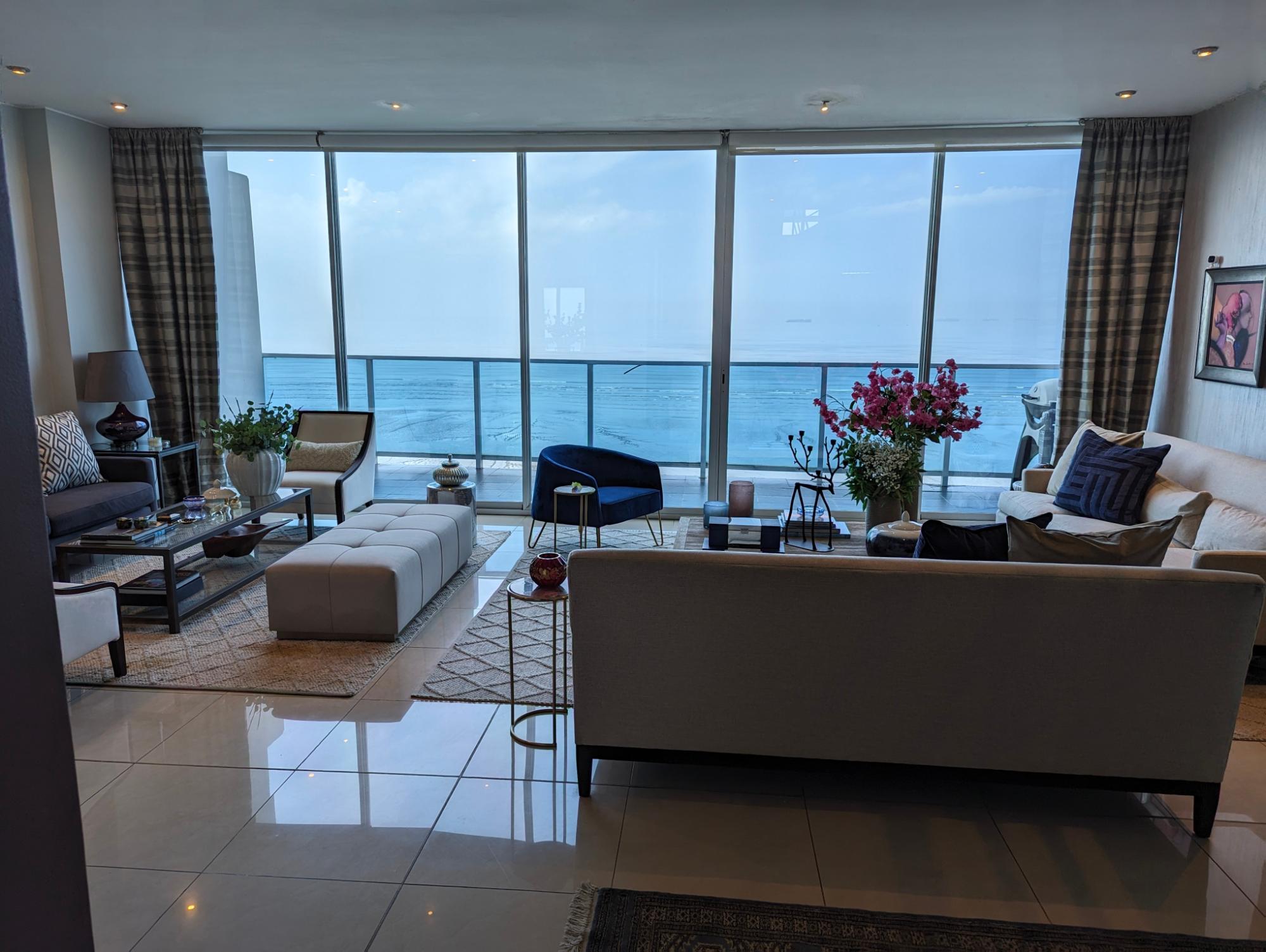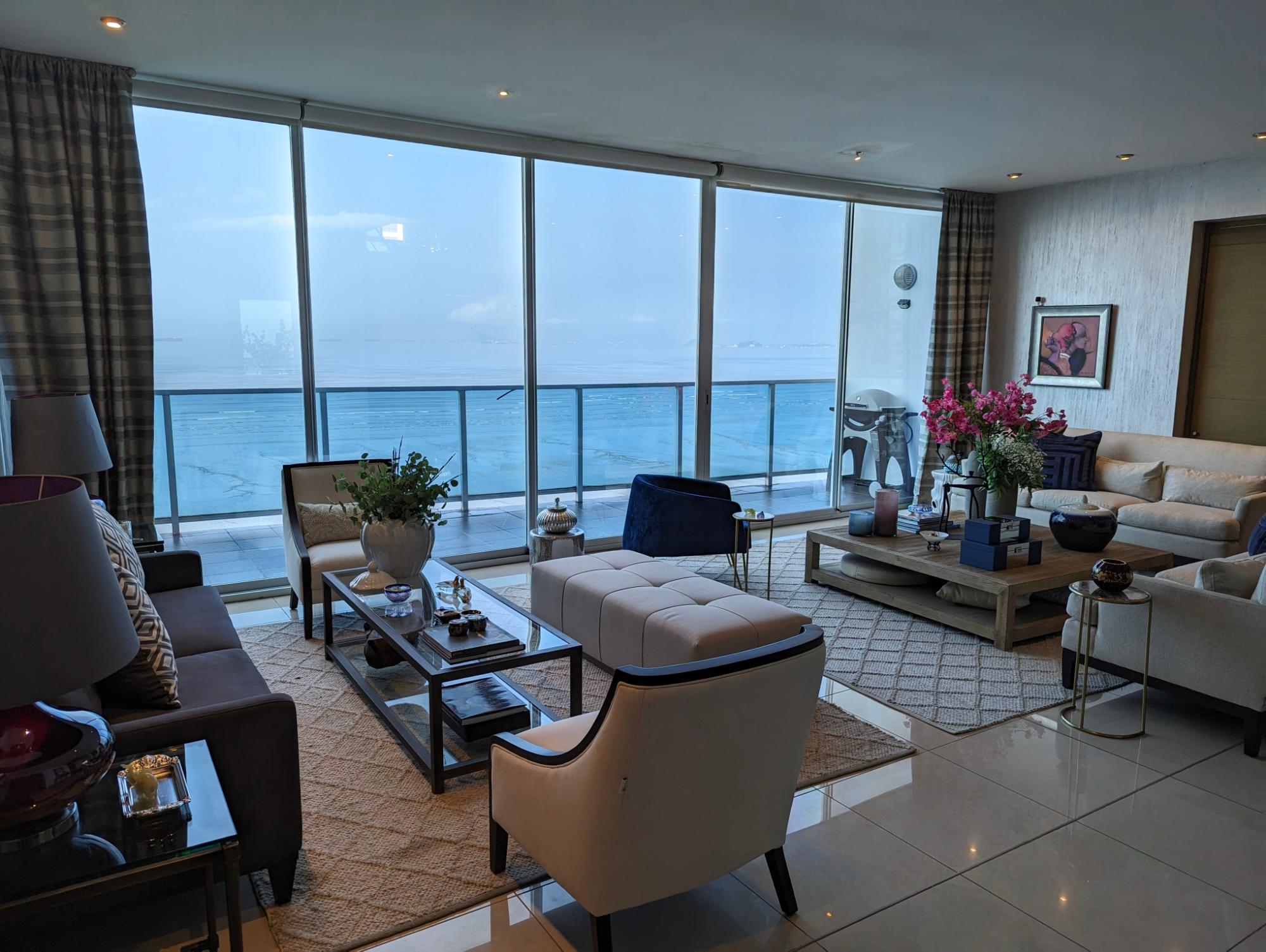 Apartamento Penthouse de dos niveles frente al mar, ubicado en el exclusivo vecindario de Costa del Este con vista panorámica ininterrumpida de la Bahía de Panamá.