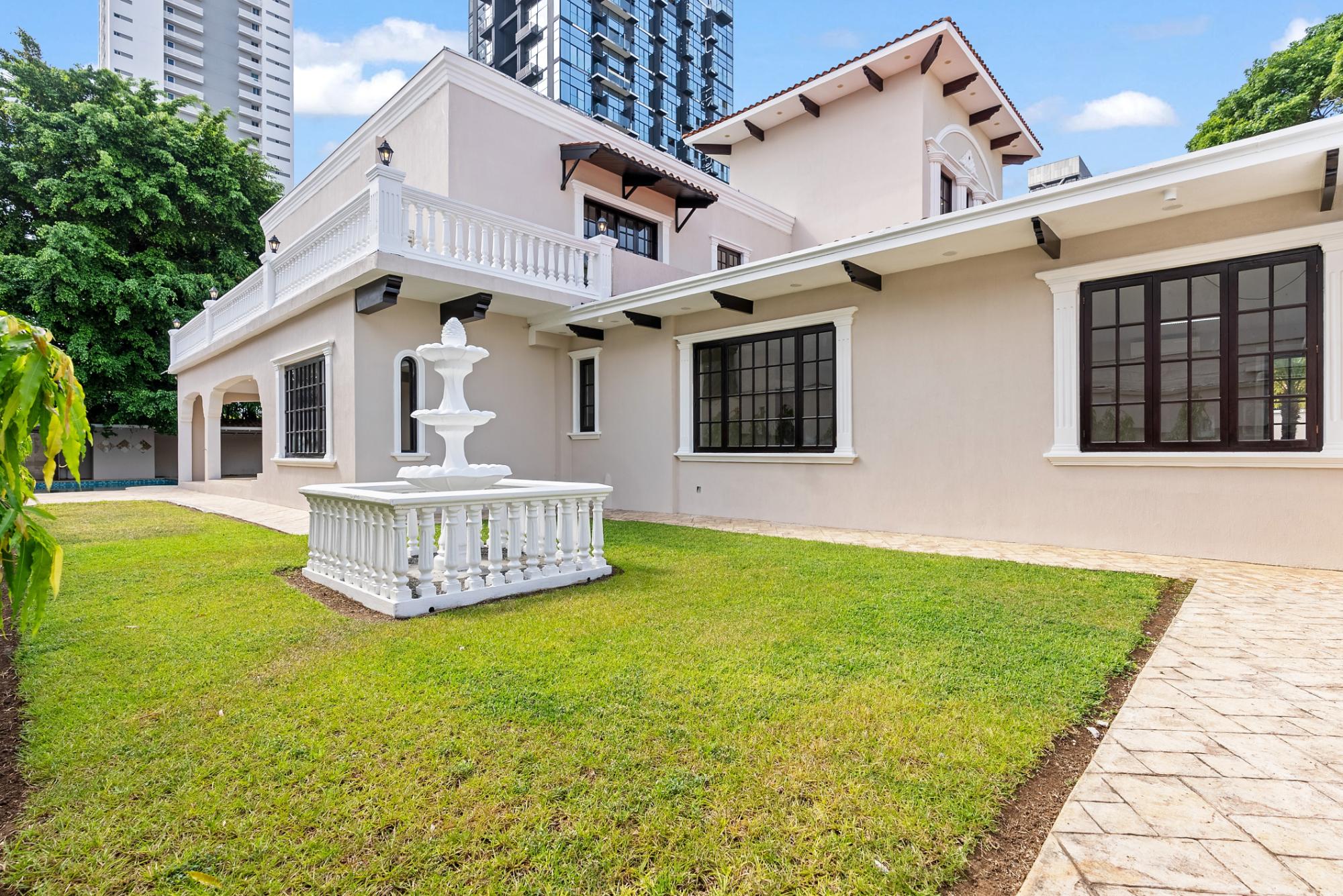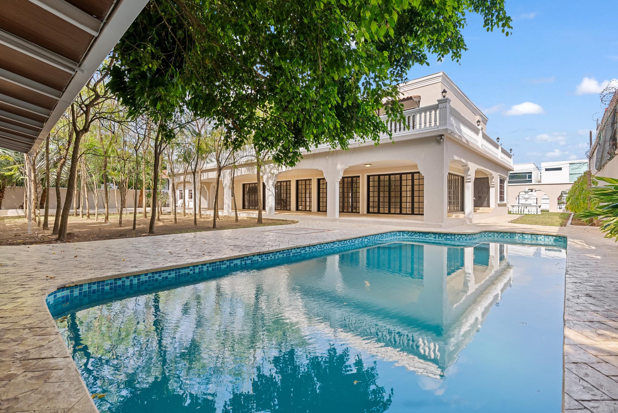 Sobre un terreno de 2,022 m² y una construcción de 936 m², la propiedad ofrece un diseño funcional y elegante: 4 recámaras, cada una con su baño privado y acceso directo a terraza. Gran sala, comedor formal, cocina abierta de estilo moderno, oficina privada, den familiar y cava. 2 baños de visita. Terraza techada, ideal para recepciones o eventos diplomáticos. Gran patio ajardinado con espacio para eventos sociales y piscina privada para el disfrute o entretenimiento de invitados. 5 estacionamientos internos. 2 casas de cuidadores, completamente independientes, con cocineta y baño privado. Lavandería y sistema de aires acondicionados tipo split.
